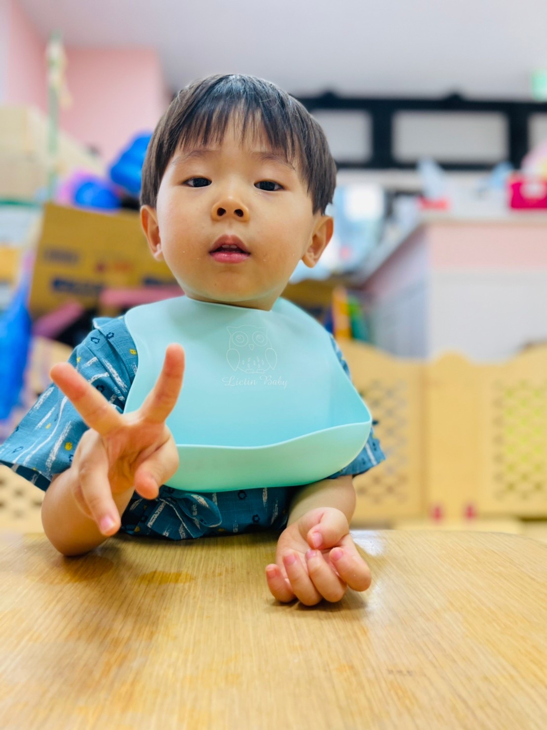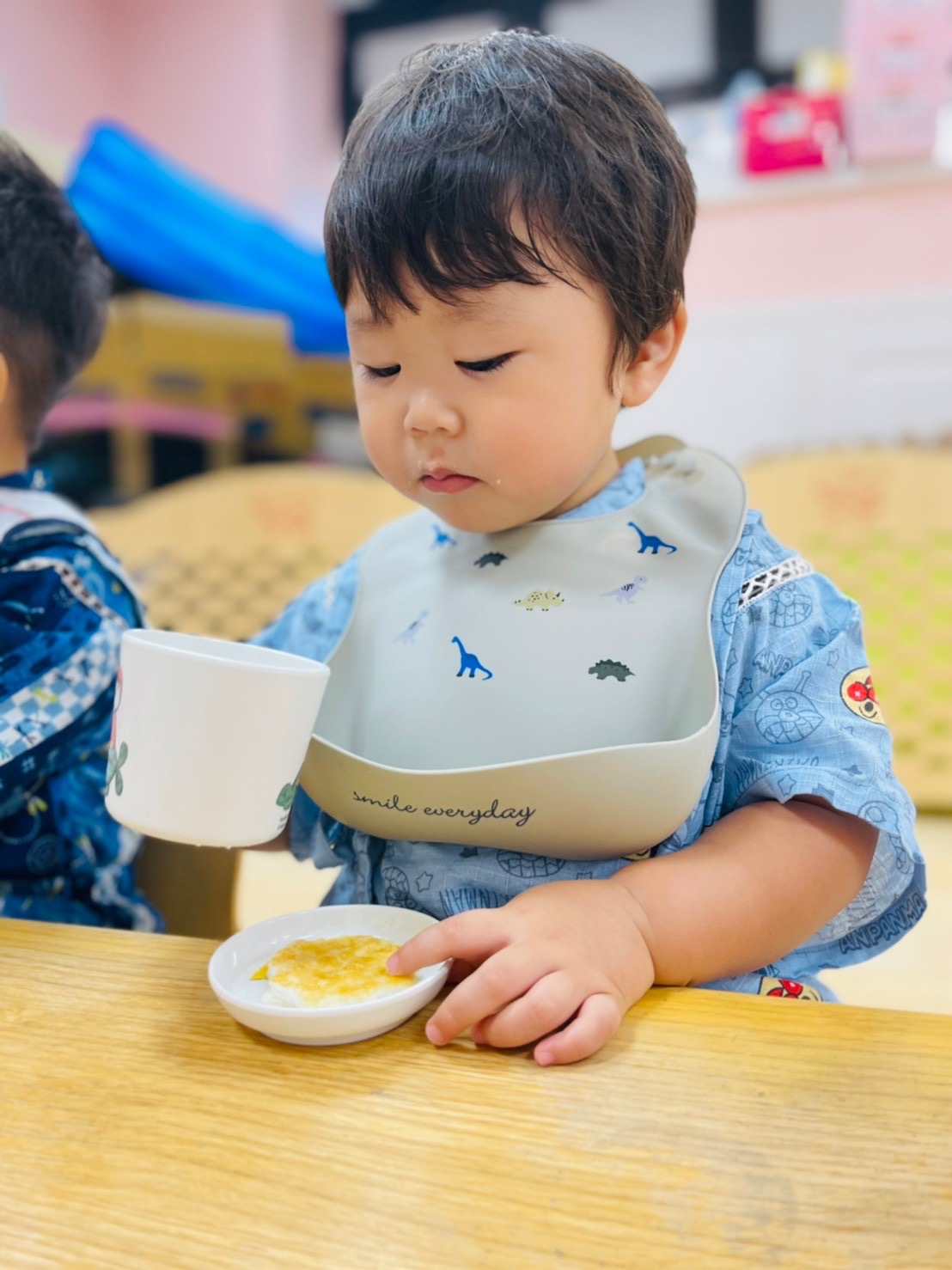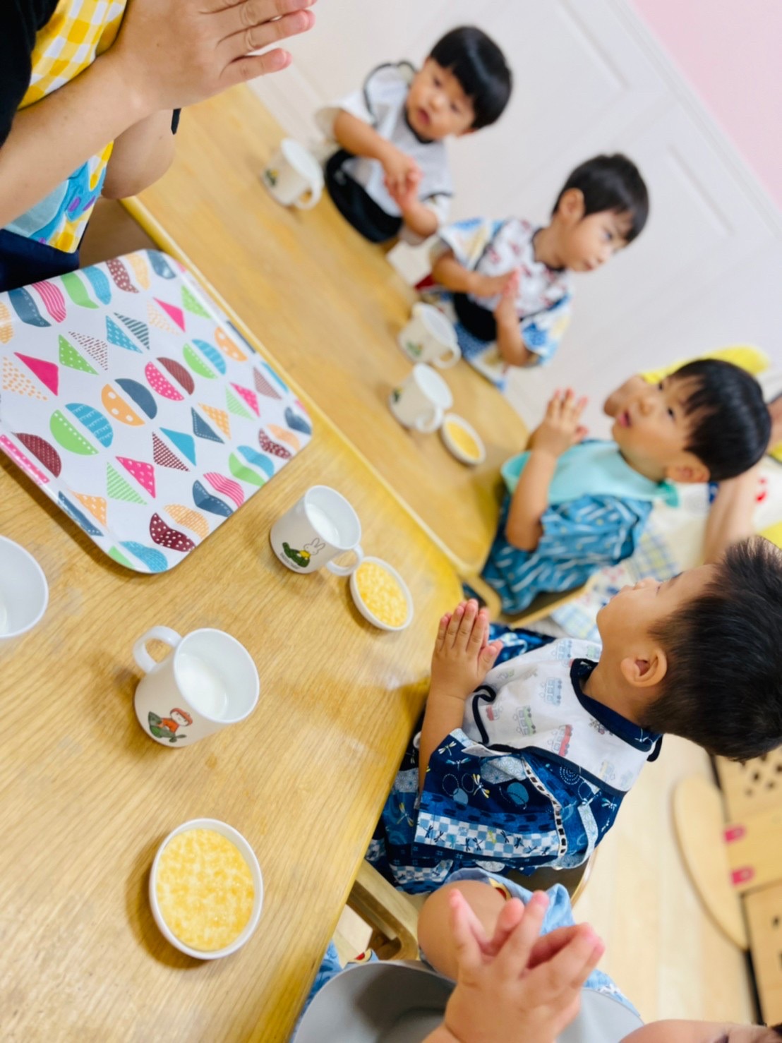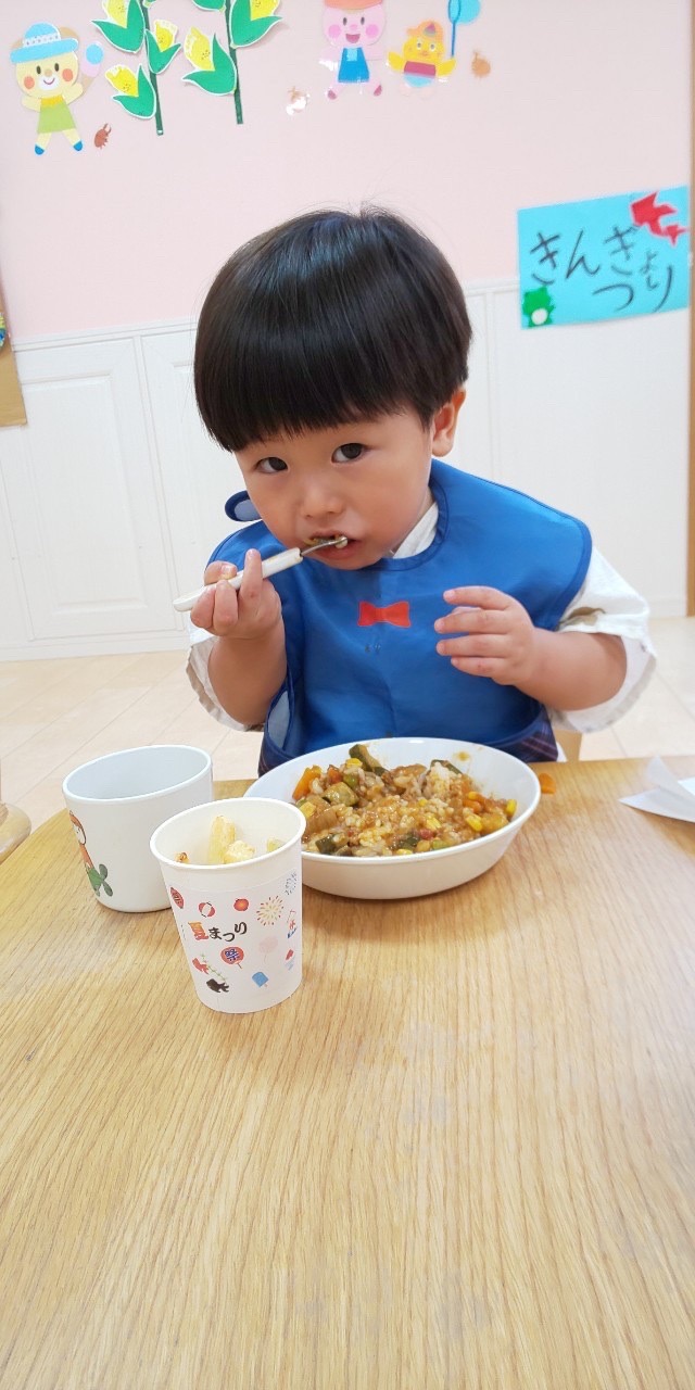 食べ終わったお友達は終わったよーとピースサイン✌️