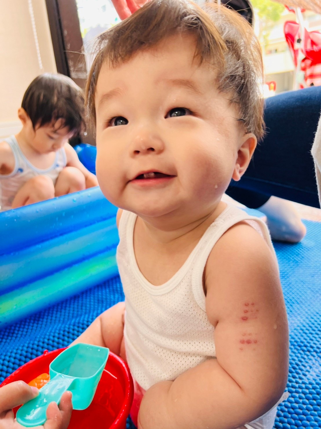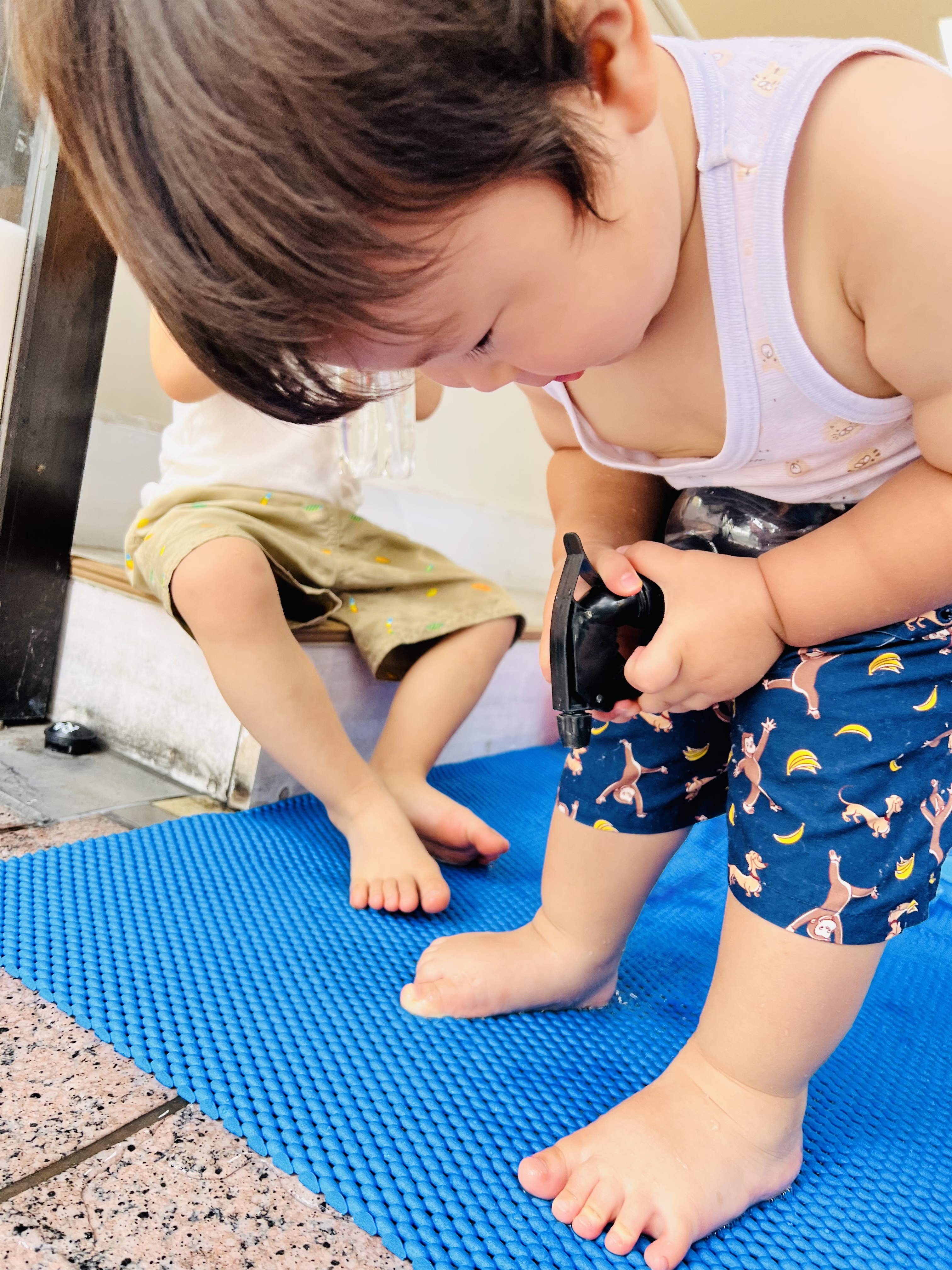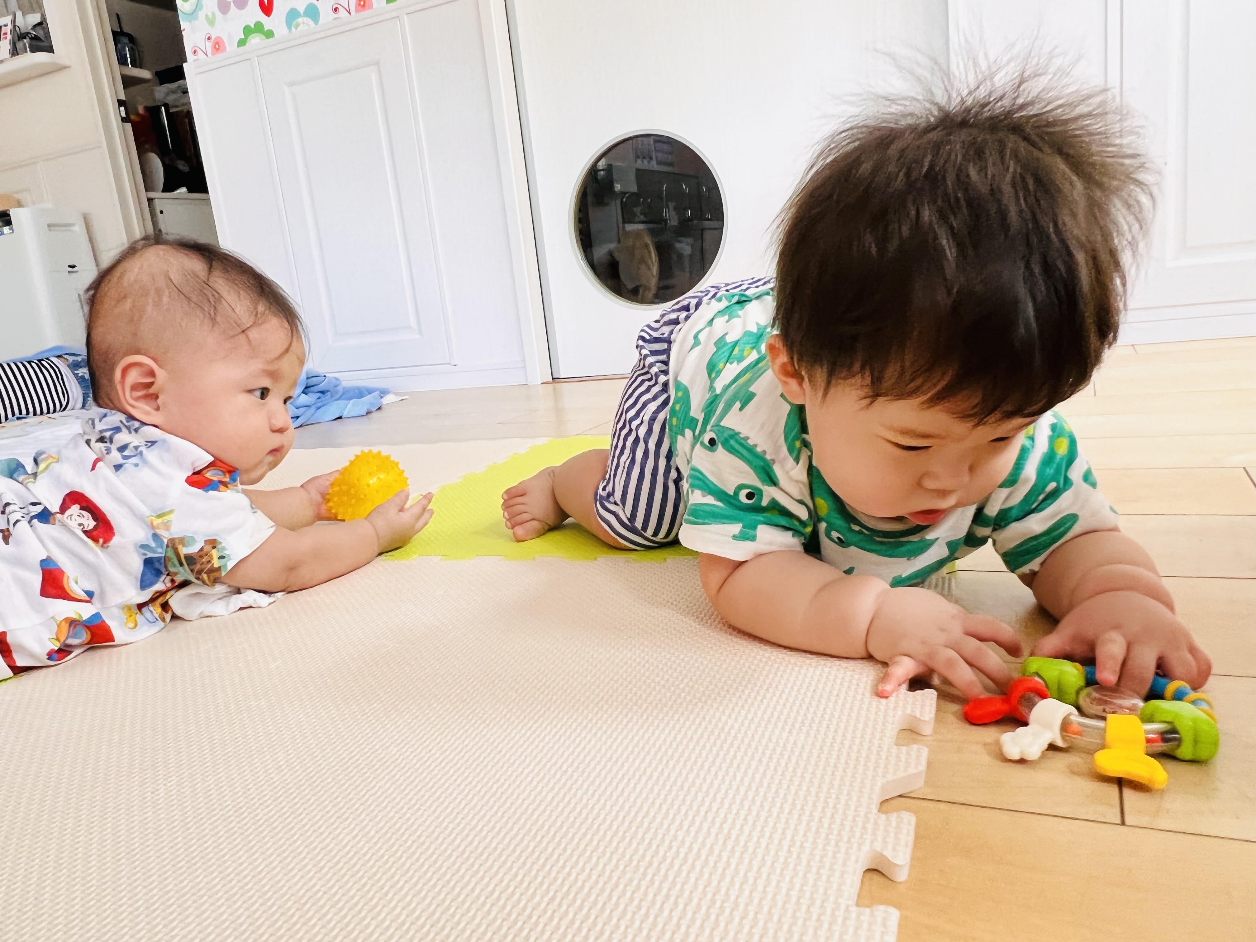 お兄ちゃんお姉ちゃんがお昼寝してる中、0歳児さんは元気に活動中😁
