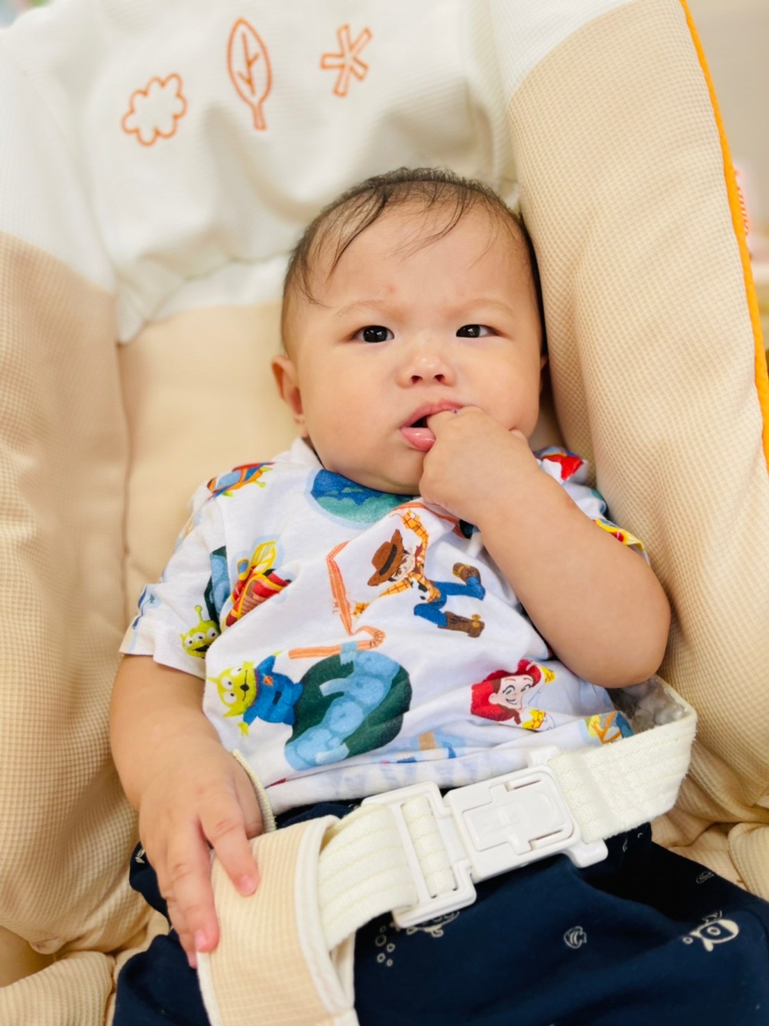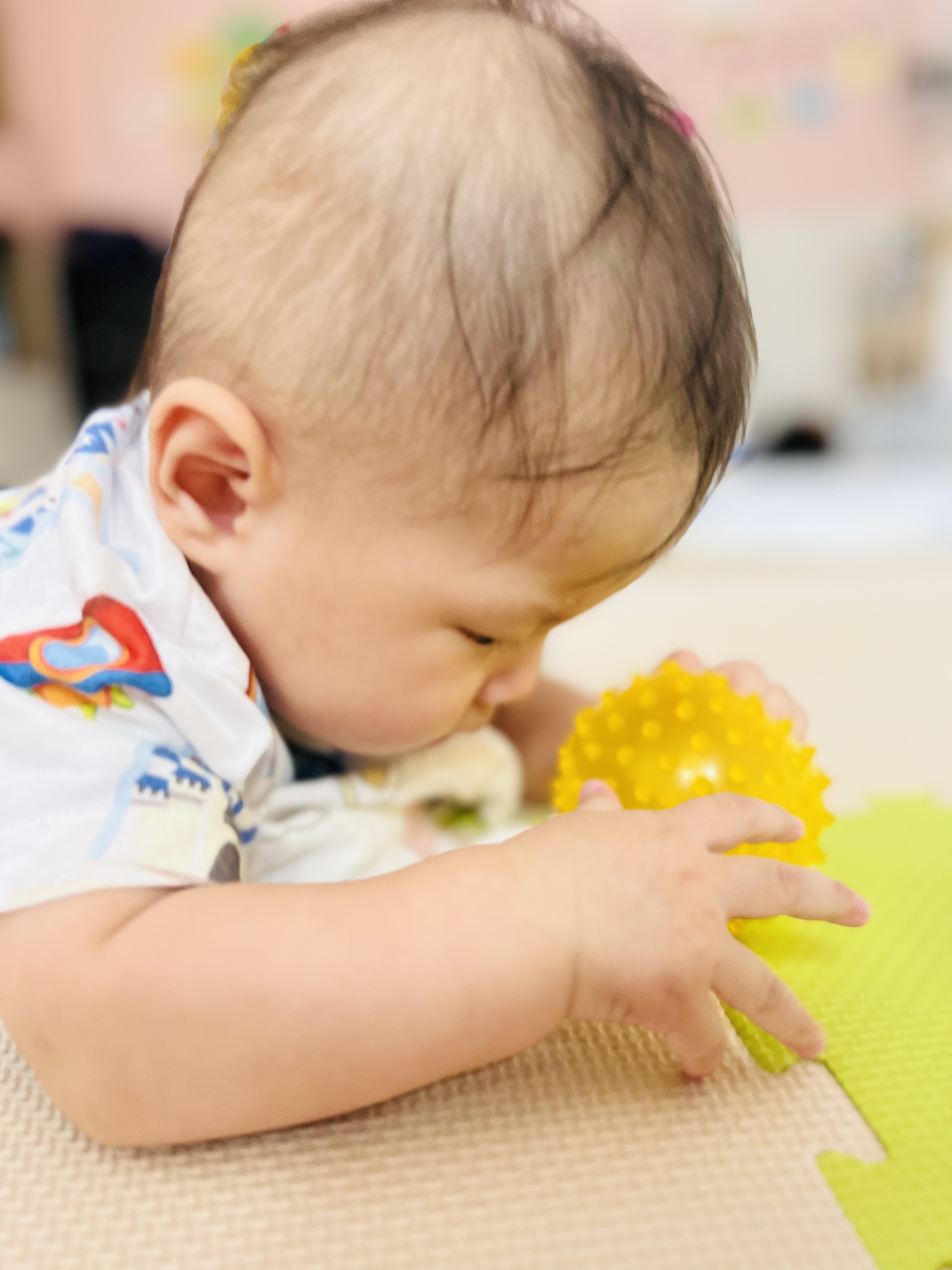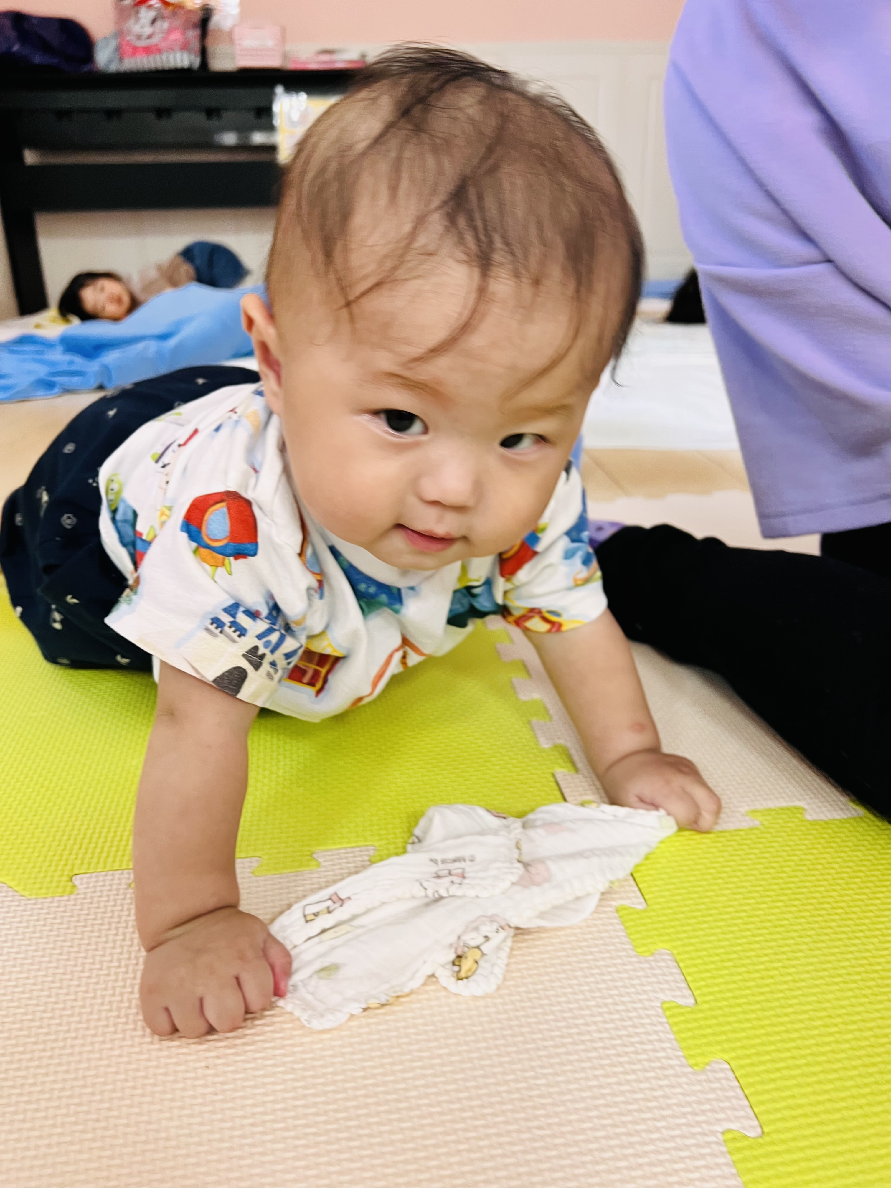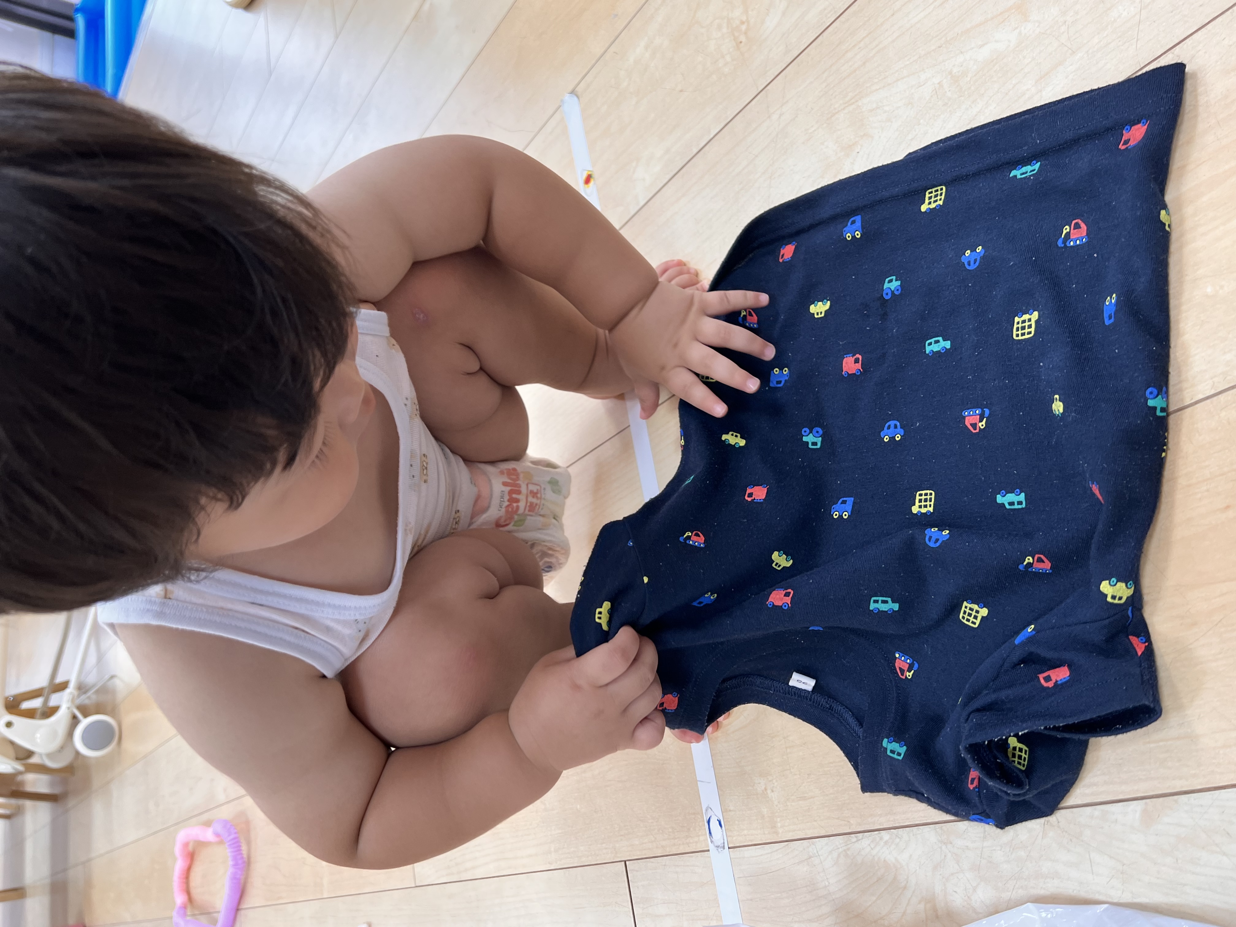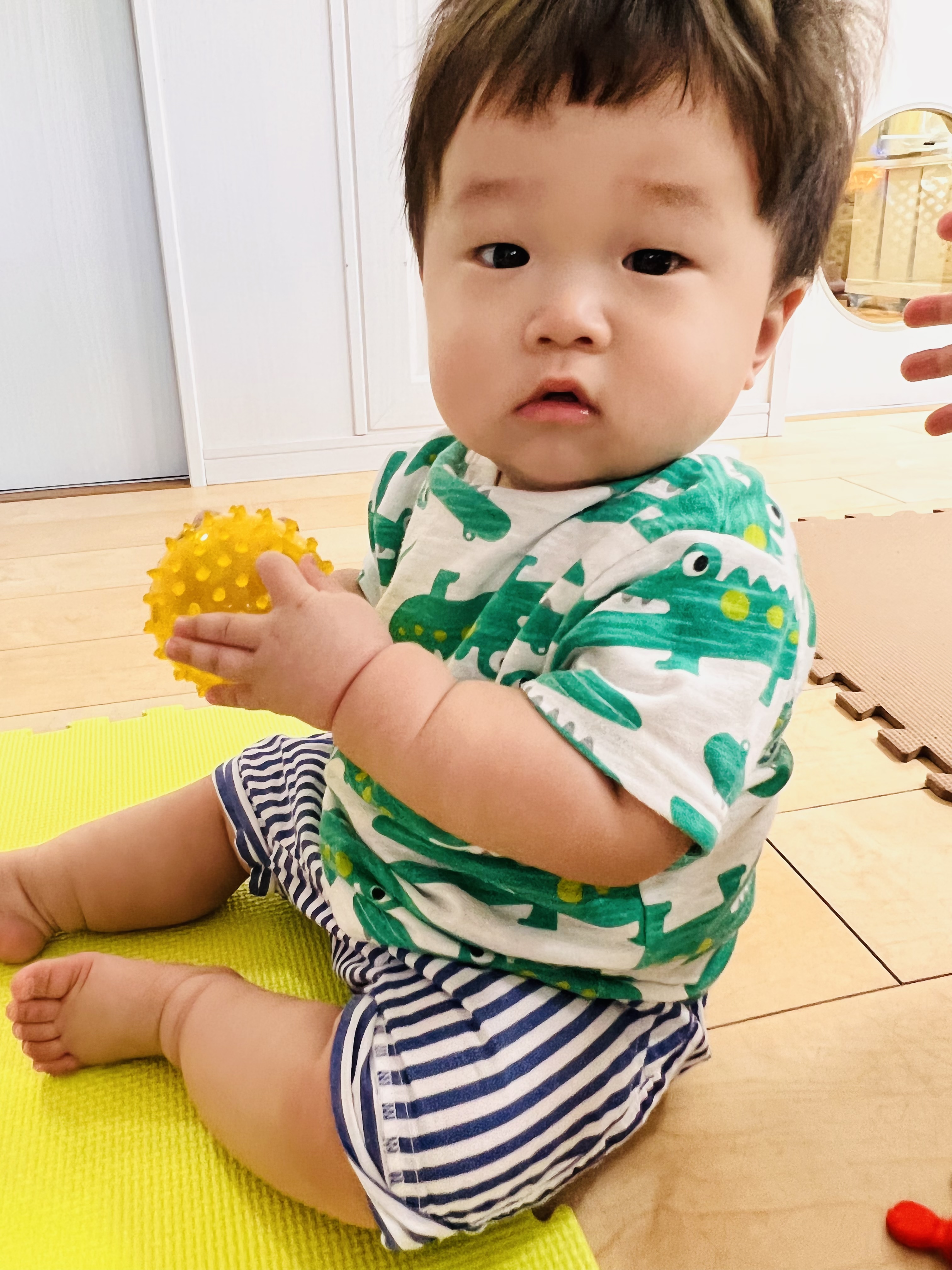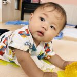お座りできるようになったり、ずり這いで方向転換できるようになったり毎日が絶賛成長中なお友達です😊