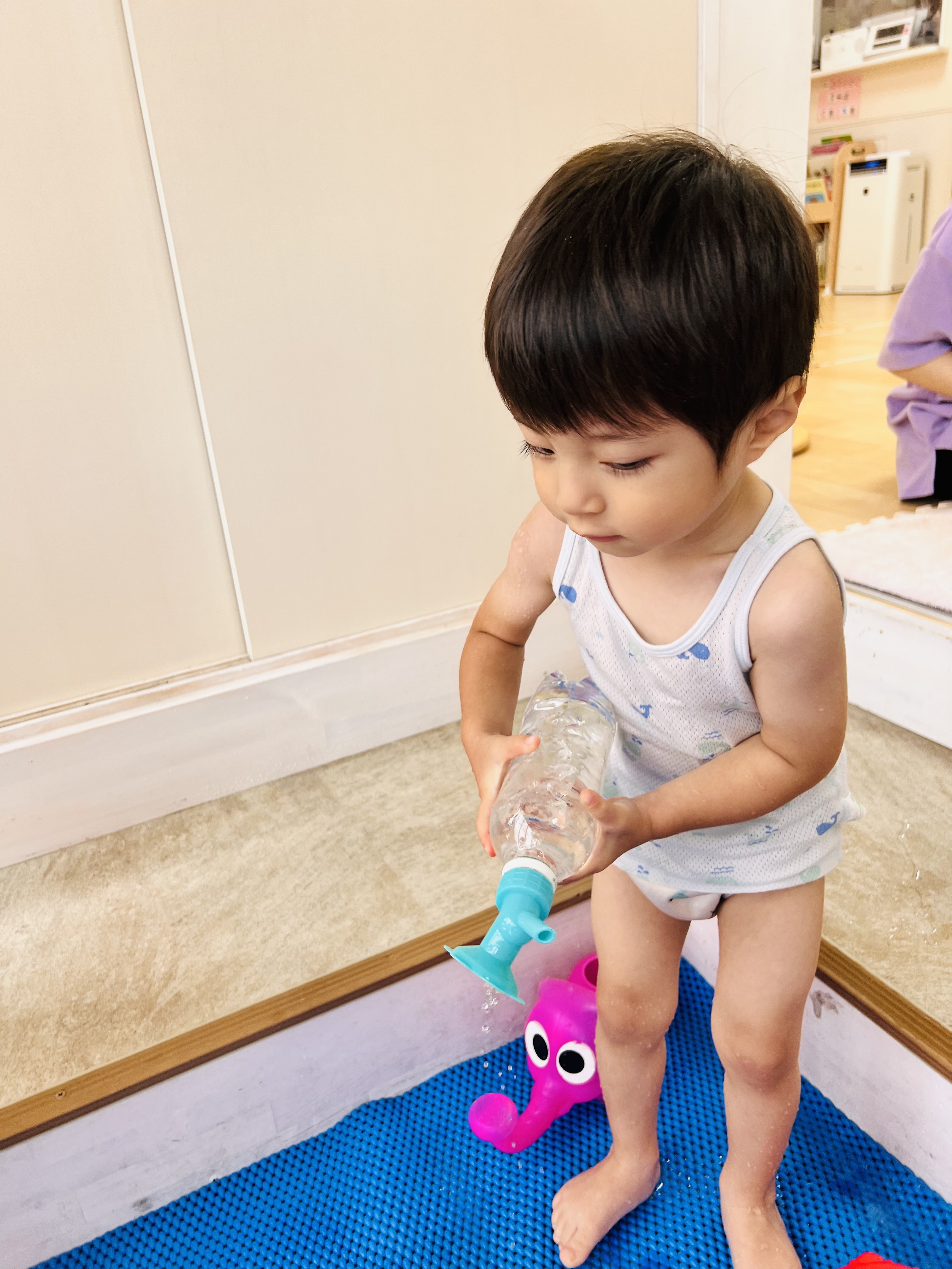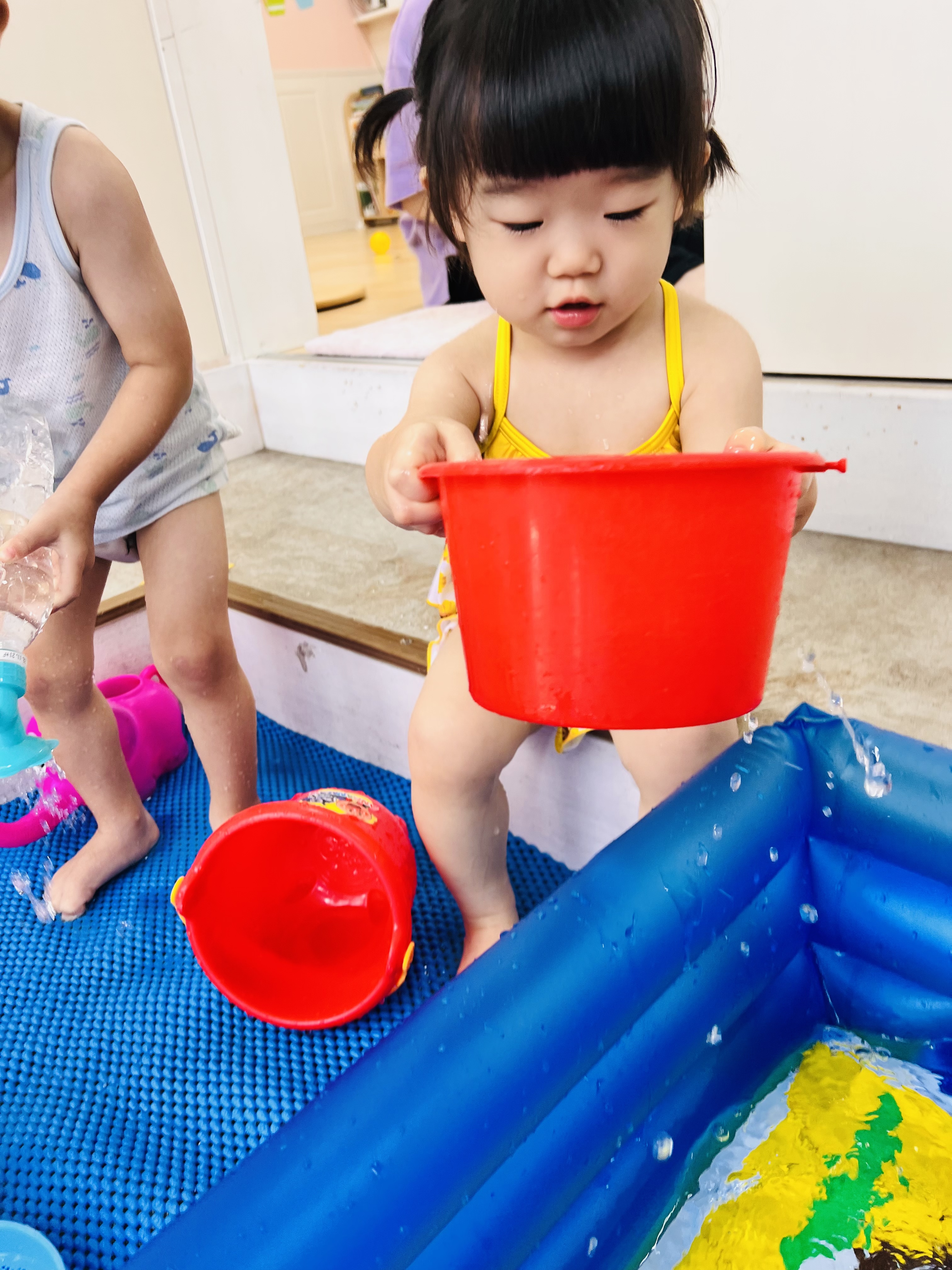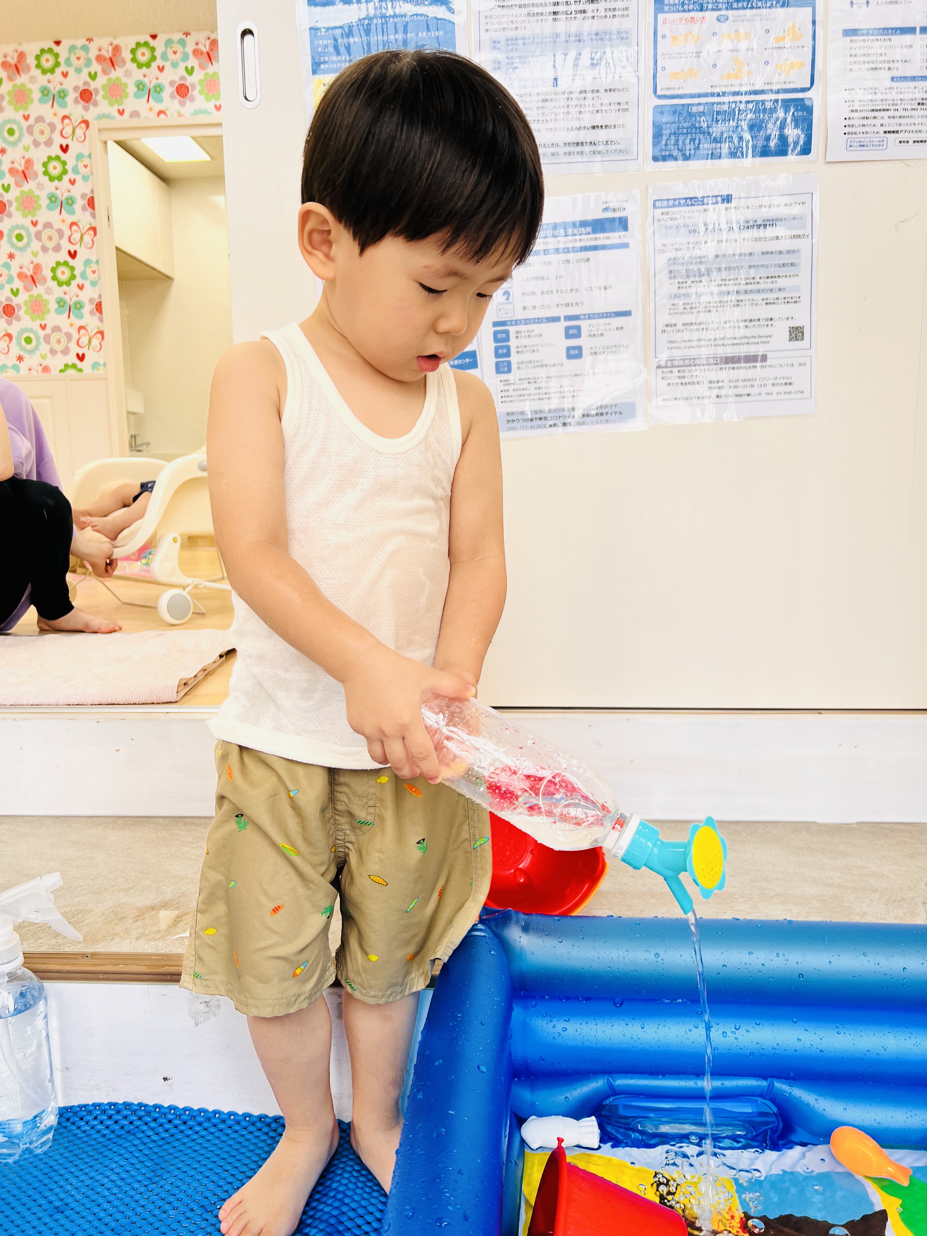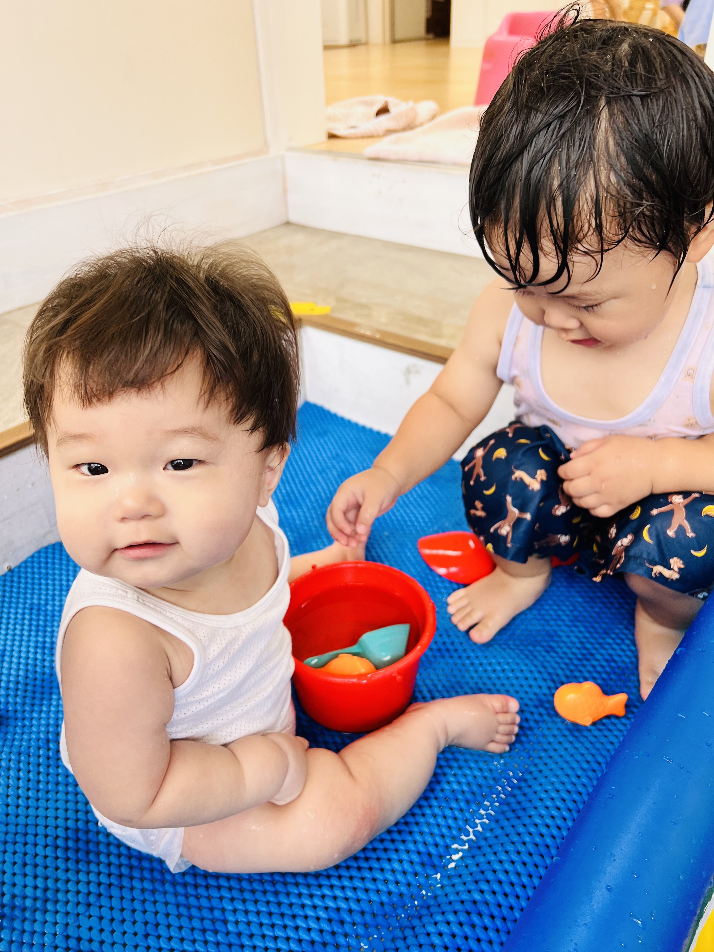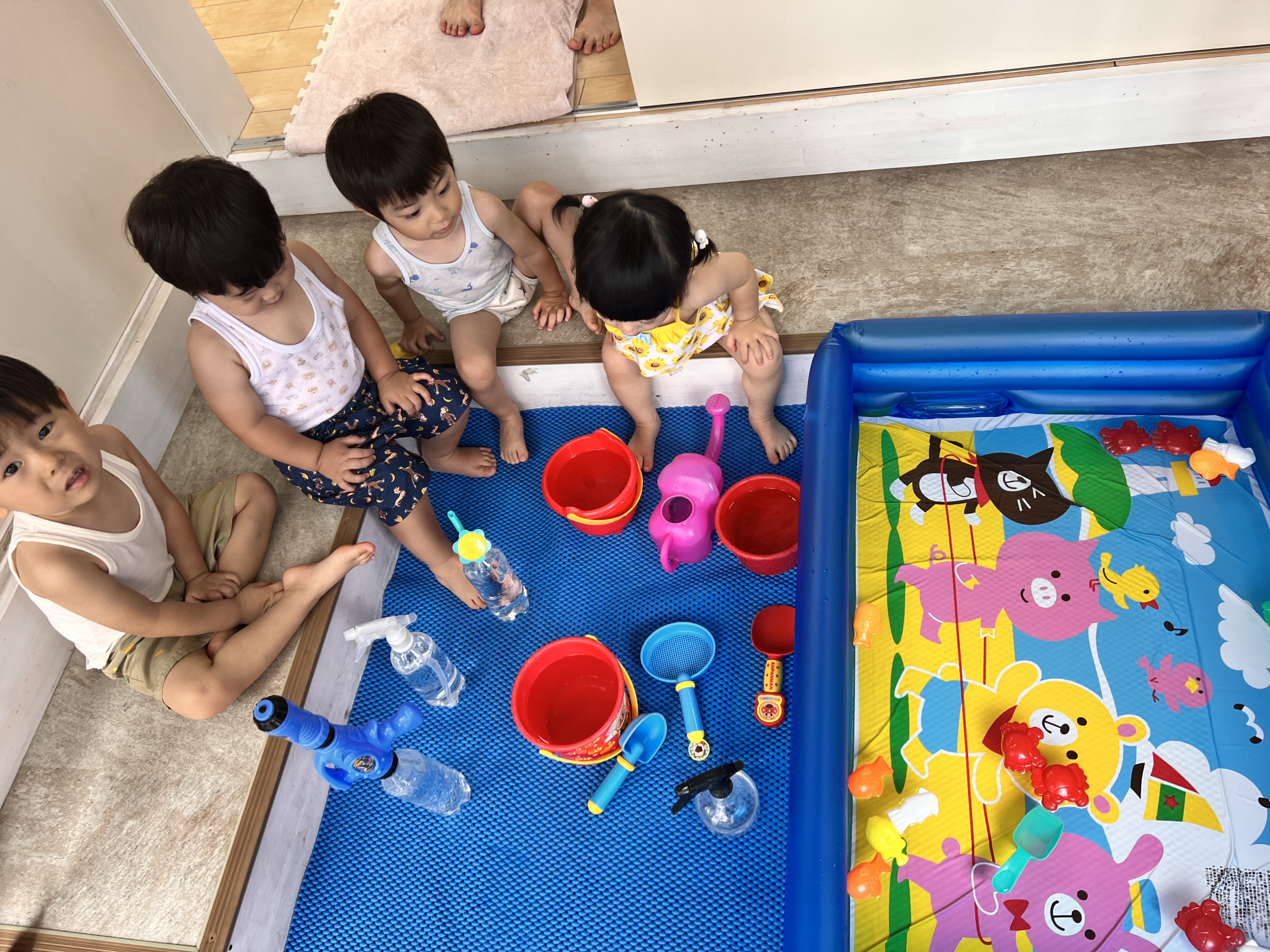 おやつの後はプールの用意です😊