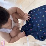 自分で服をはんぶんこ✨