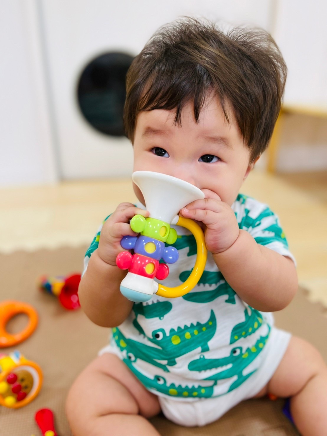 今日は0歳児のお友達がラッパ遊び♫