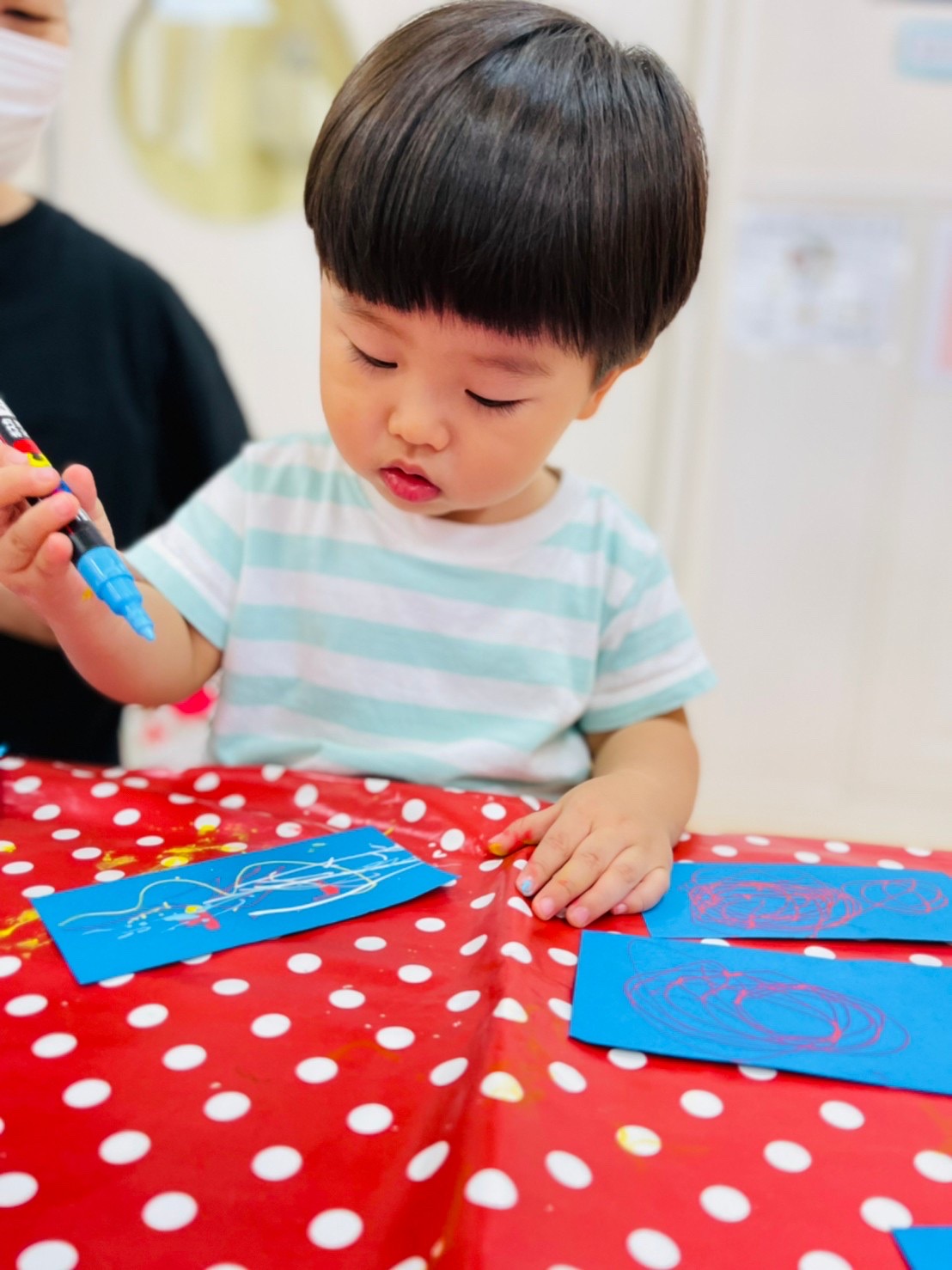 普段使わないマジックペンに蓋やペン先の形に興味津々です✨思わず手につけてみたくなってしたう気持ちが分かりますね😊