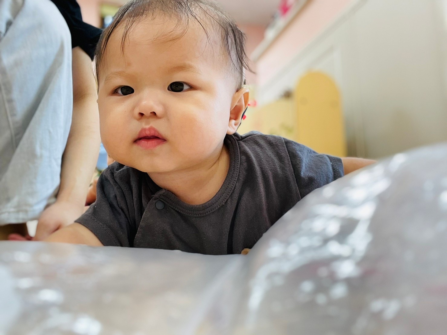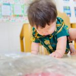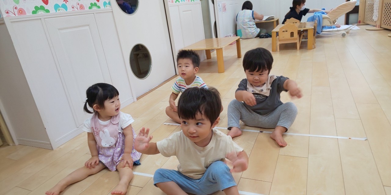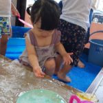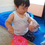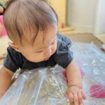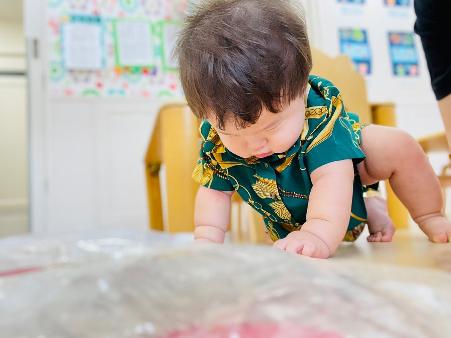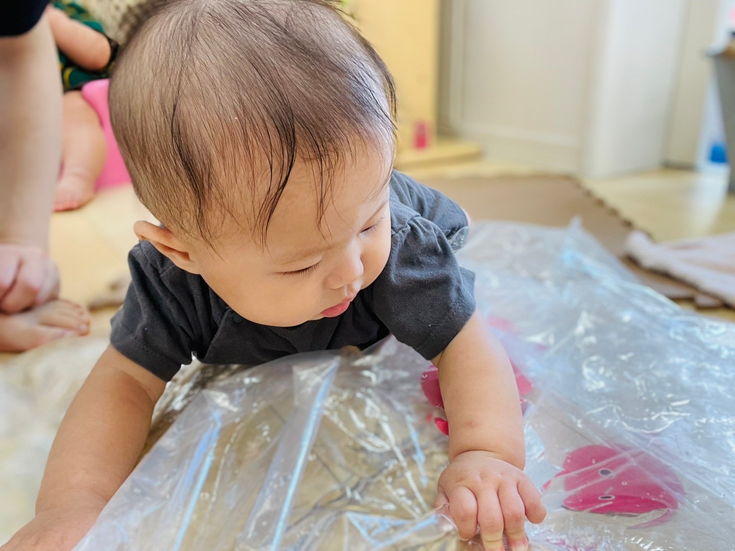 0歳児さんはウォーターマットで感触遊びをしました😊