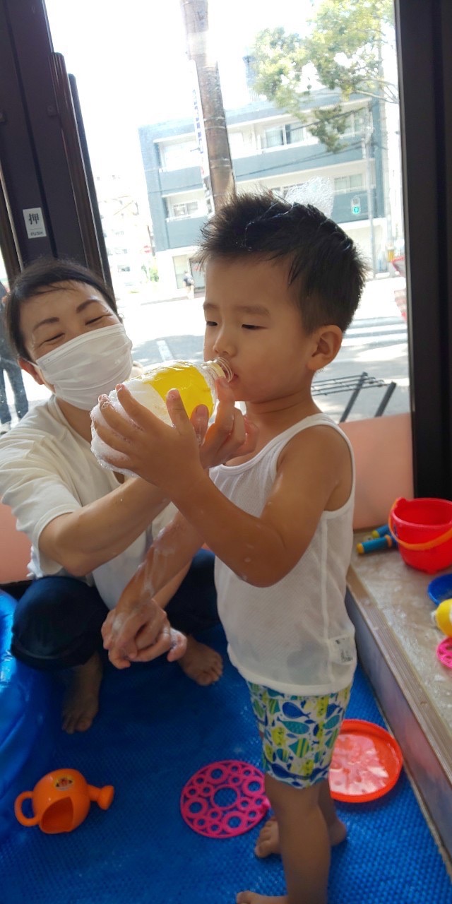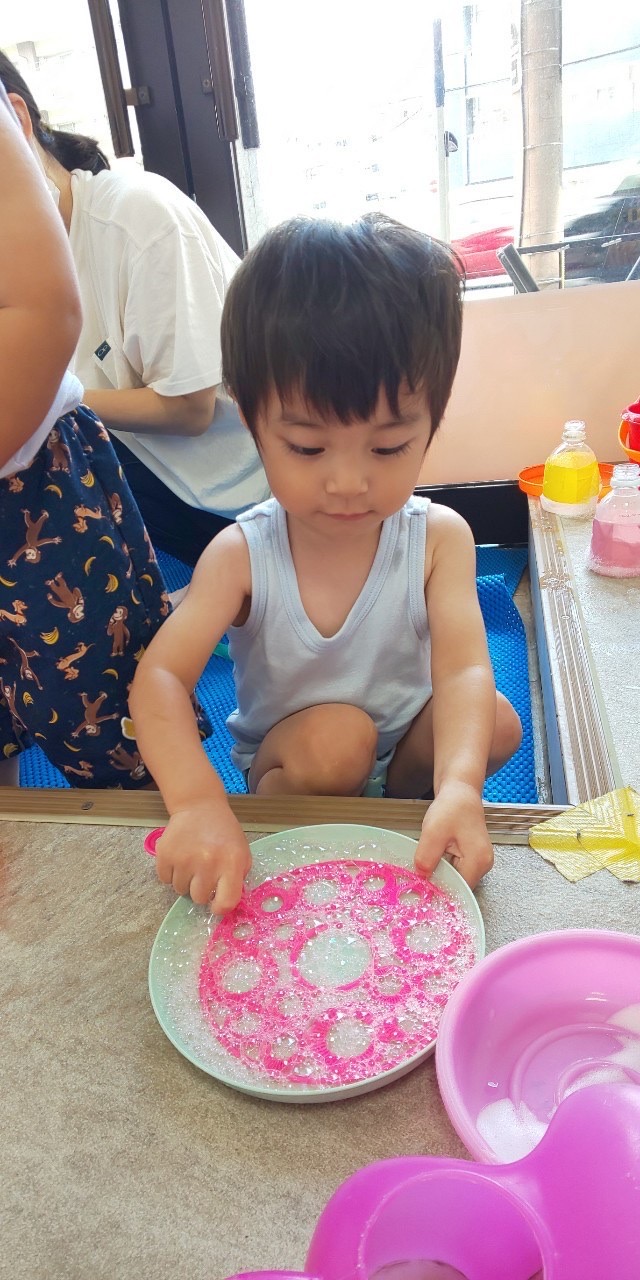 たくさん出てくる泡ブクブクにとっても嬉しそうなお友達でした😊