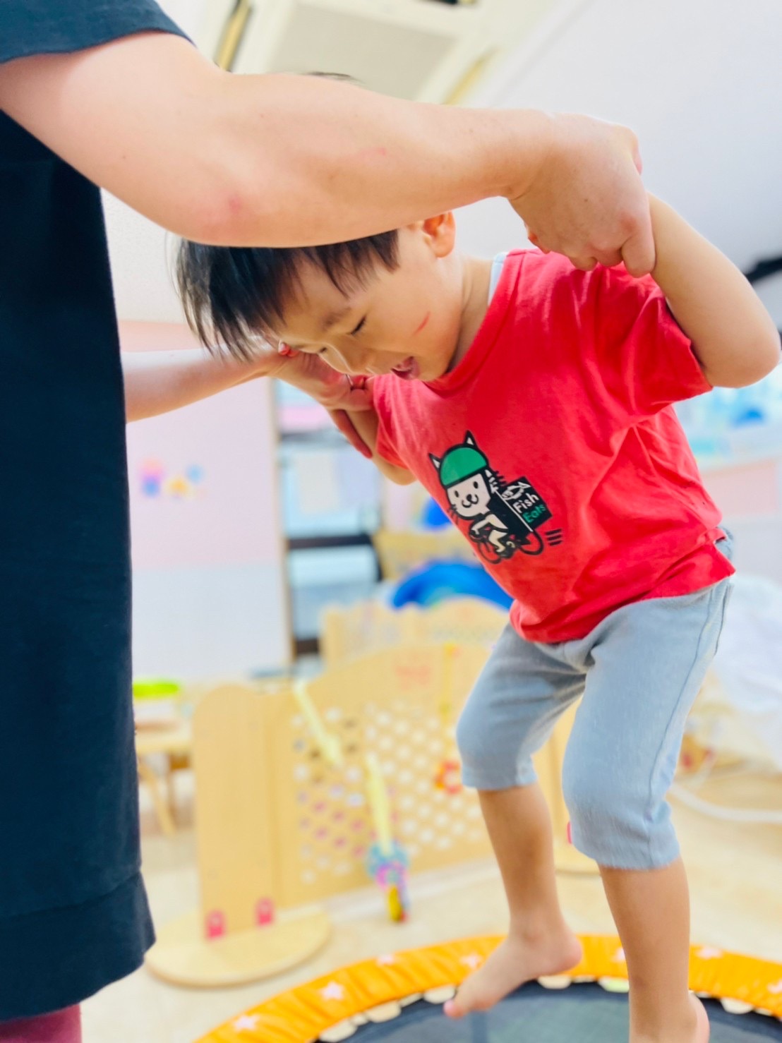 順番待ちも上手に…と思ったら少しずつトランポリンに近づいてるお友達も😁