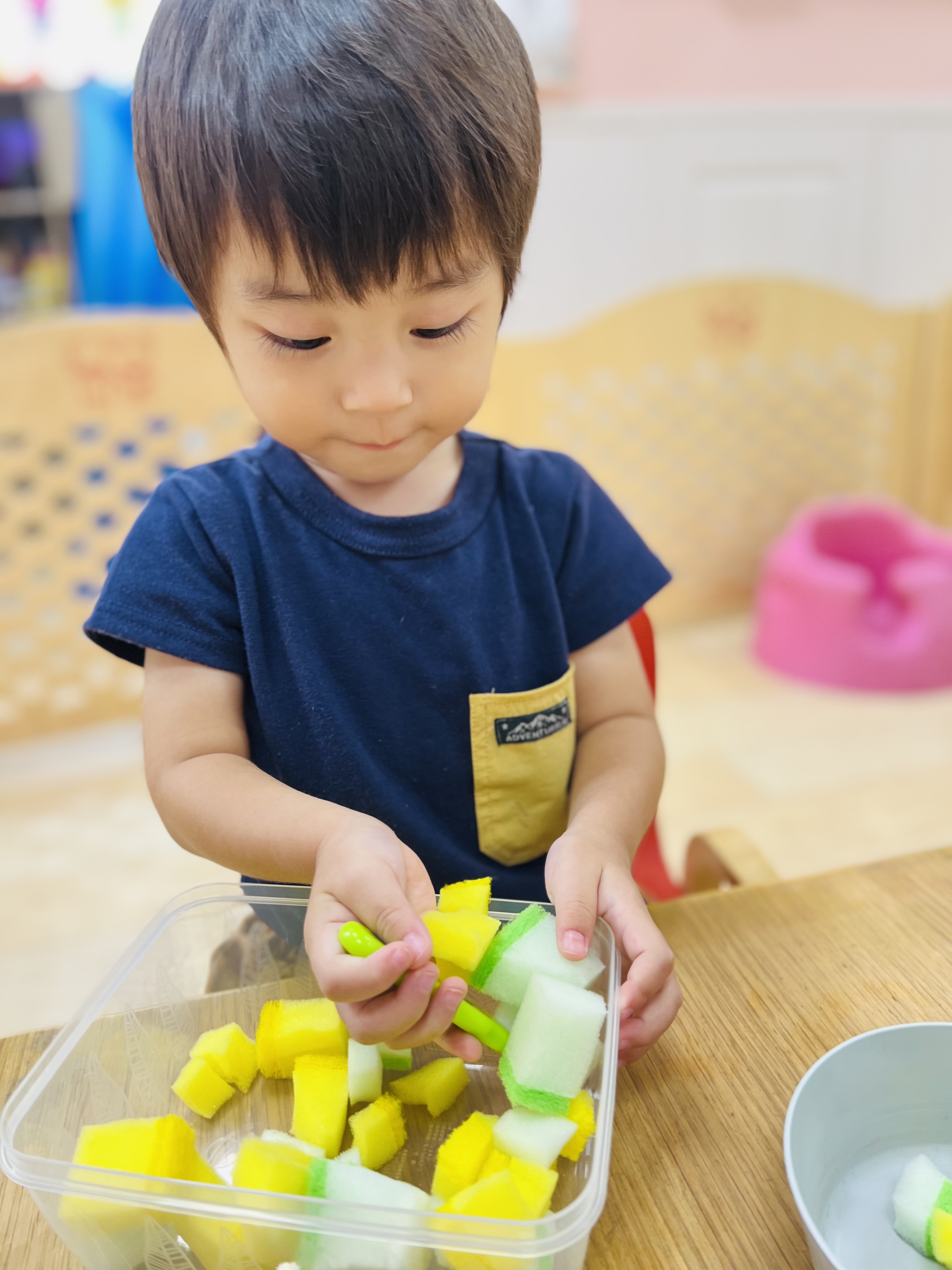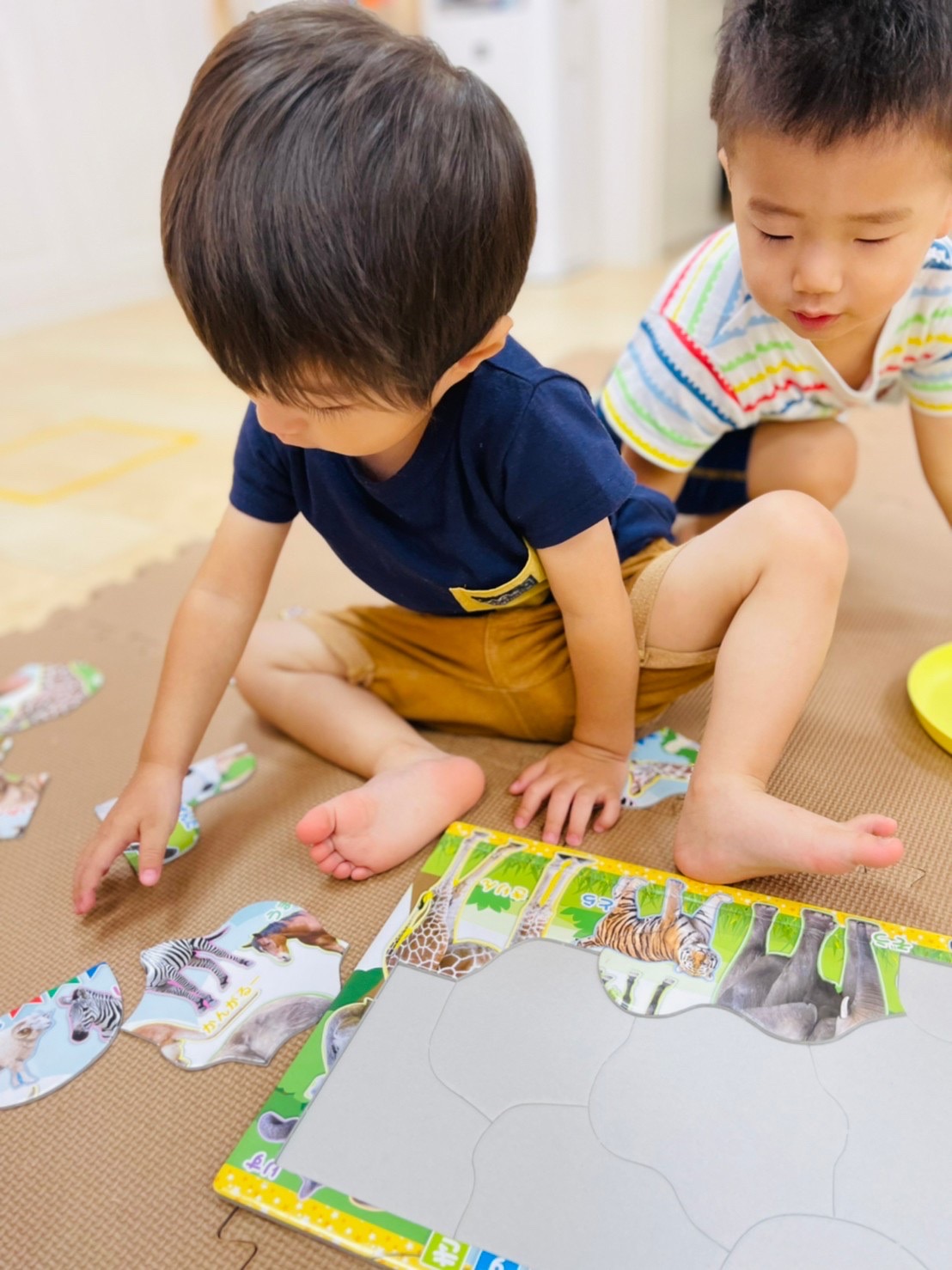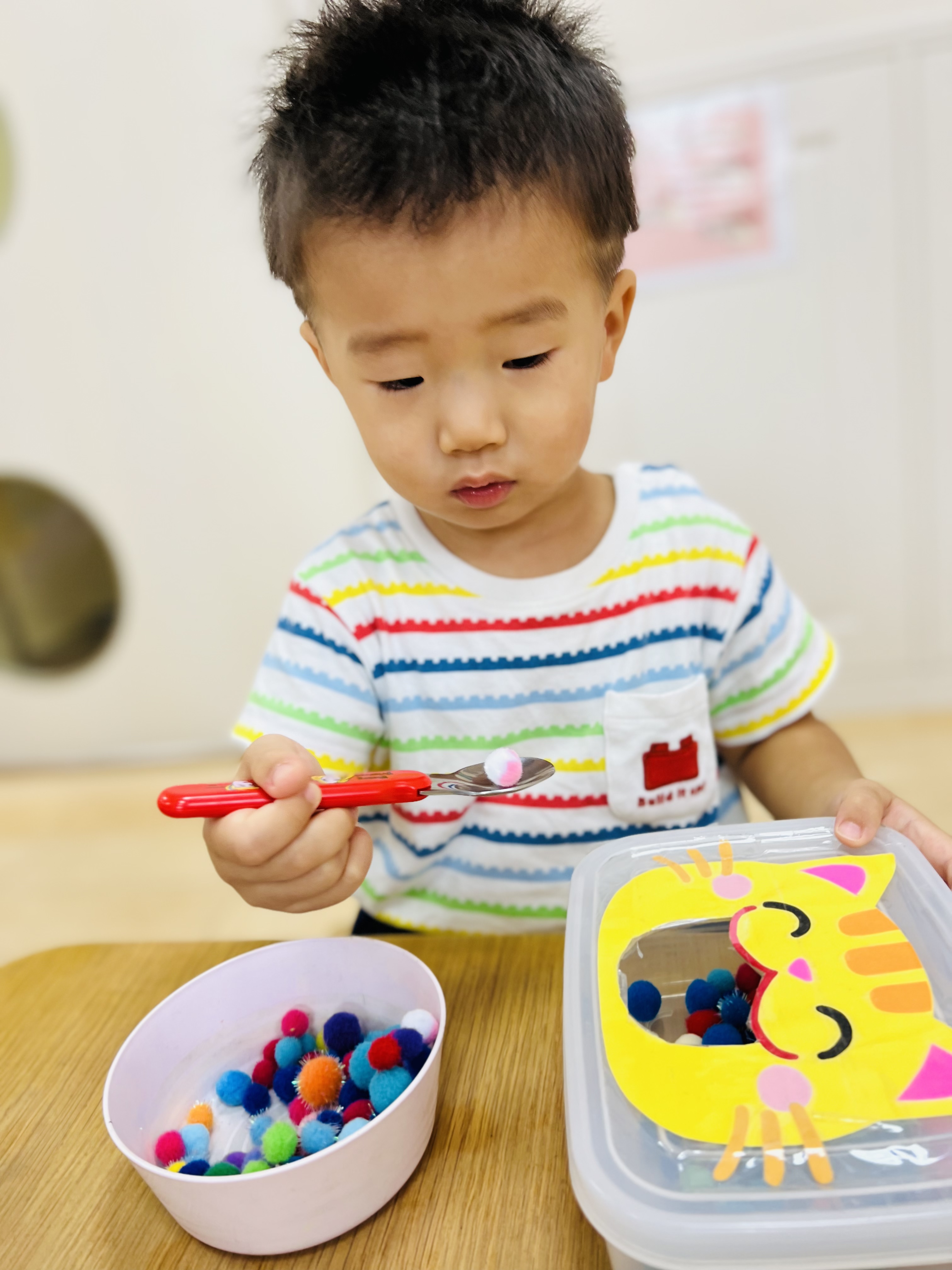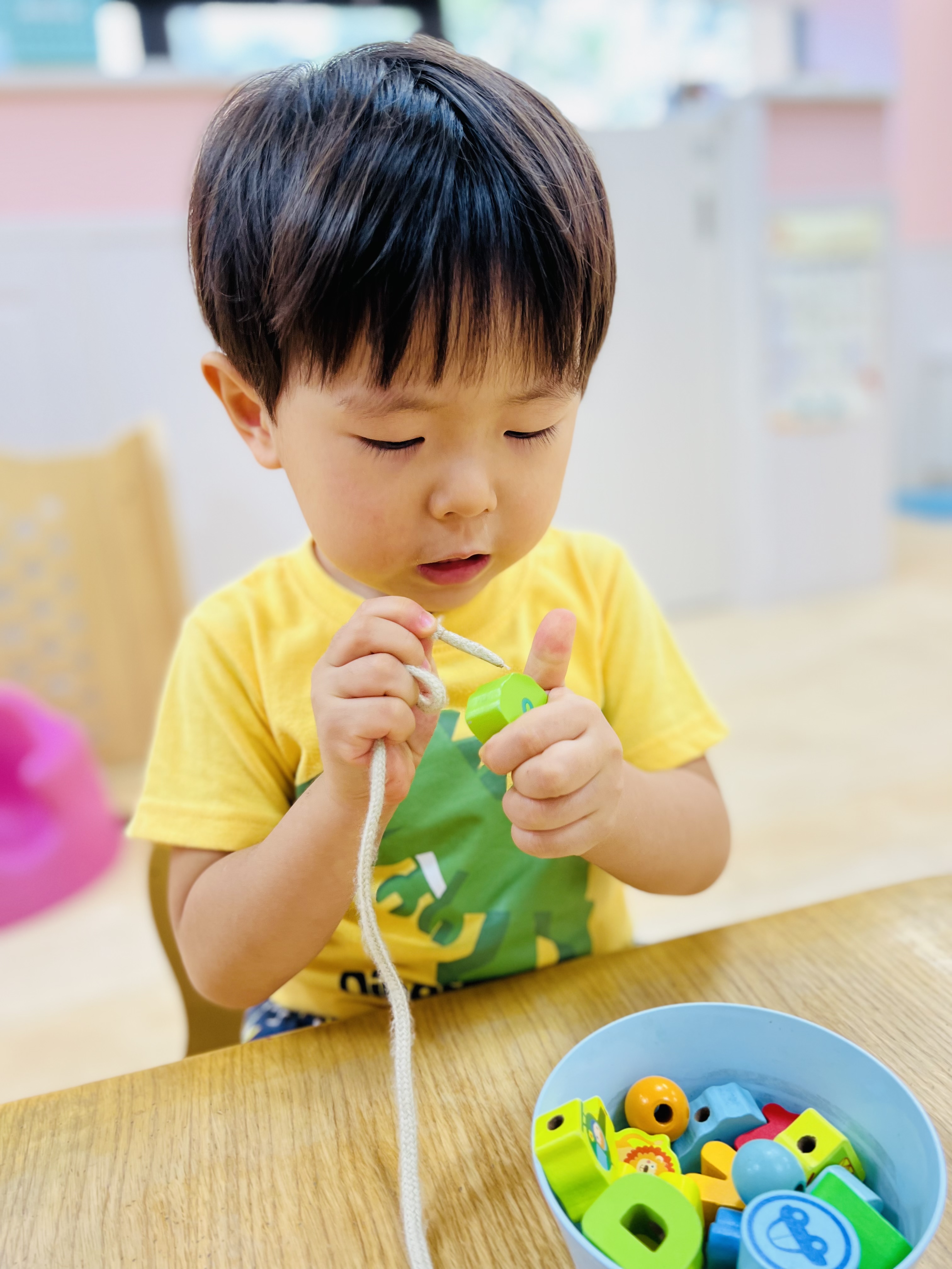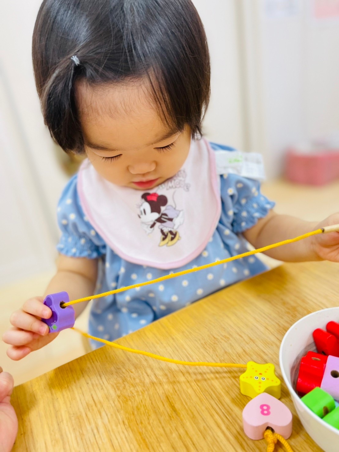 パズルや紐通し、スプーンの練習など集中して取り組んでます✨