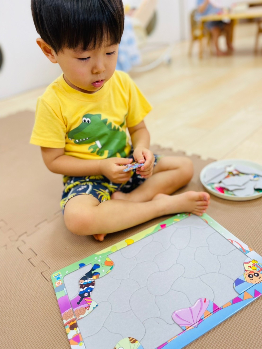 できないところは手を使ってみたり、悔しいからと何度も元に戻してやり直してみたり、先生の声かけも必要ありません✨自分の力でやる意欲が高まってます😊