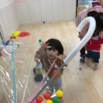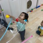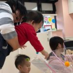 自分達でボールを傘の中に入れられるかな??