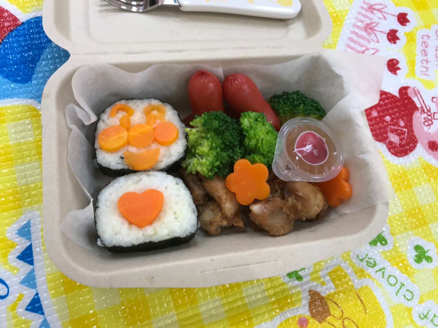 みんなががんばったご褒美に給食の先生が可愛いお弁当を作ってくれました(^_-)-☆