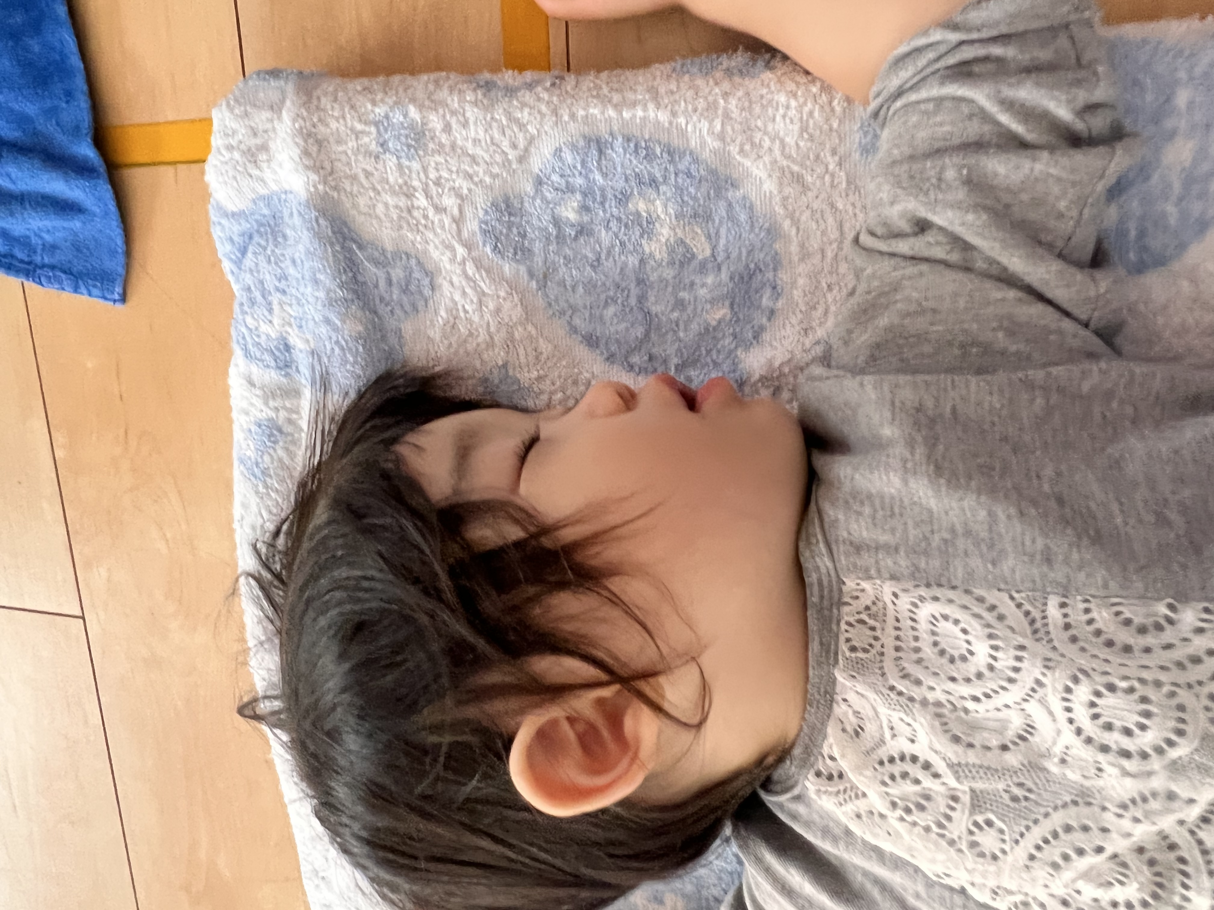 2歳児さんは久しぶりのカートに安心して、保育園に着く前にウトウトと😊そんな日もありますね😊