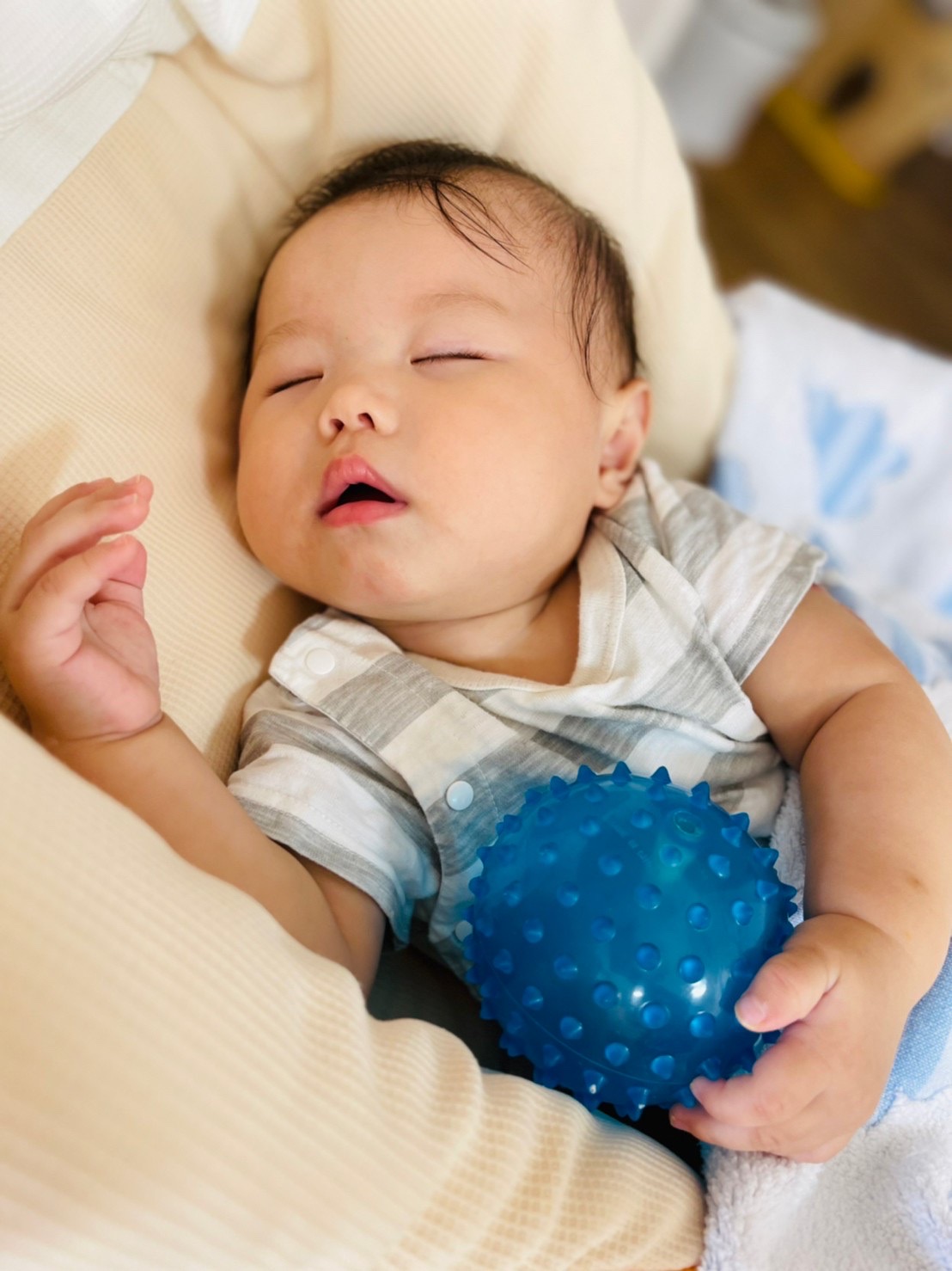 眠る時も大好きなボールを握りしめて❤️どんな夢みてるかな😊