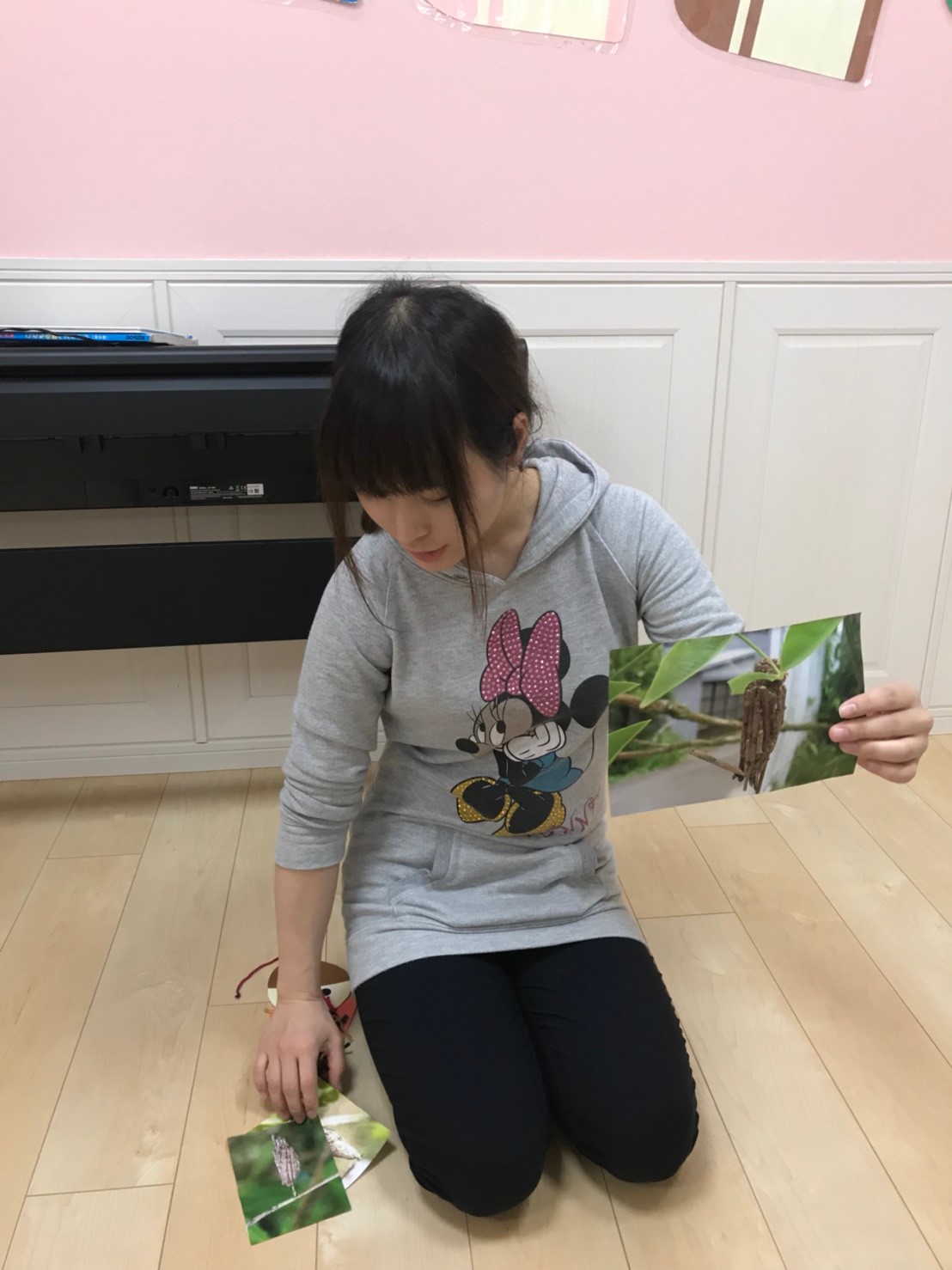 先生がみのむしがどんなものか写真を見せてくれていますよ❤
