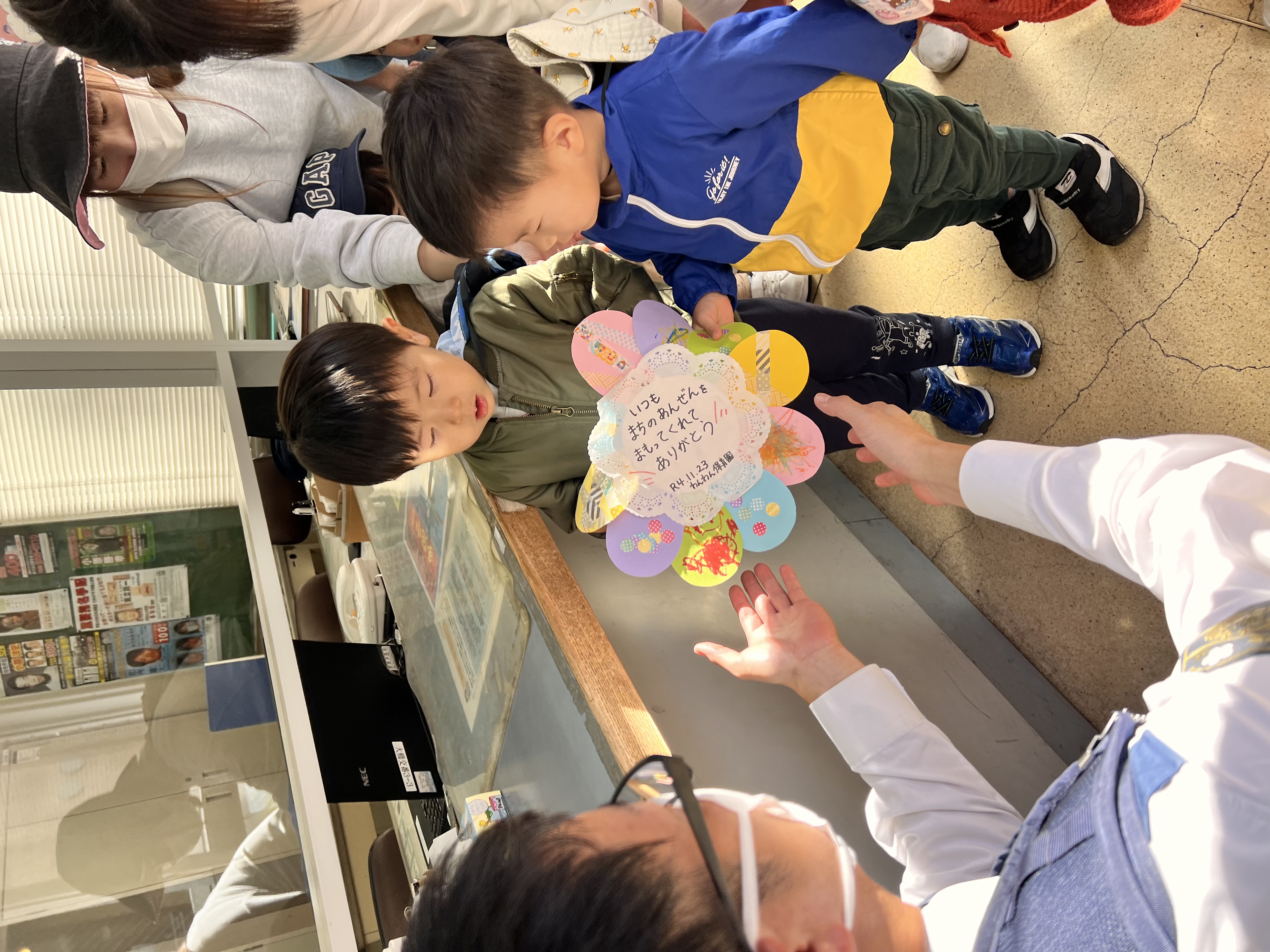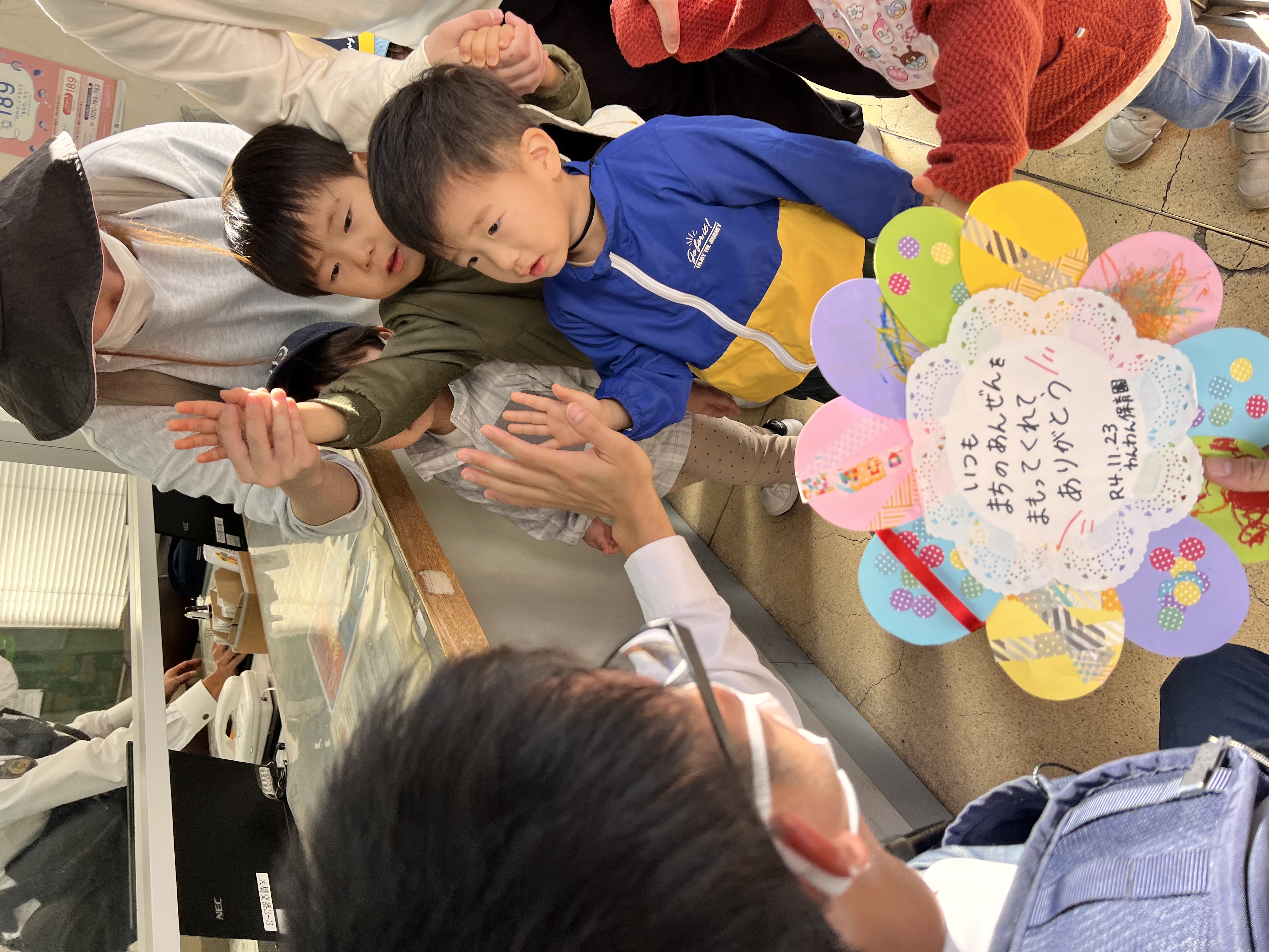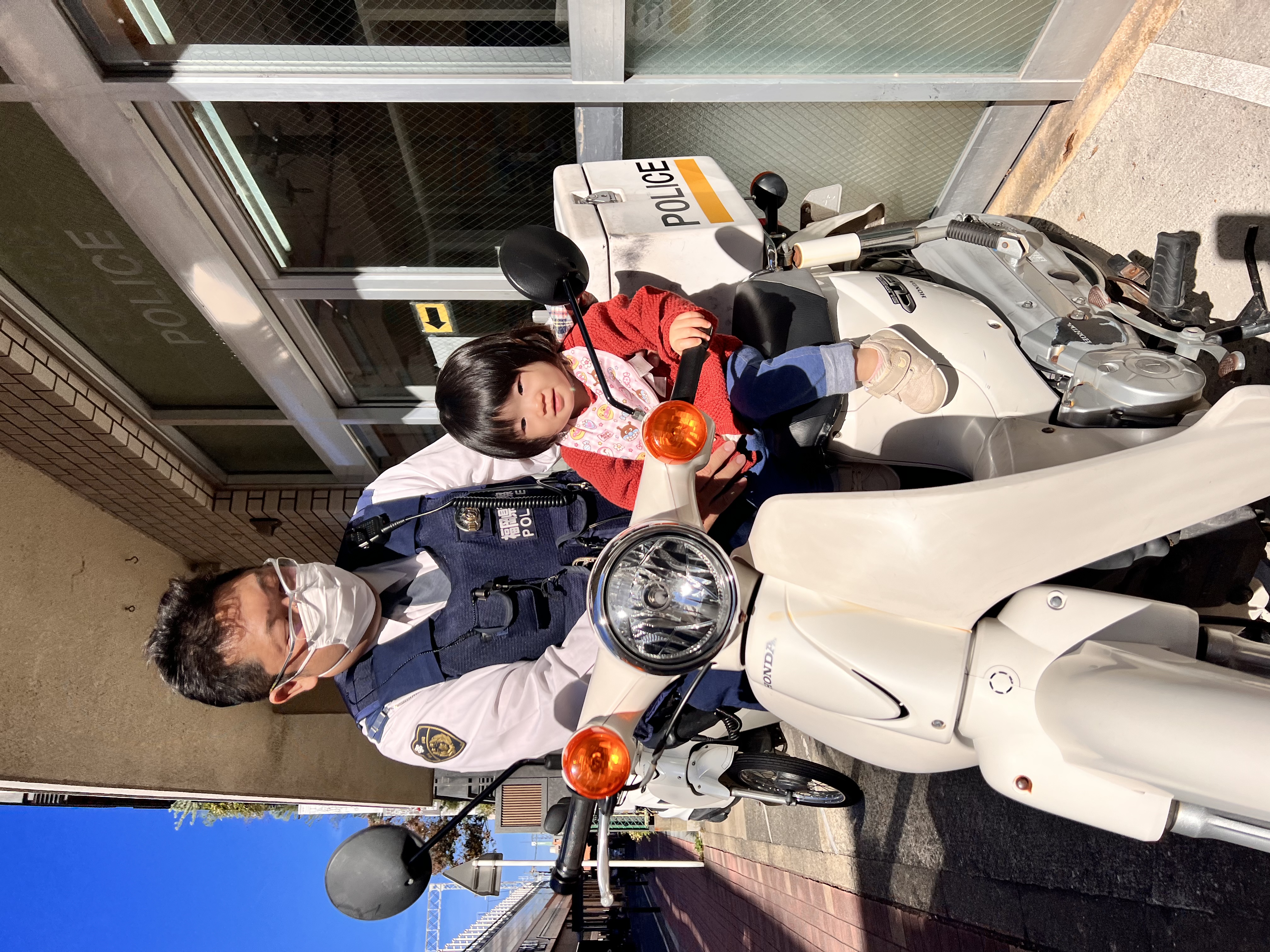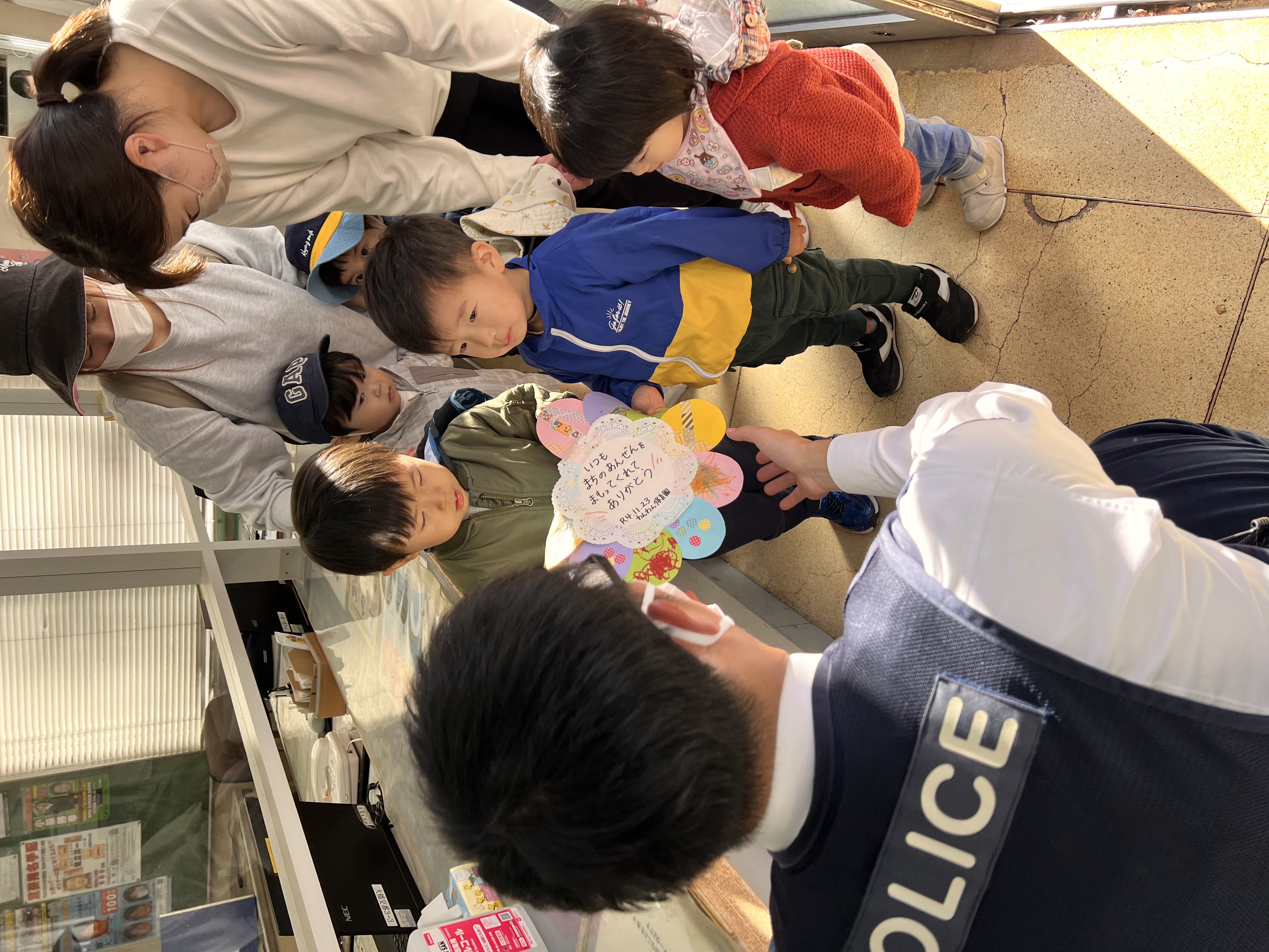 少し遅くなりましたが、ハロウィンでお菓子を渡していただいた交番のお巡りさんにお礼の気持ちもこめて、勤労感謝の日のプレゼントをしました♪