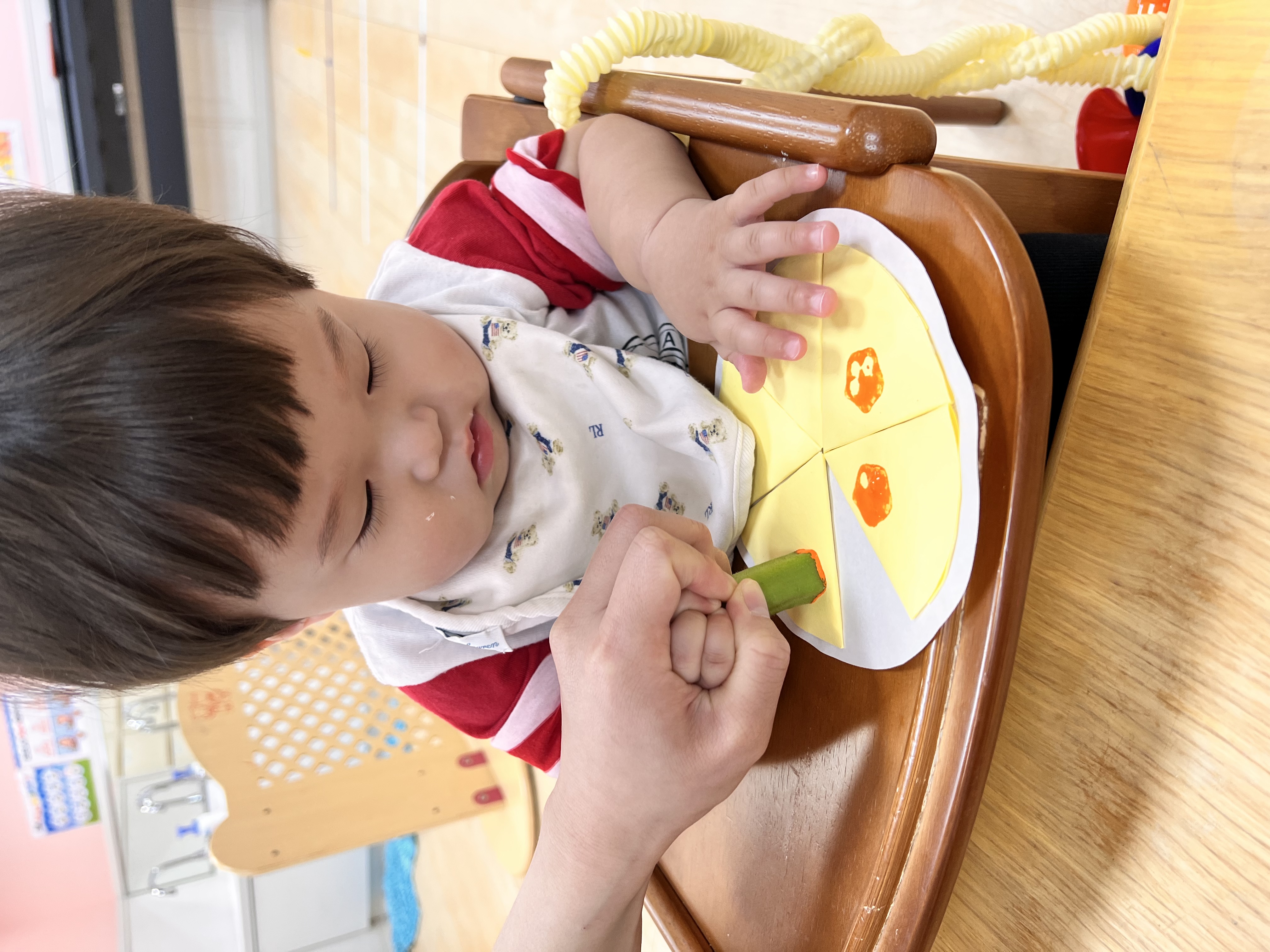 チーズがとろーり、美味しそうなピザが出来上がりました♫みんなのピザは誰が買うのかな❓