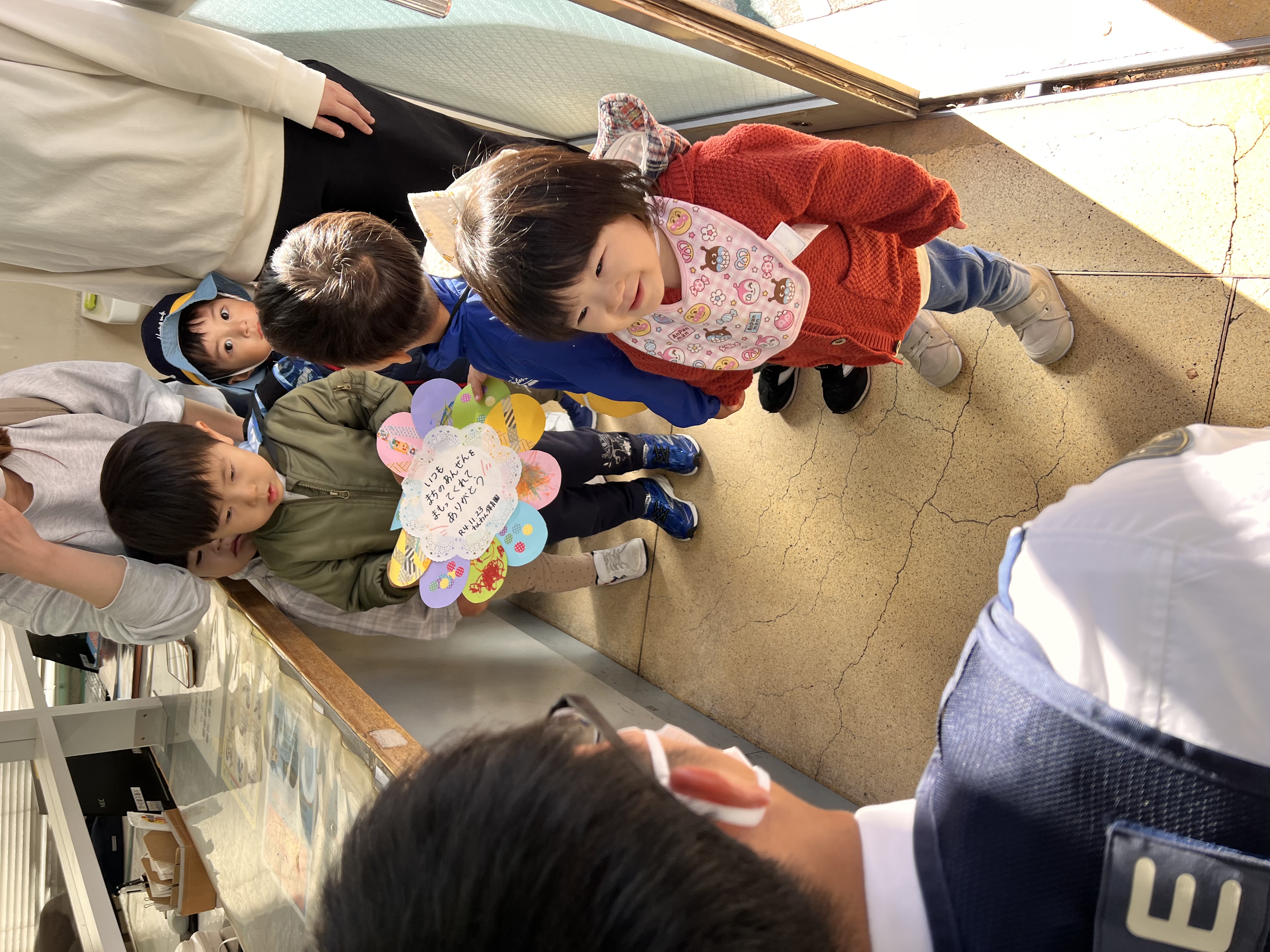 ドキドキしながら、「いつも町やみんなを守ってくれてありがとうございます❗️」と伝えましたよ😊