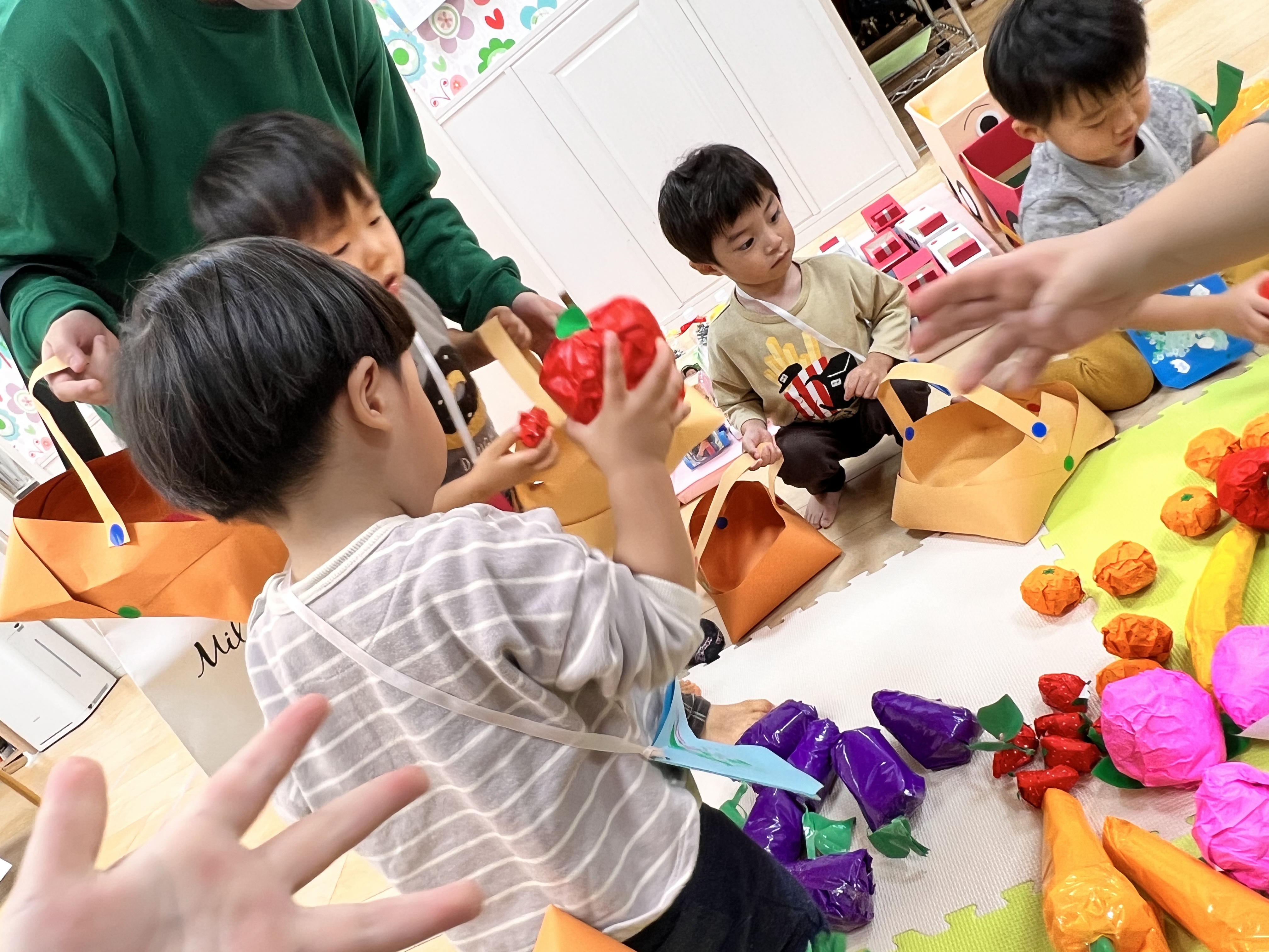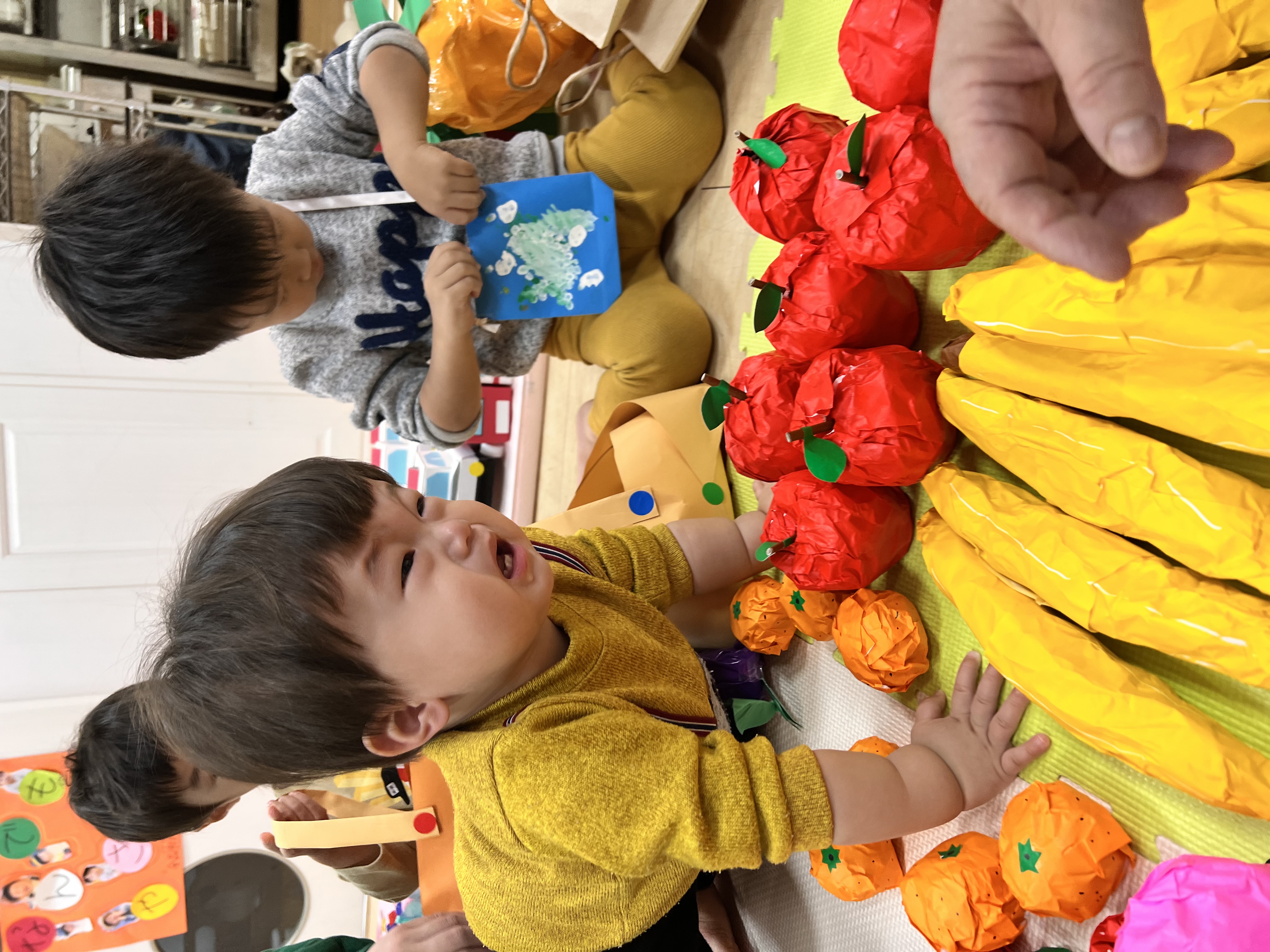 果物よりも先生への後追いに必死な0歳児さんも😁