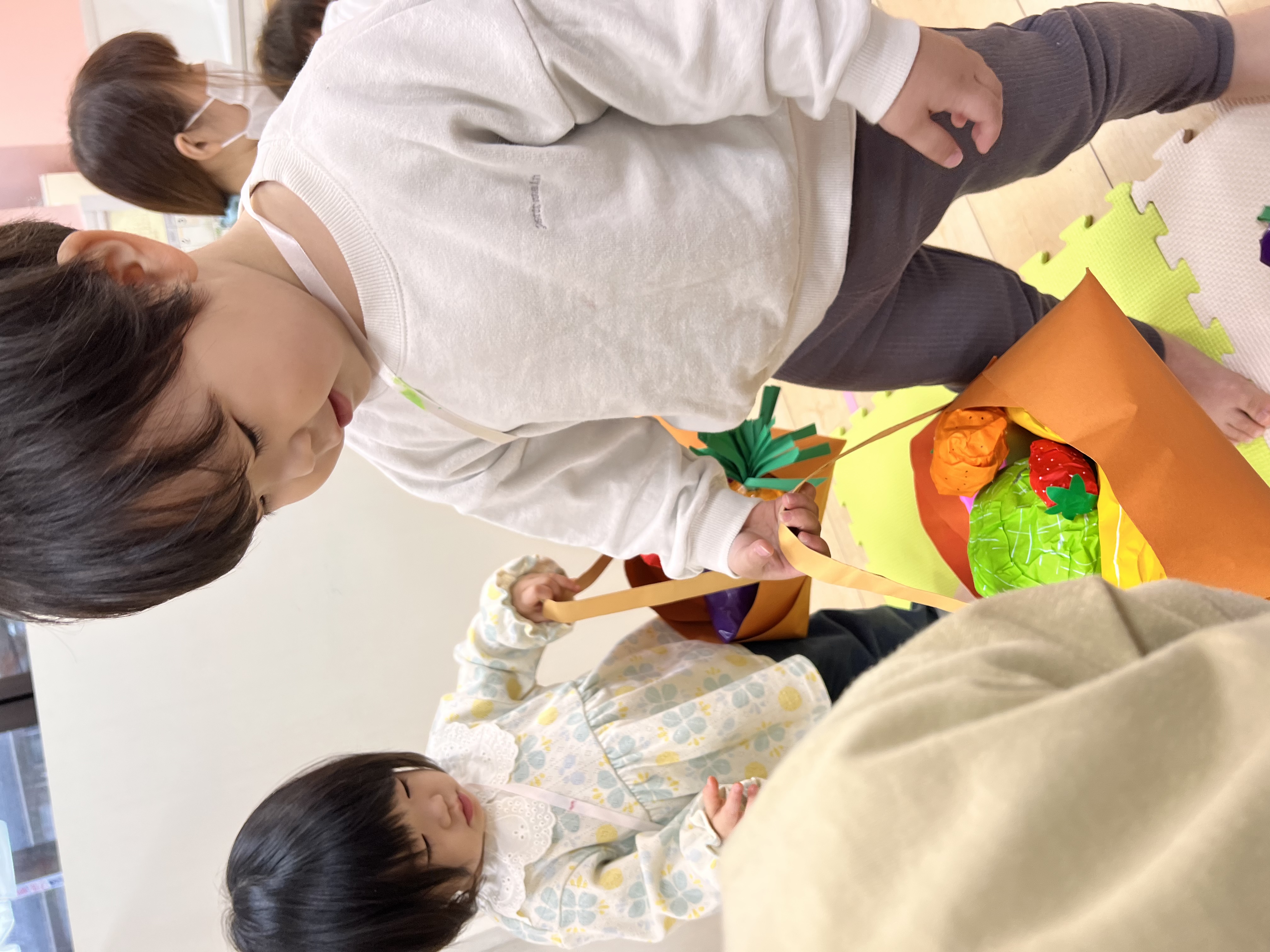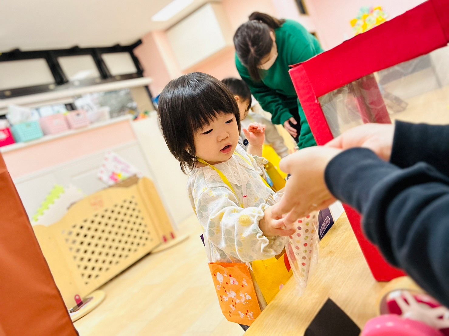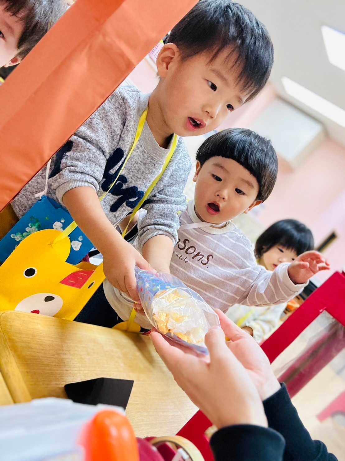 2歳児さんは上手にお金を出し、お買い物のやり取りに真剣でしたよ😊