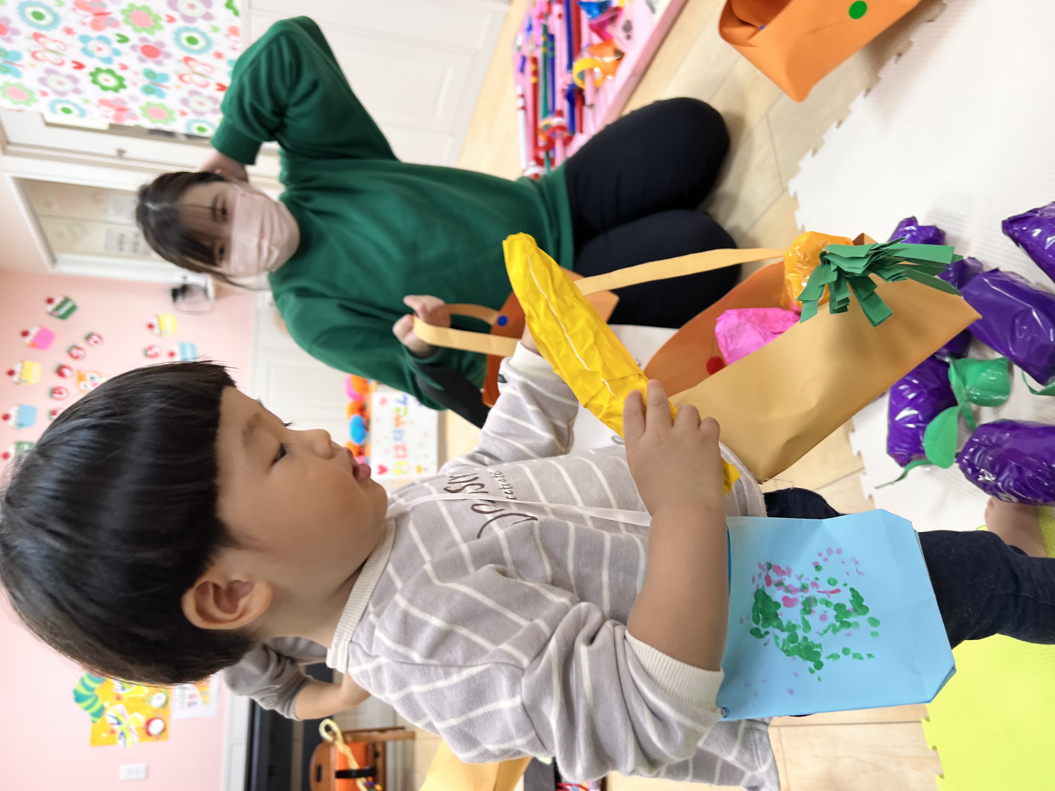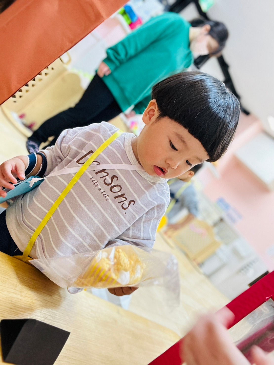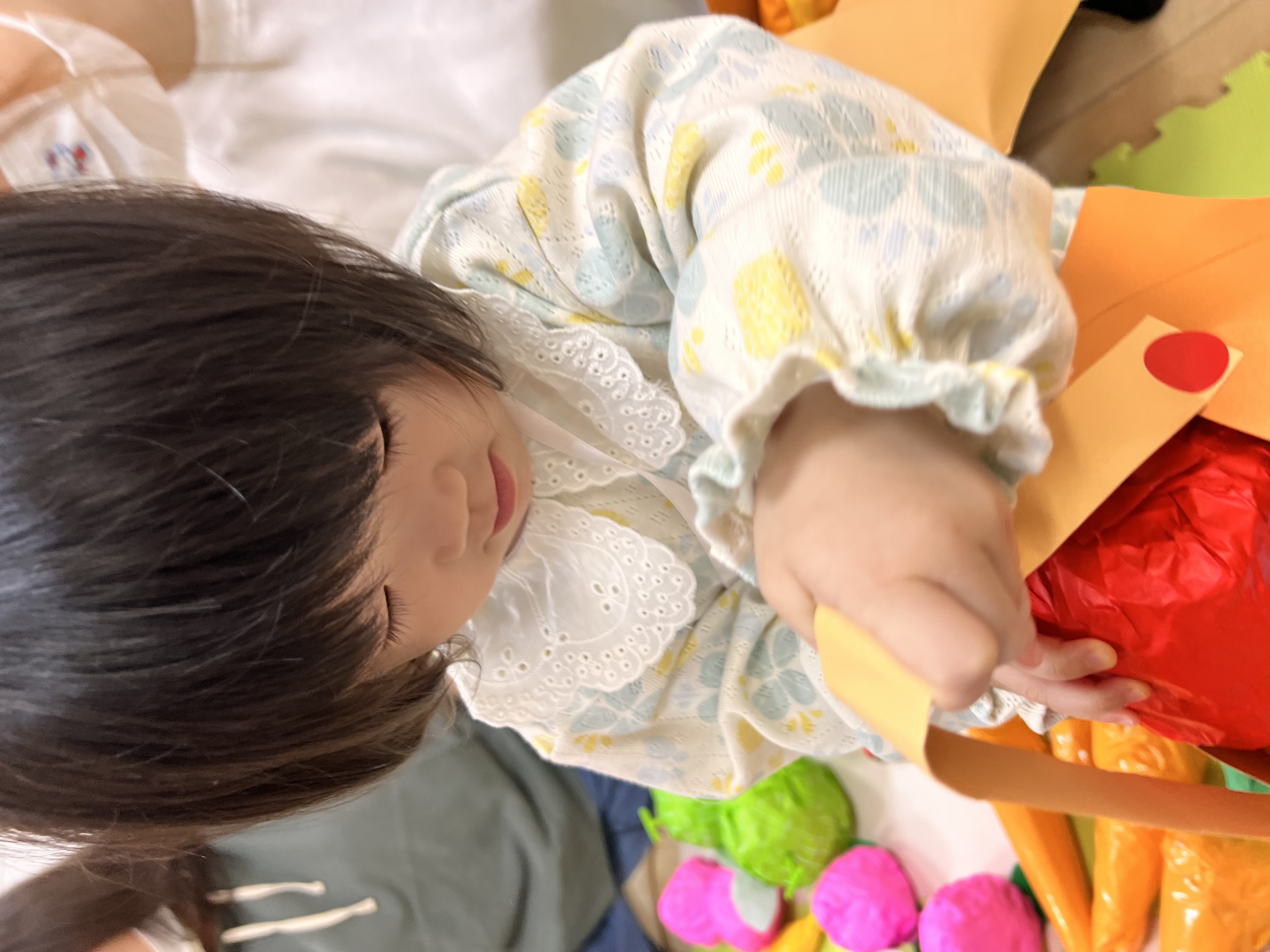 2歳児さんは上手にお金を出し、お買い物のやり取りに真剣でしたよ😊