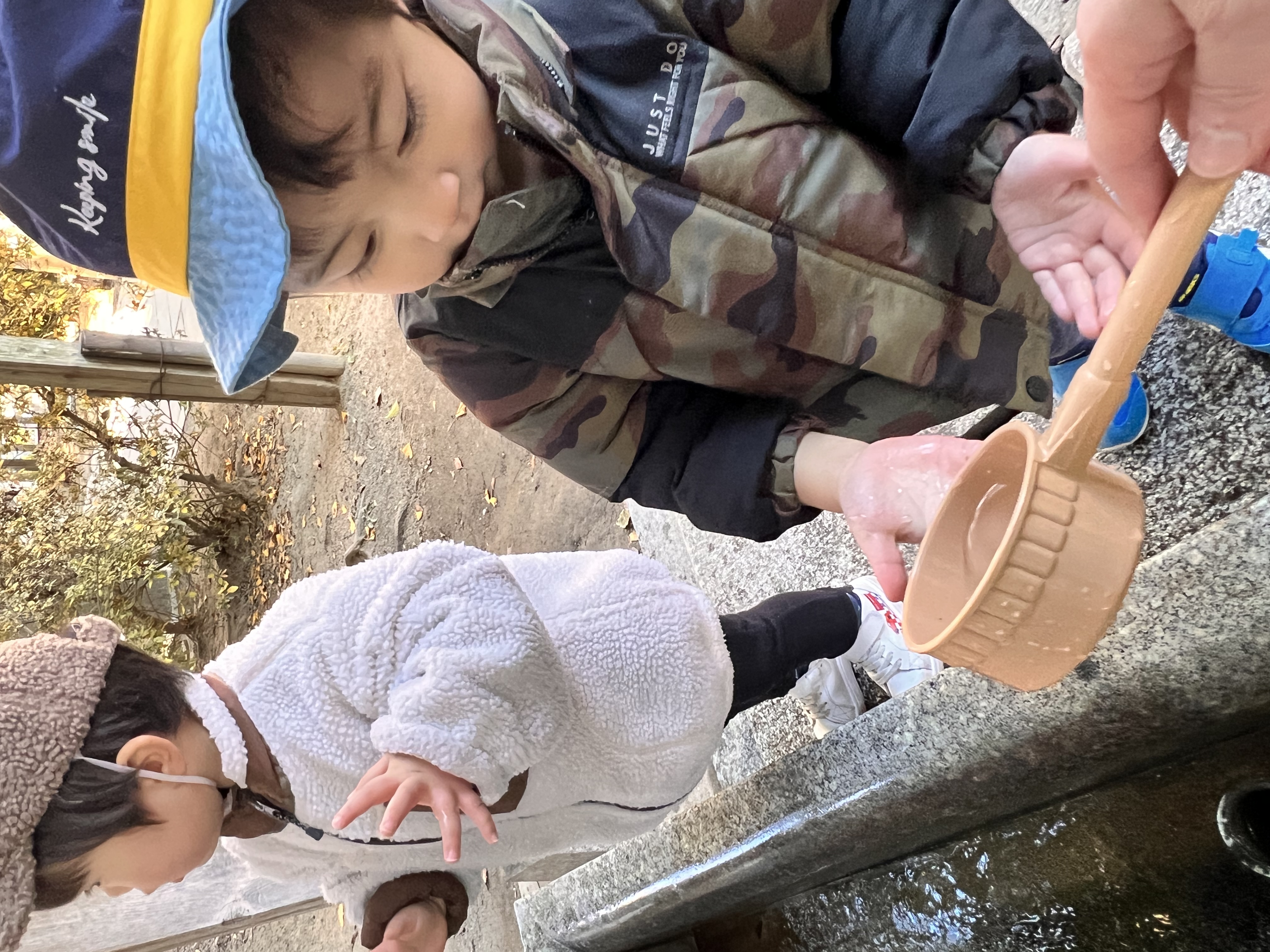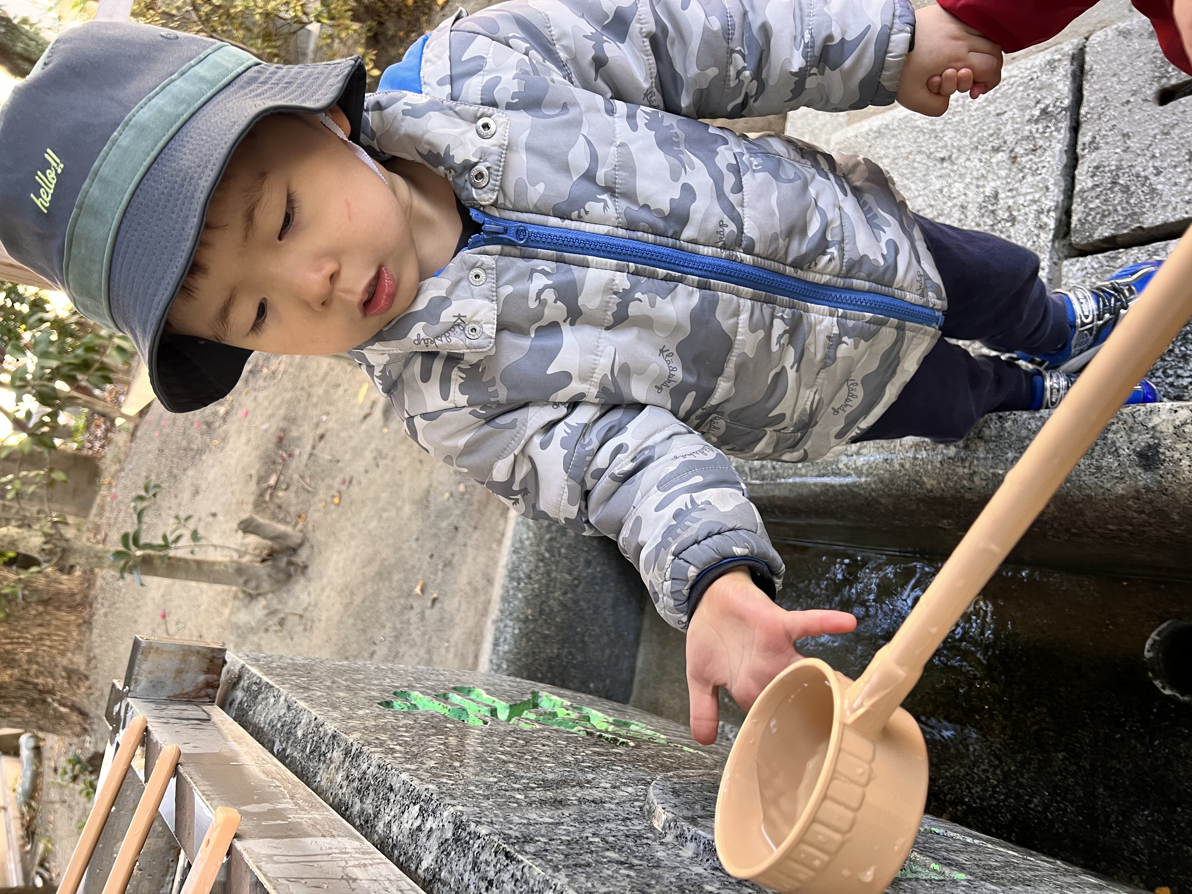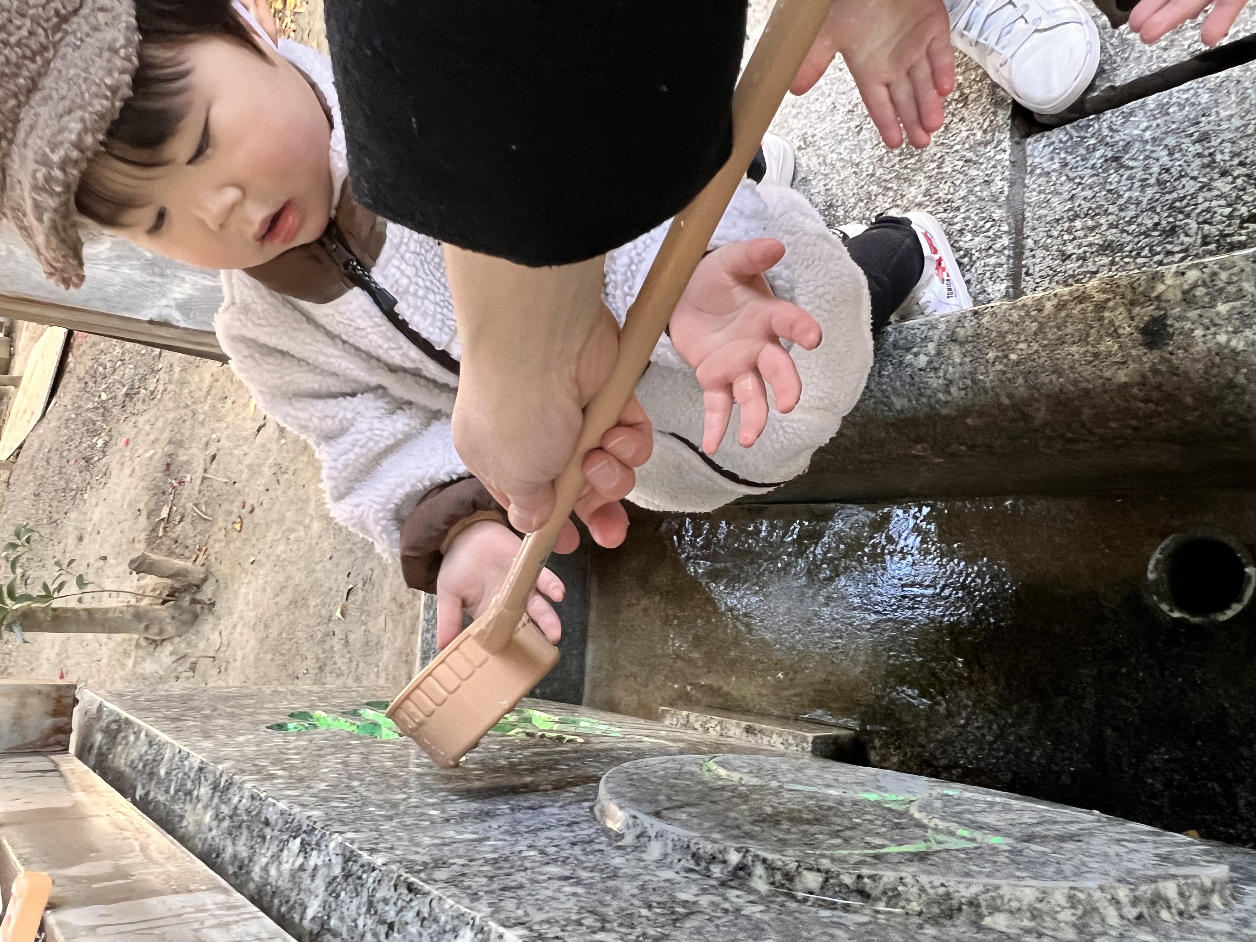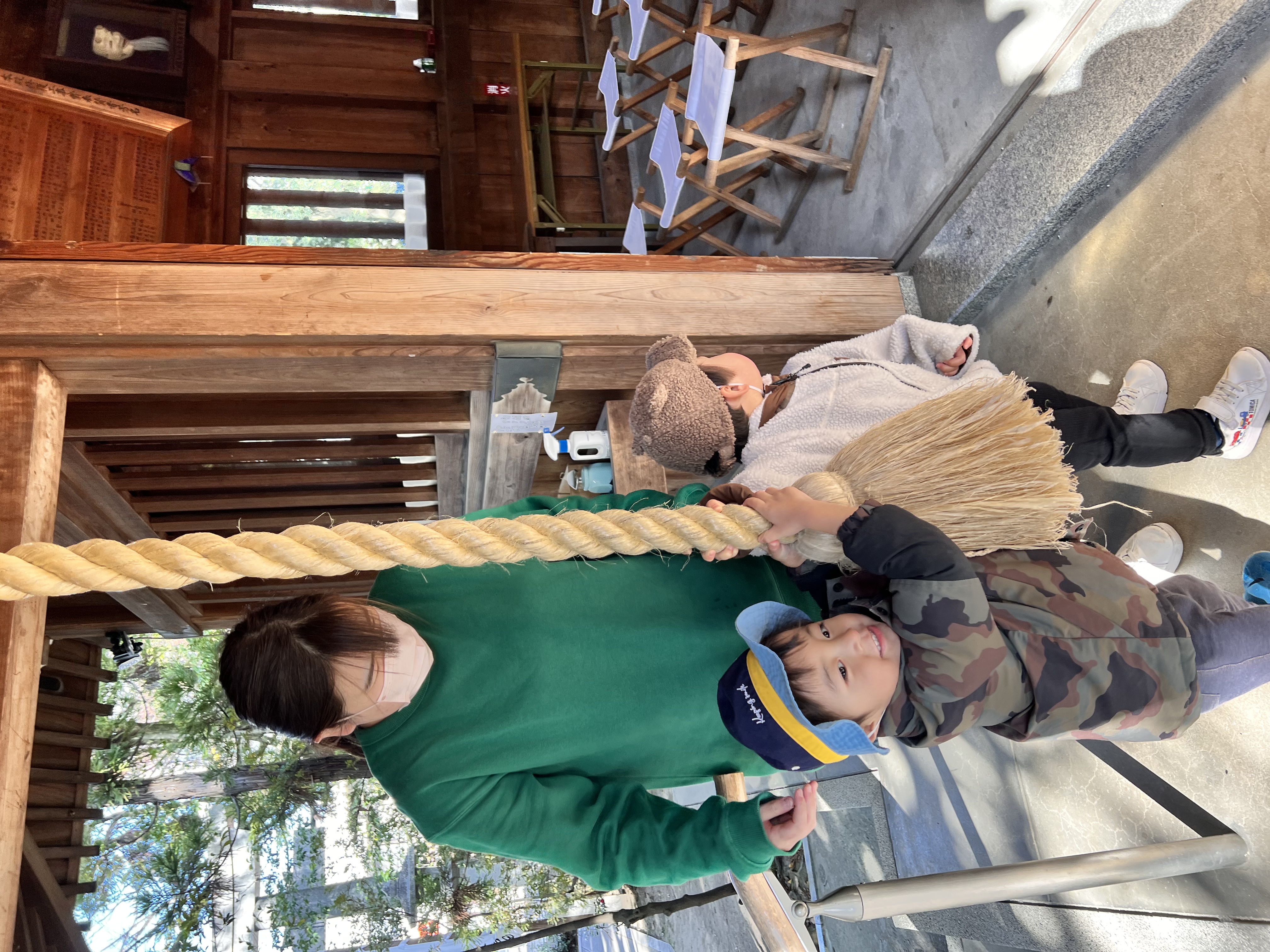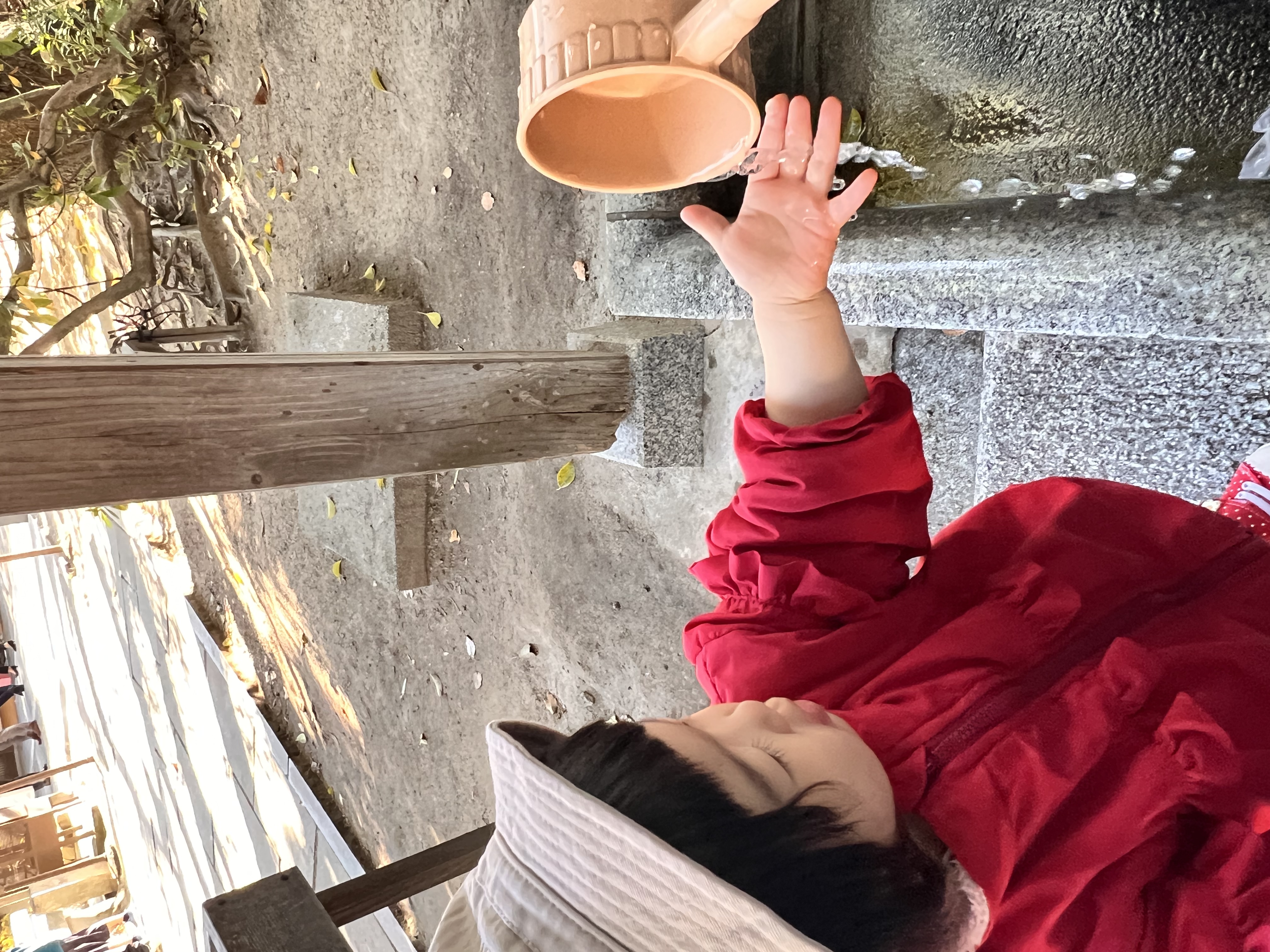 いつもは境内の中を見て怖がるお友達も今日はたくさんの参拝客の方々がいて心強く✨手をしっかりと合わせてお参りできました😊