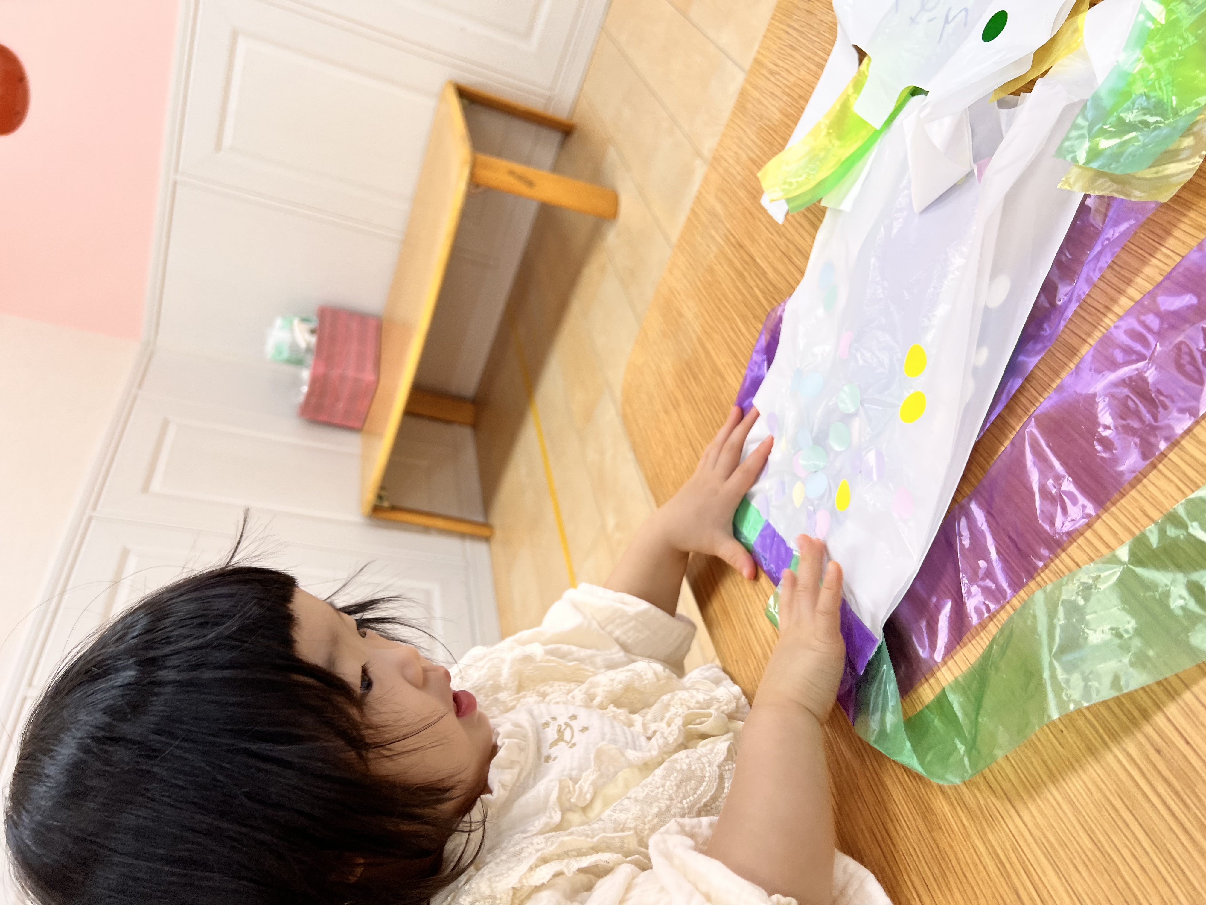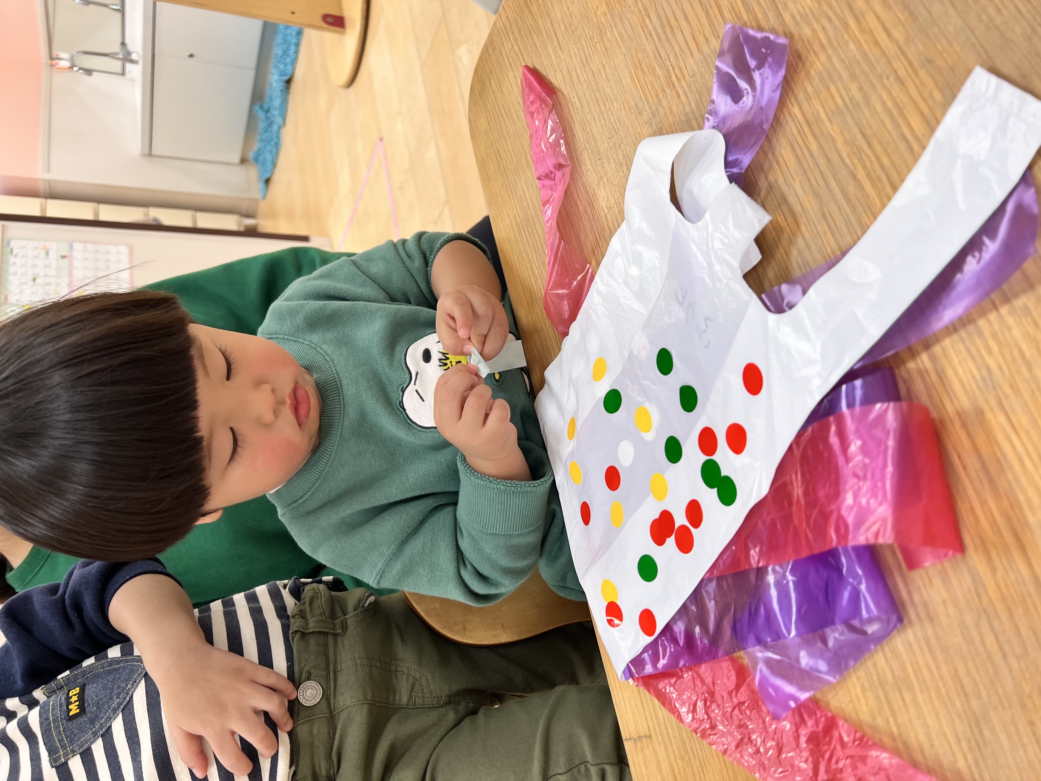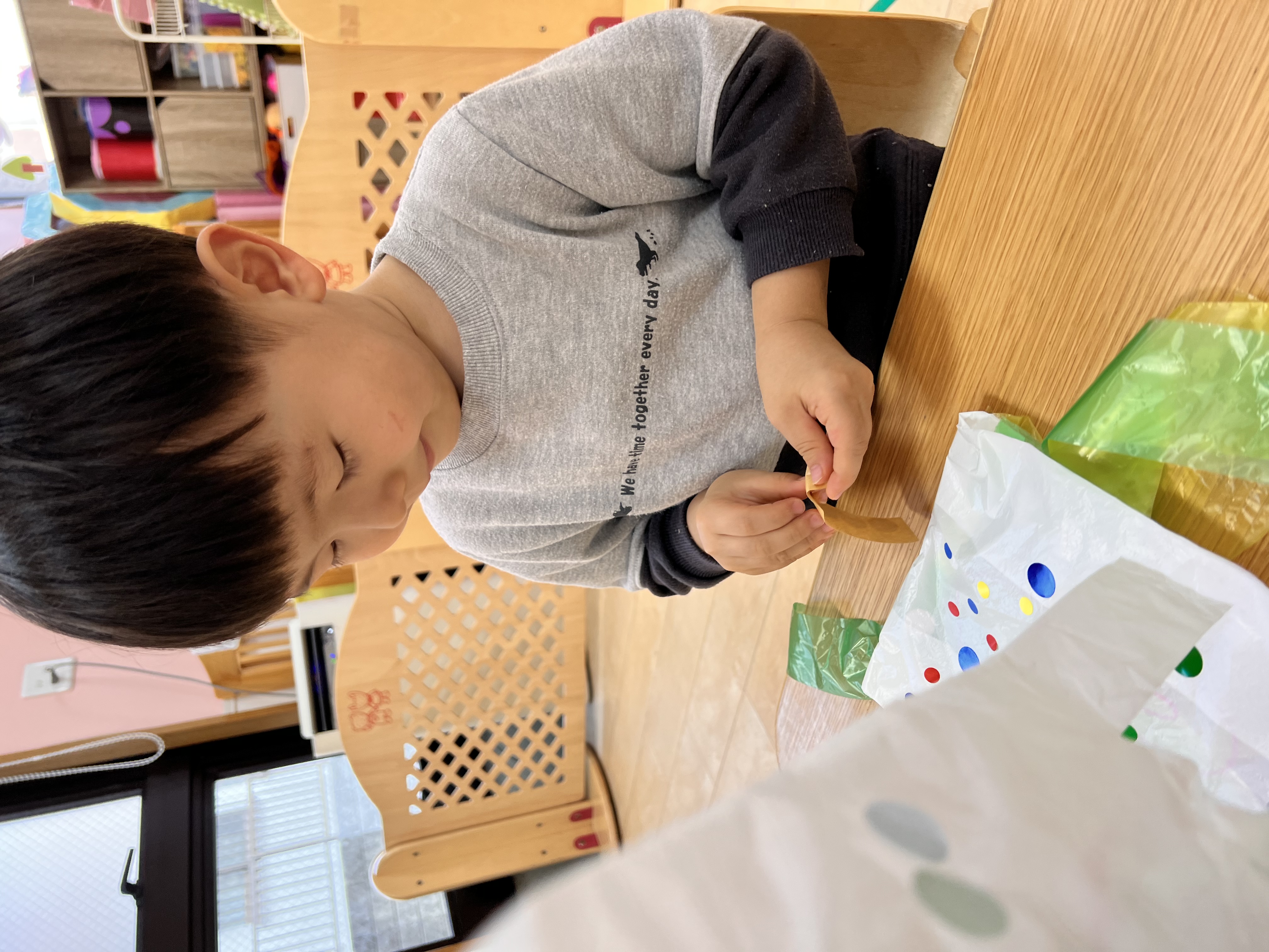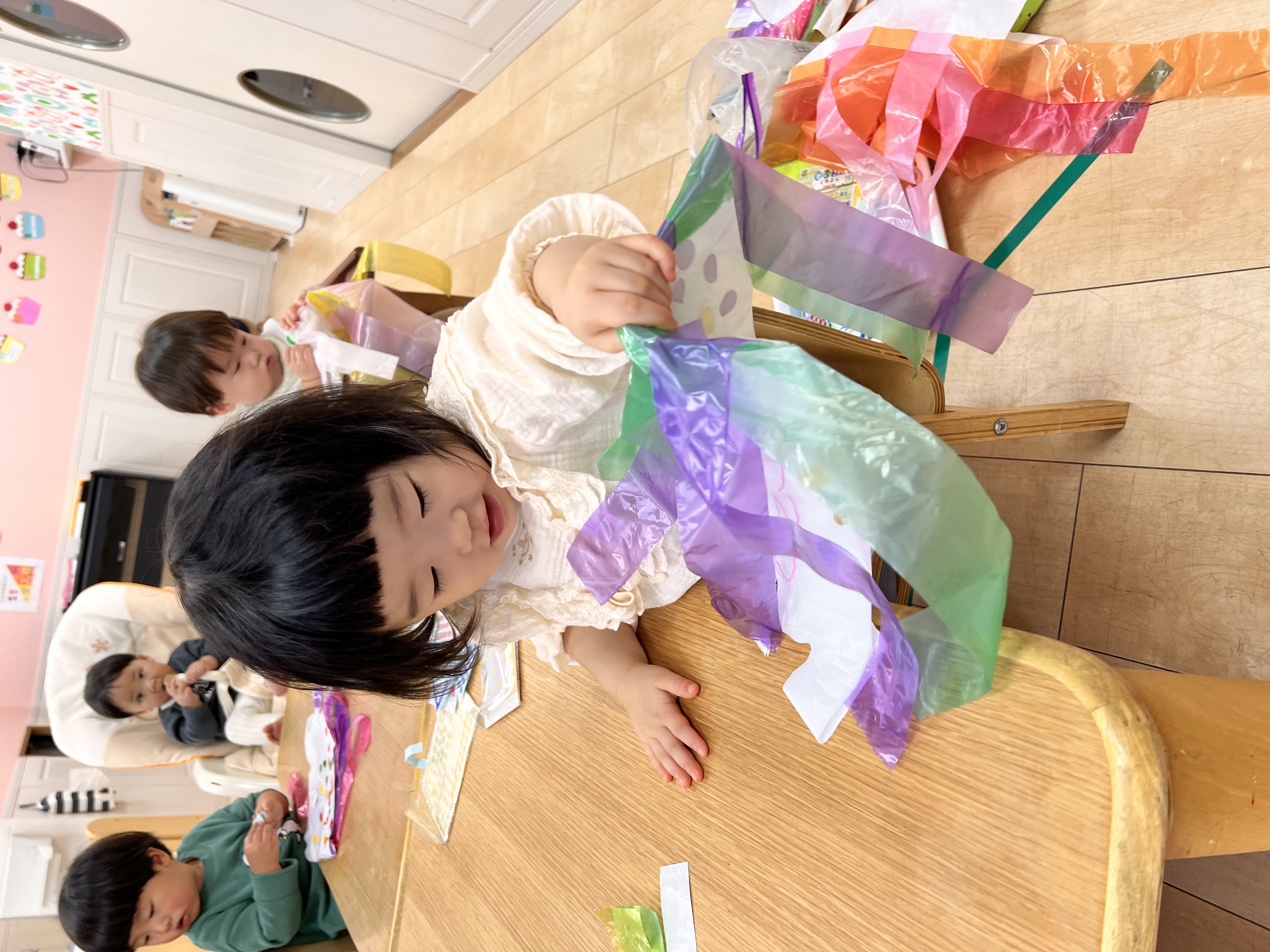 前の日に凧揚げを先生とした事を覚えてるお友達は作り終わるとすぐに「ヒラヒラー♫」とお部屋でプチ凧揚げを楽しんでました♫
