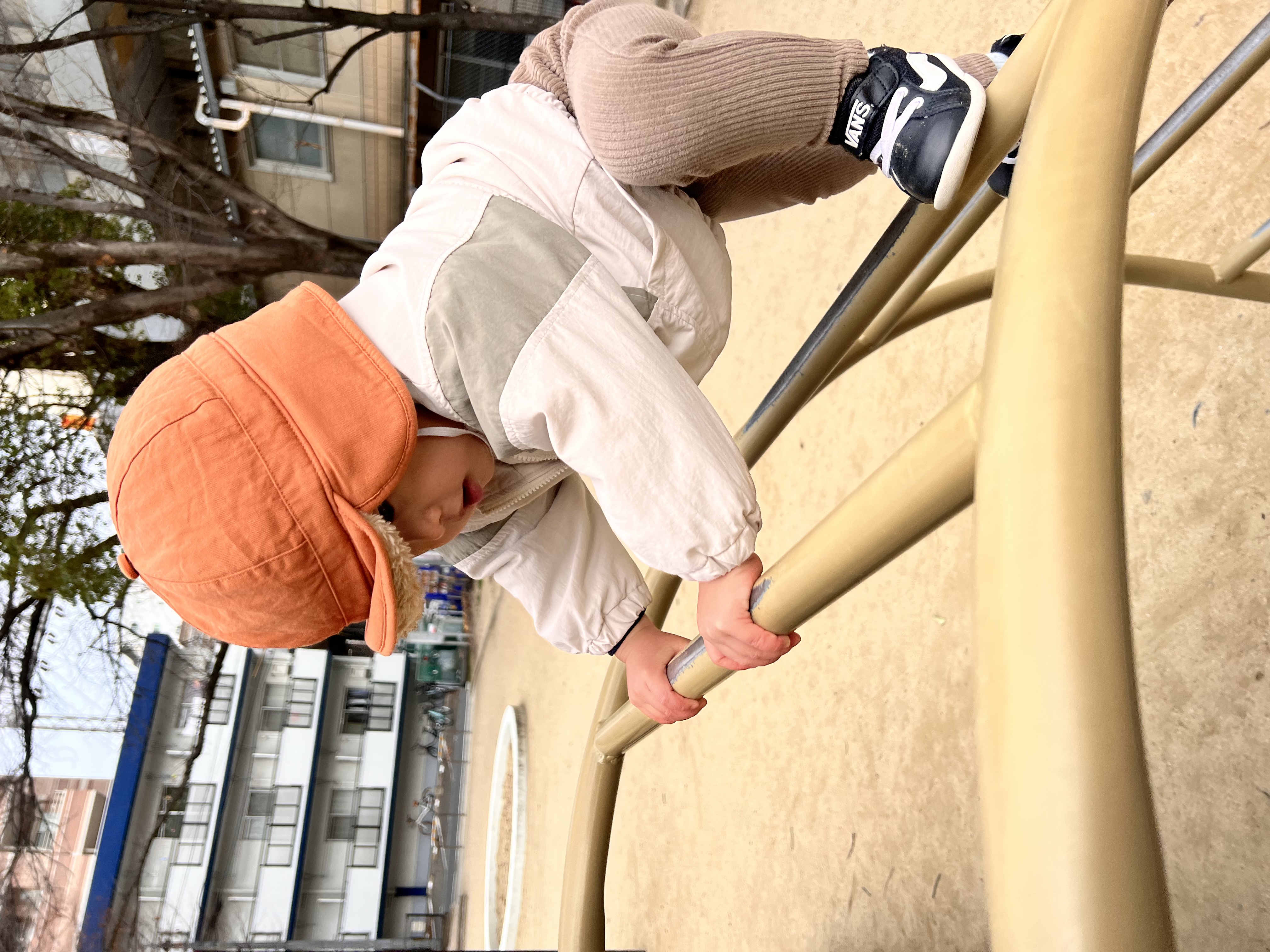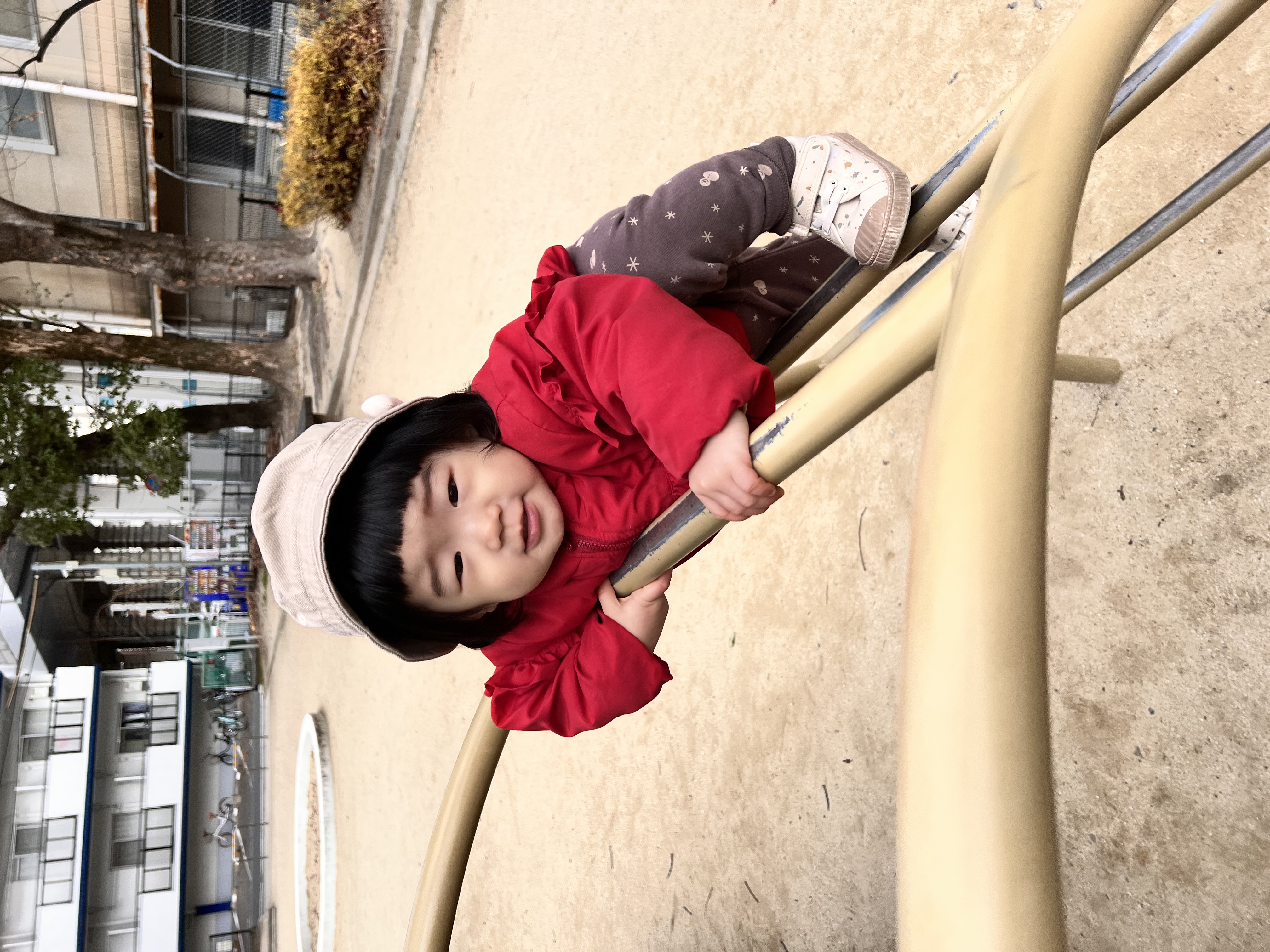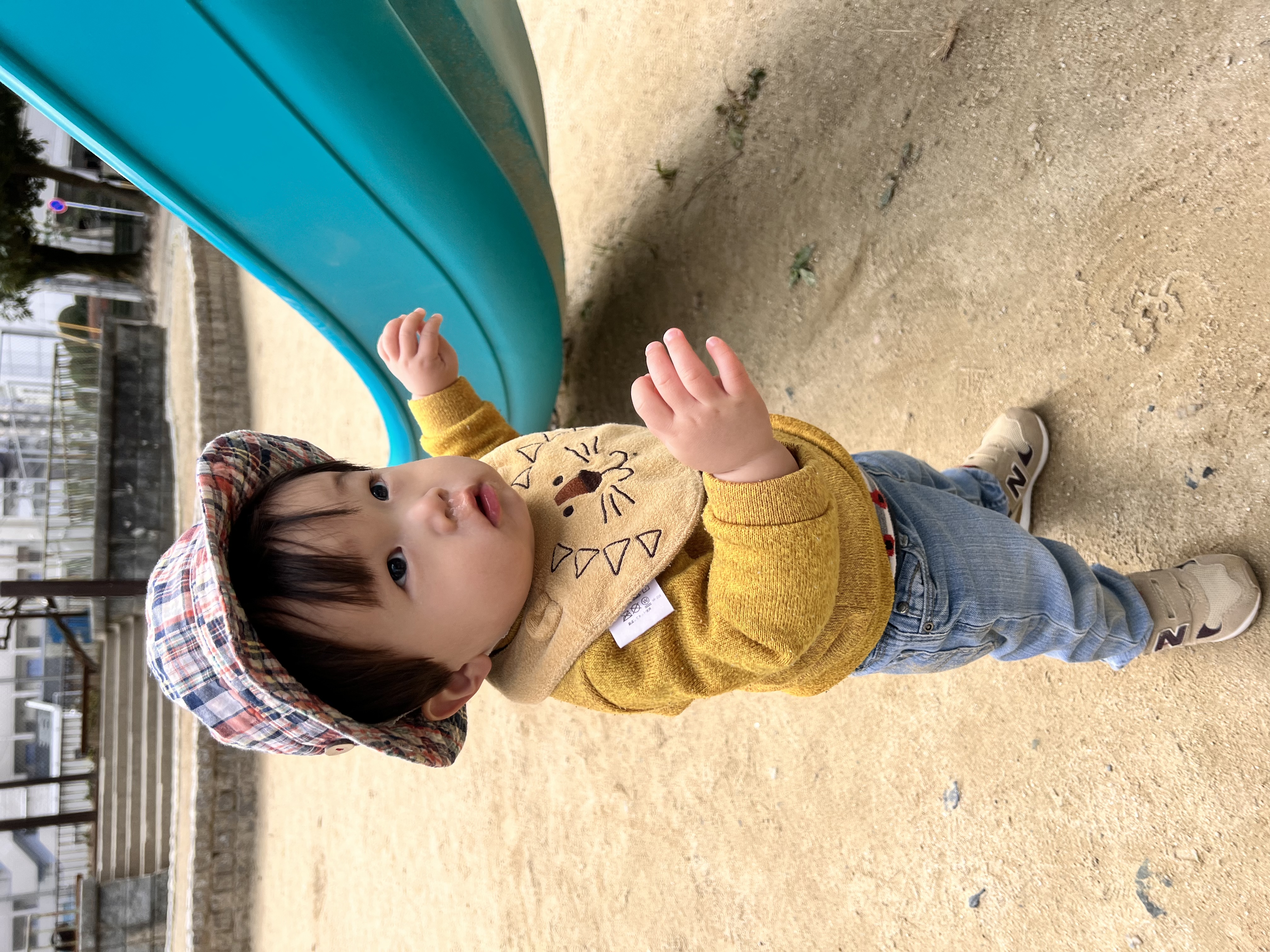 近くの公園に行き、滑り台や太鼓橋、2歳児さんは先生とのおいかけっこを楽しみました😊