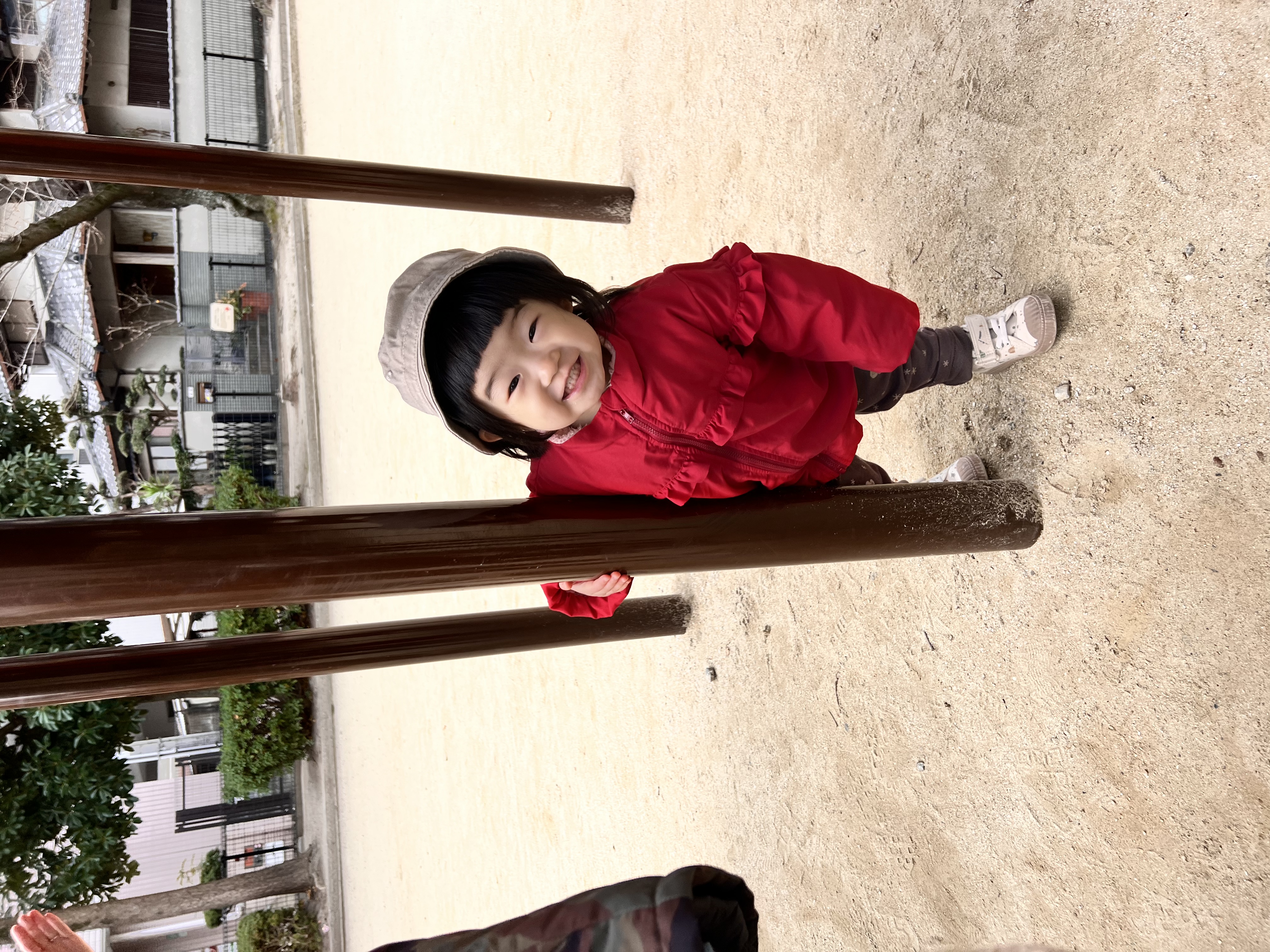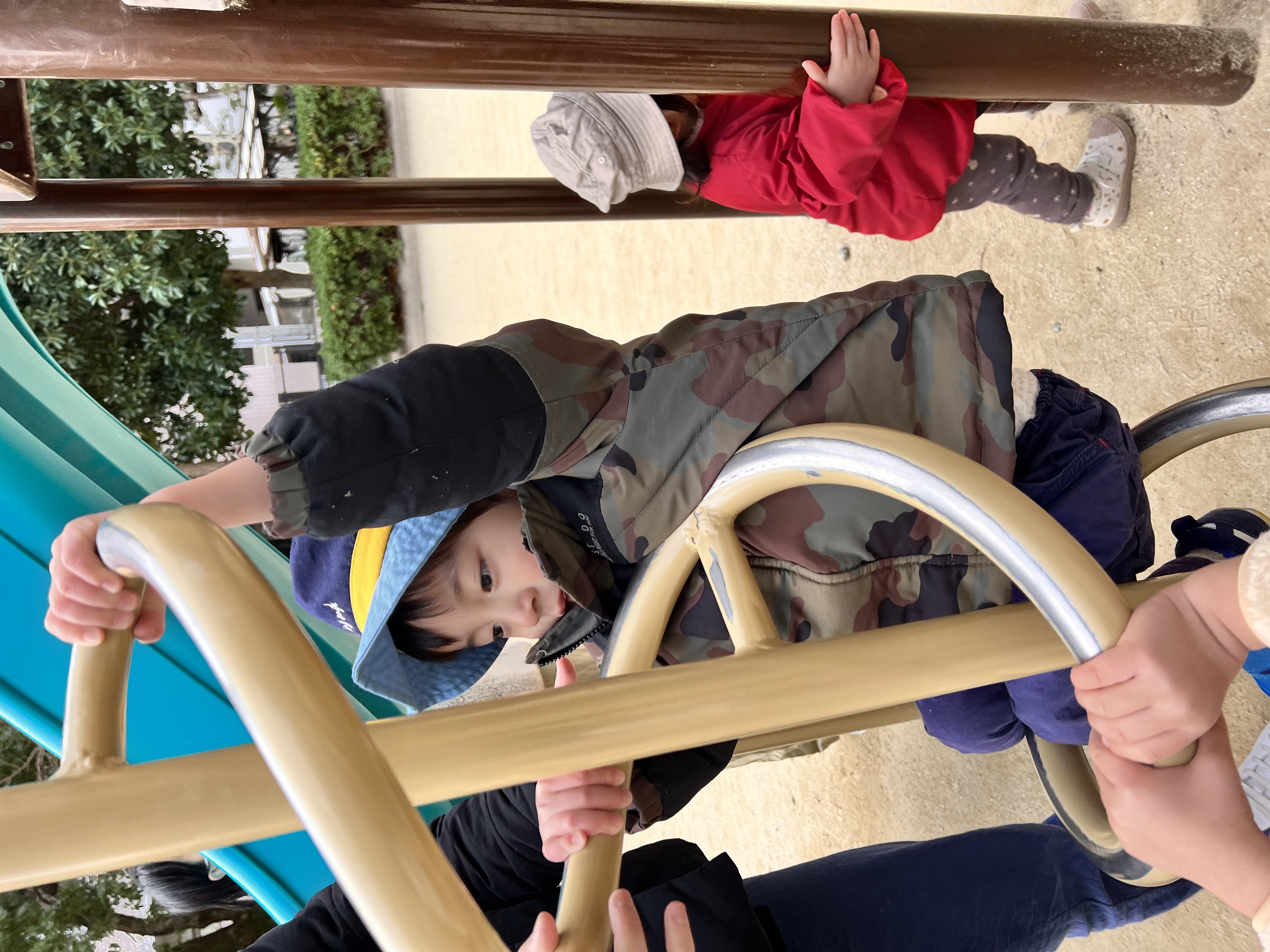 チャレンジ精神もモリモリ✨途中で怖い…と言いながら諦める事なく、先生に支えてもらいながら太鼓橋を登ったお友達😊