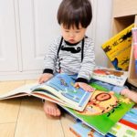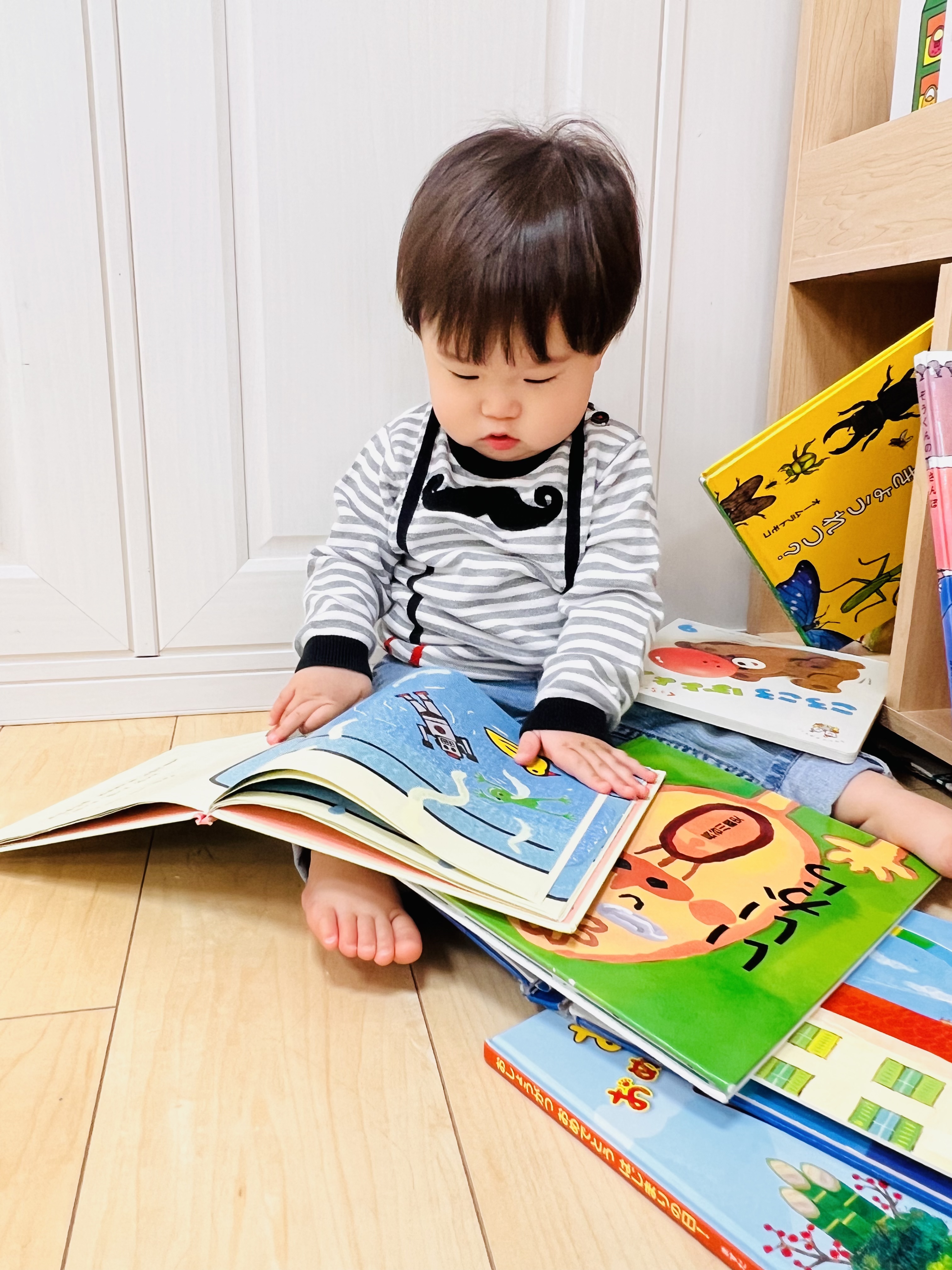 選びきれないのか絵本にまみれてるお友達を発見😁
