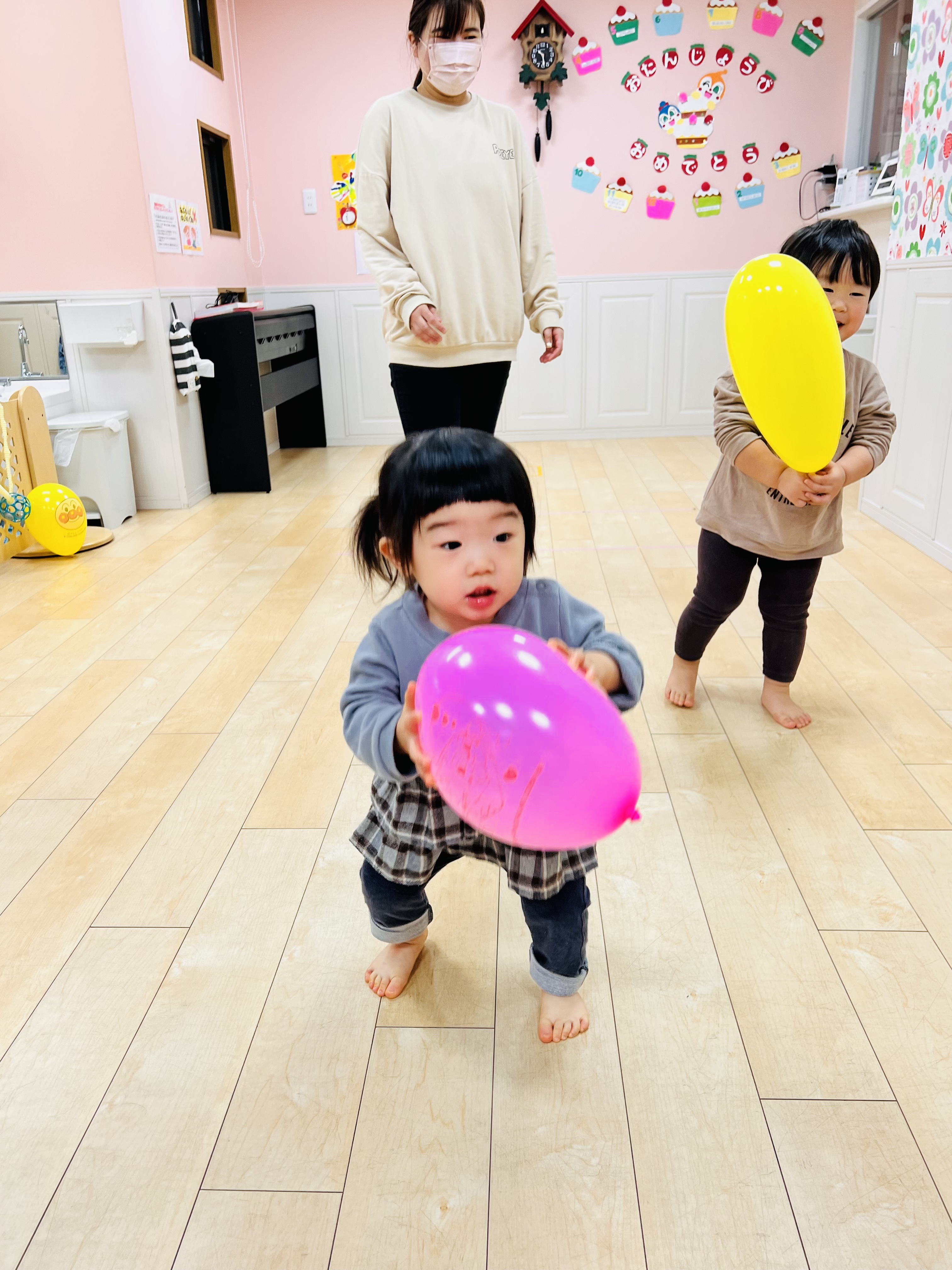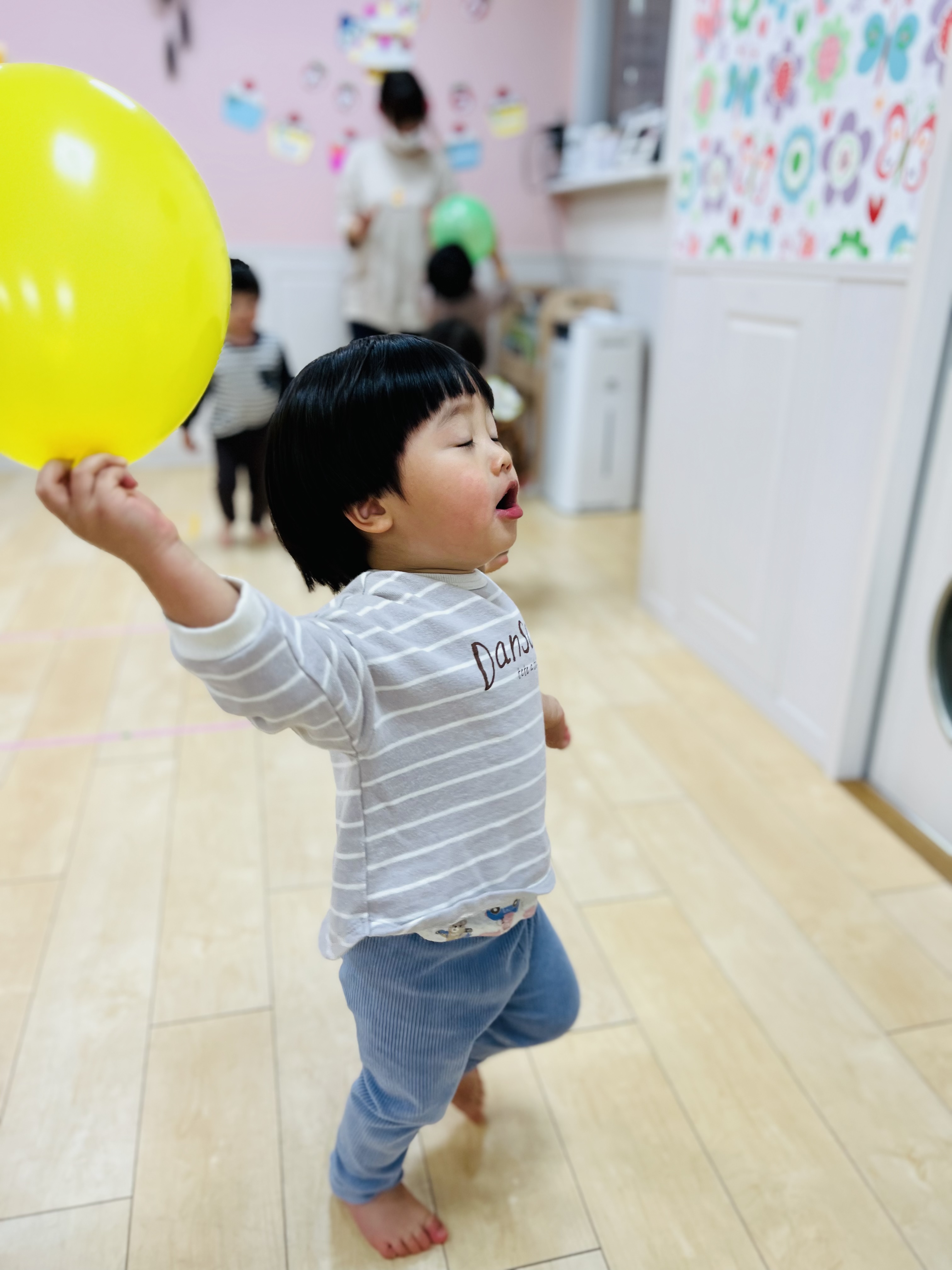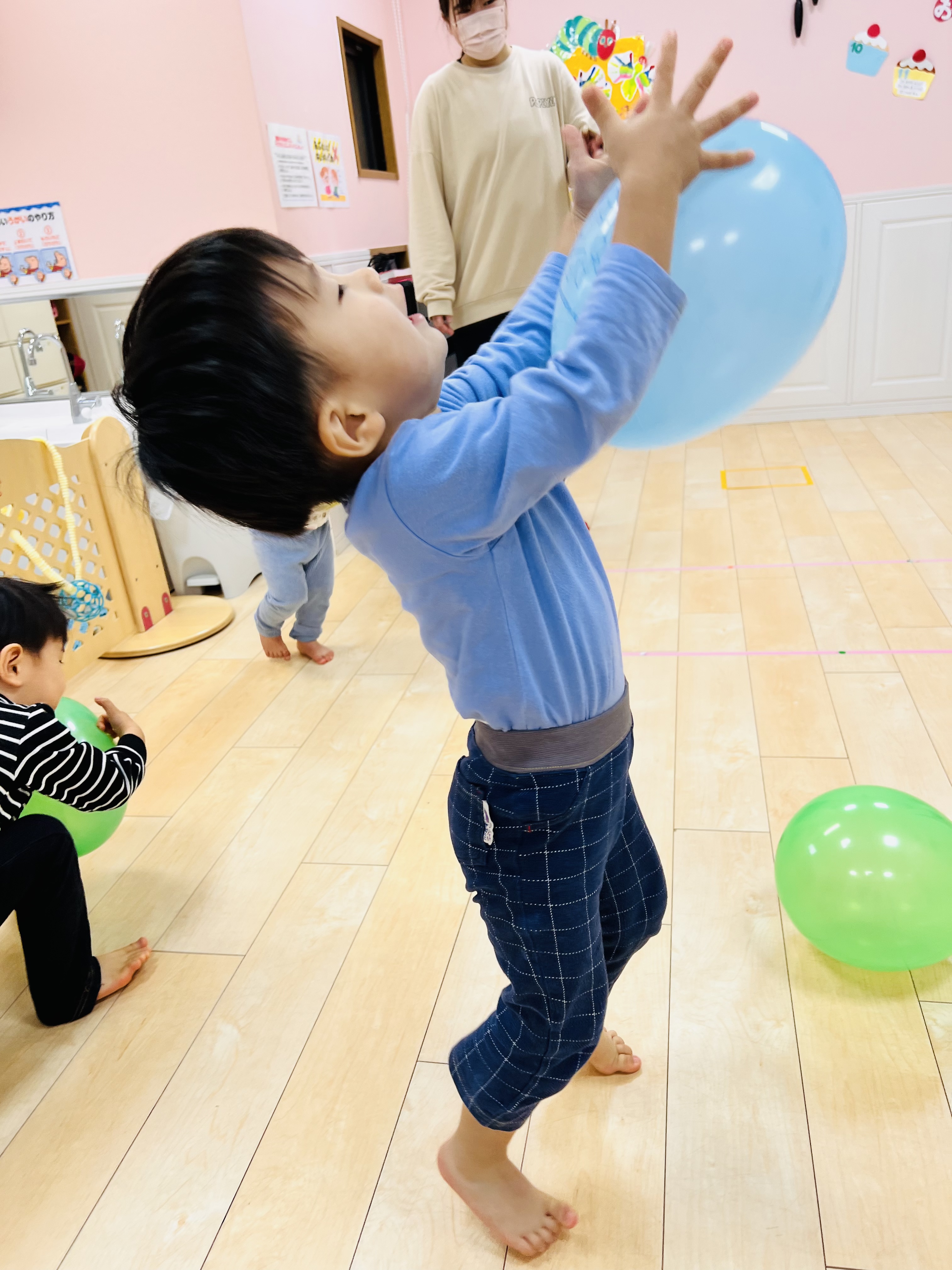 1人1つずつ風船を受け取り、お部屋でポーンと遊びました♫