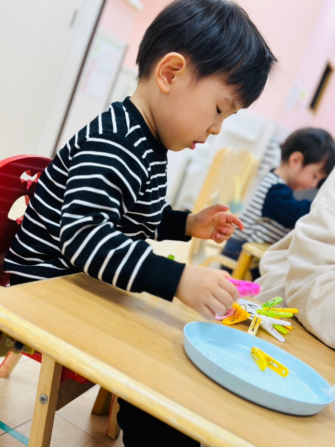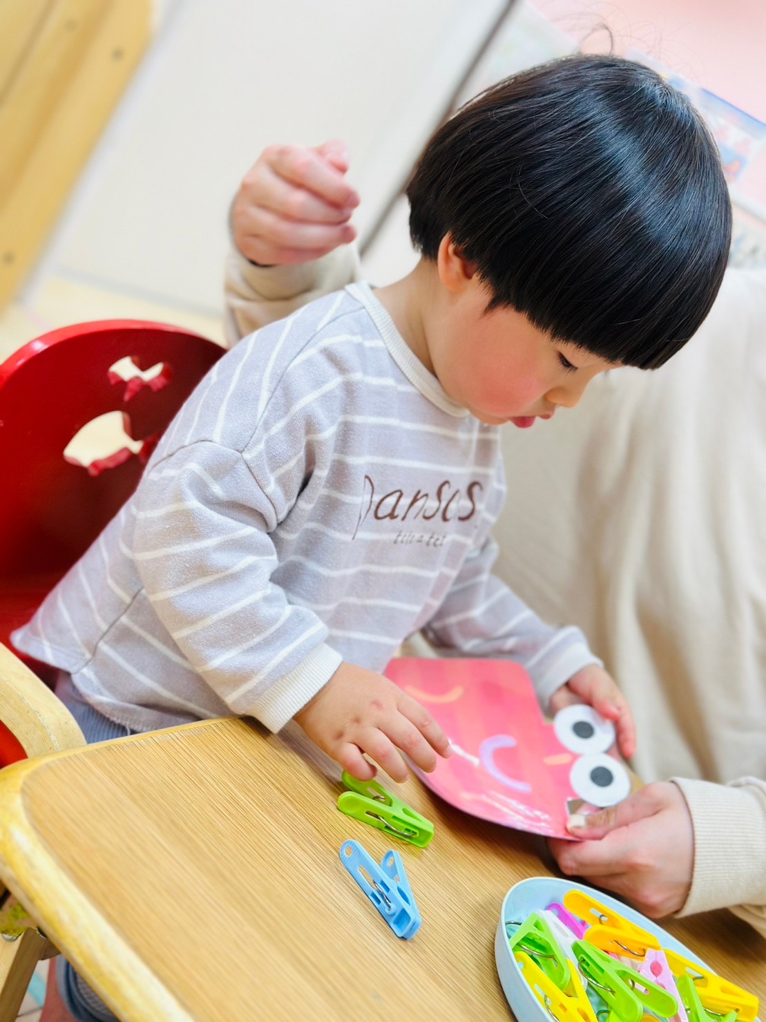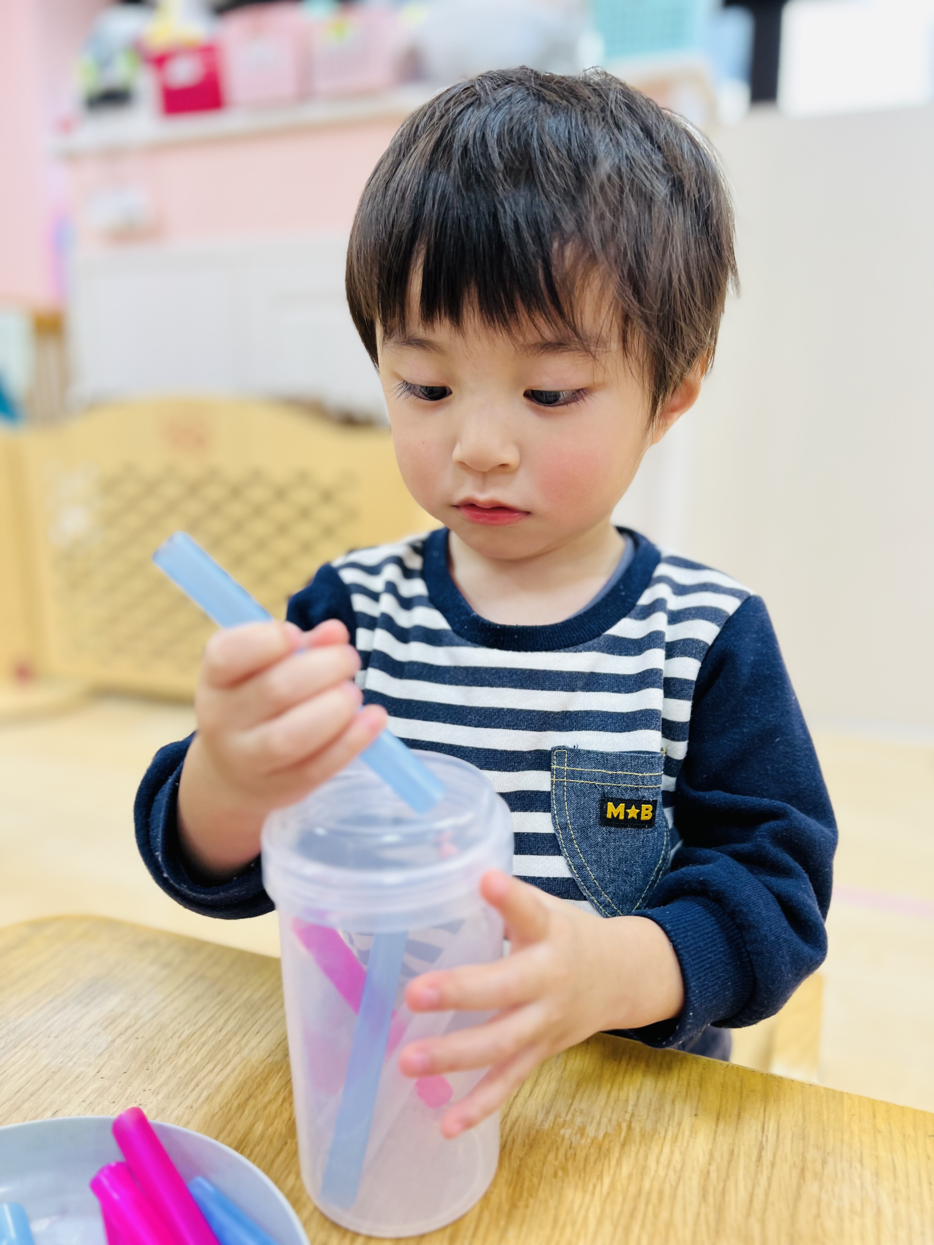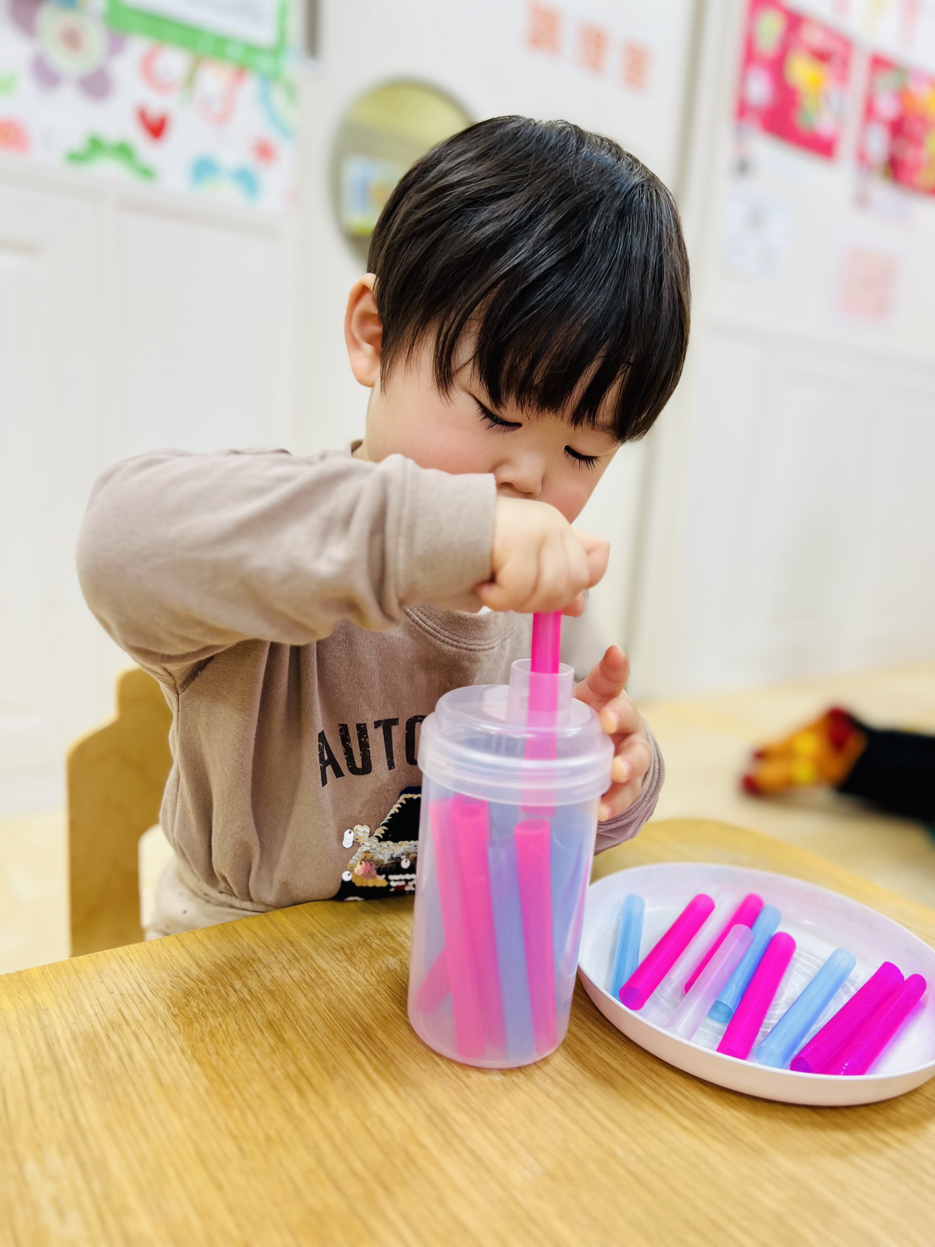 興味のあるものがはっきりと分かり始めたり、お友達がしてる遊びが気になり挑戦してみたり😊どのコーナーでも集中する姿がたくさん見られるようになりました✨