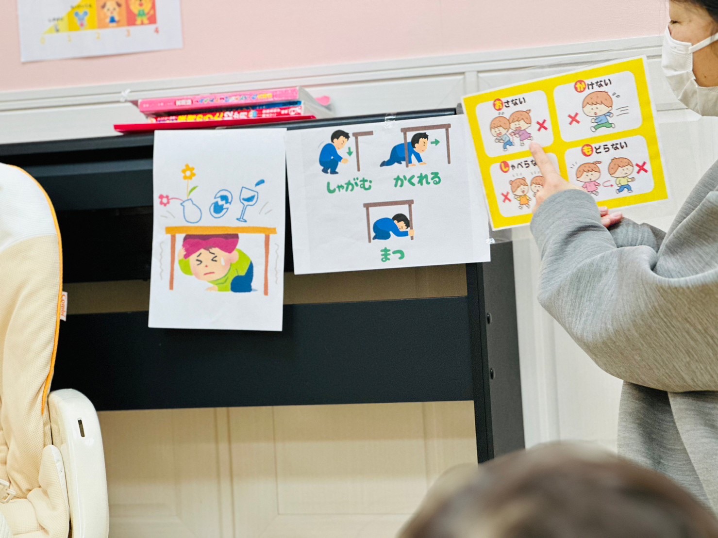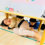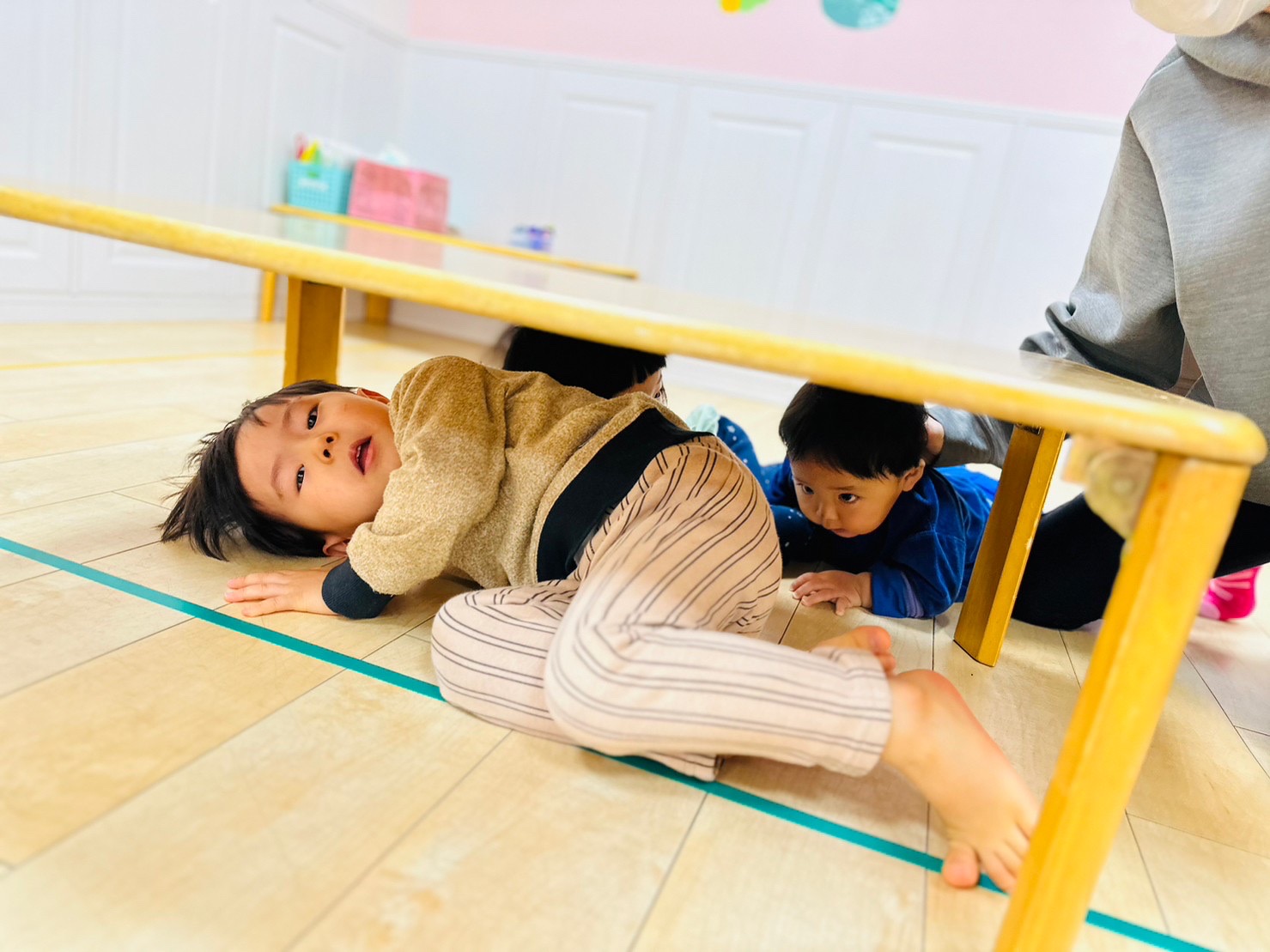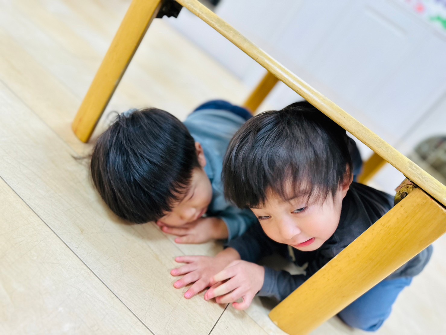 先生のお話を聞いてしっかり机の下に避難できました✨