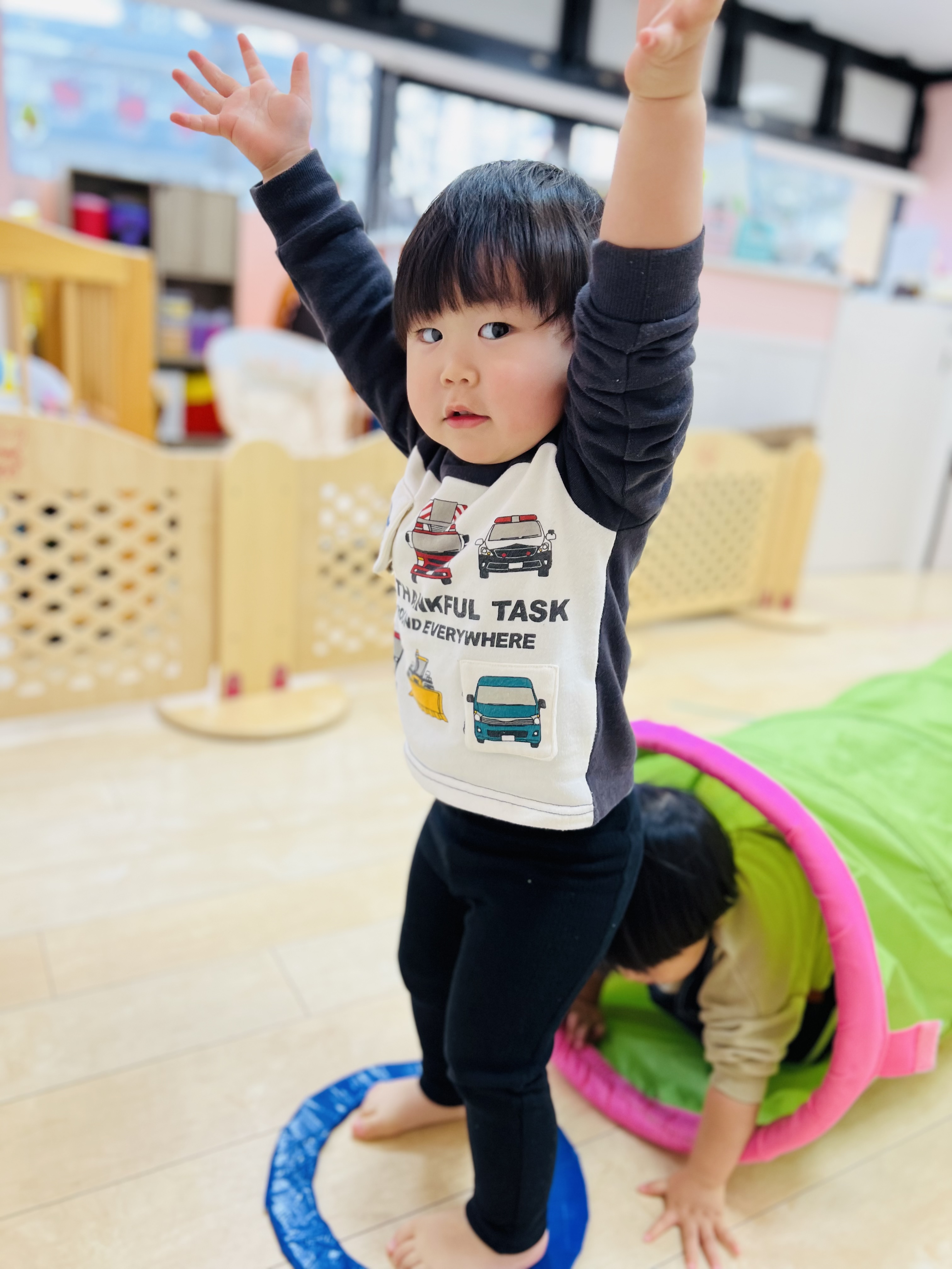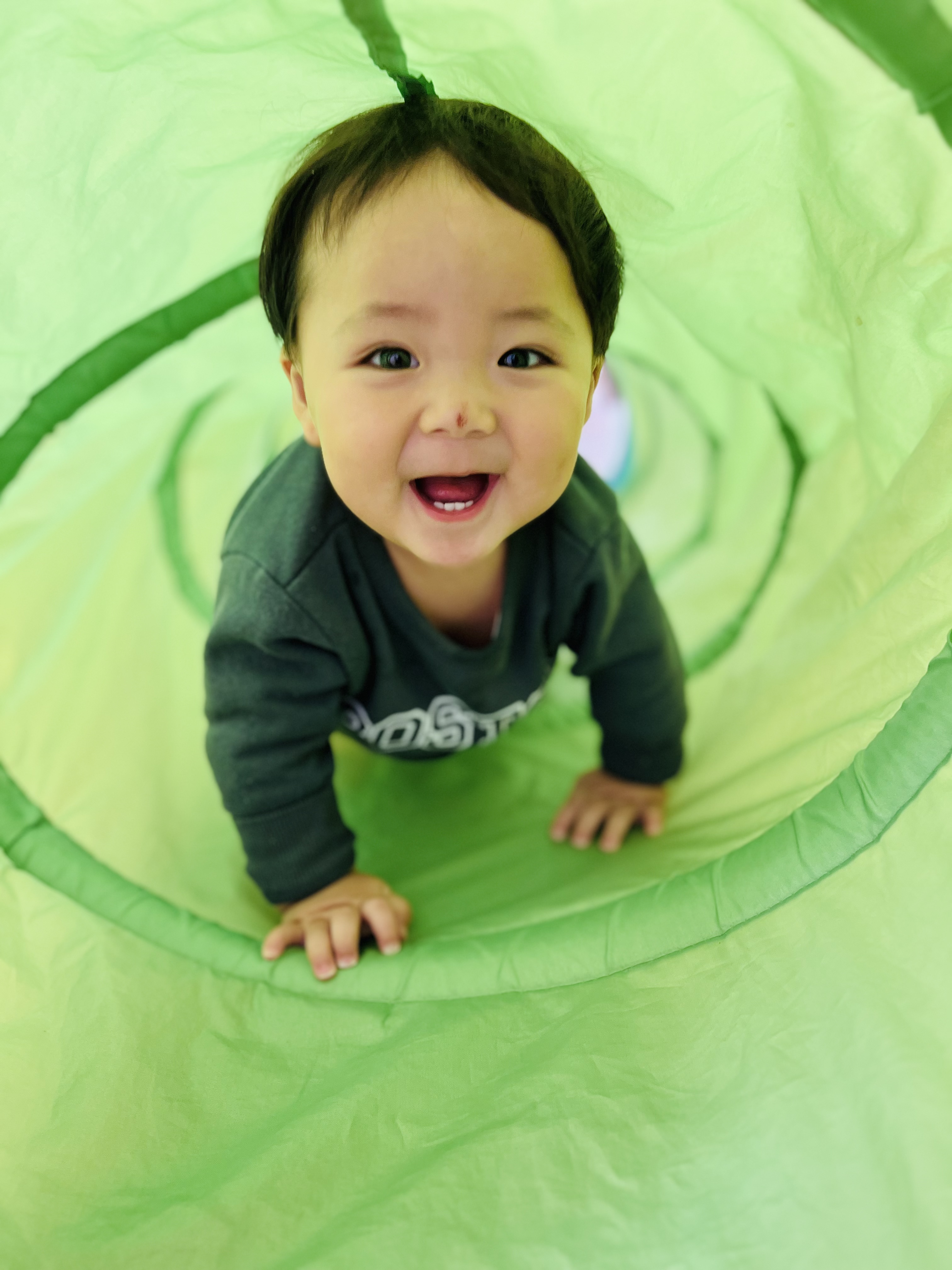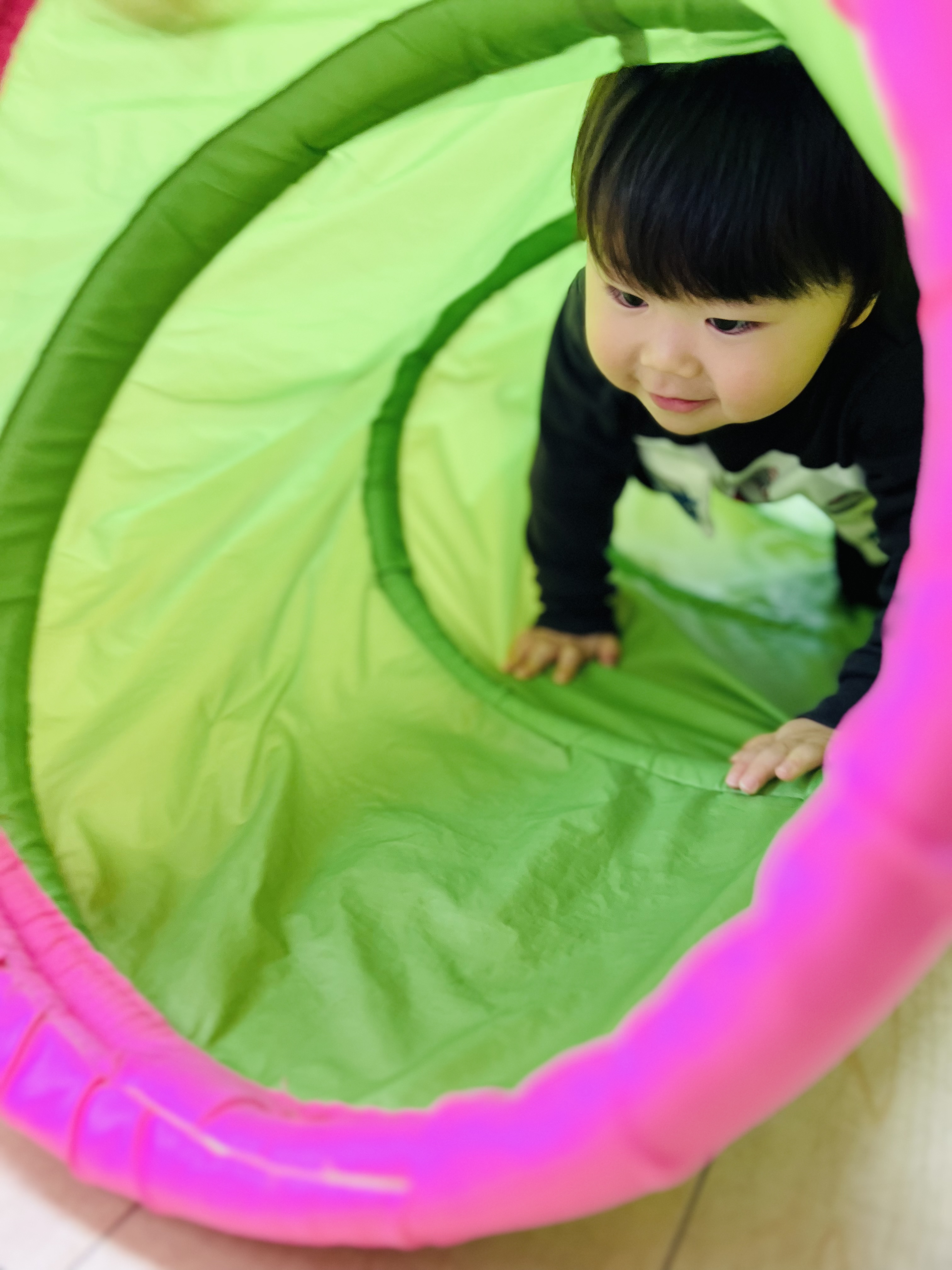 ドキドキしたトンネルもゴールに先生がいるのに気付くと張り切ってくぐれました😊