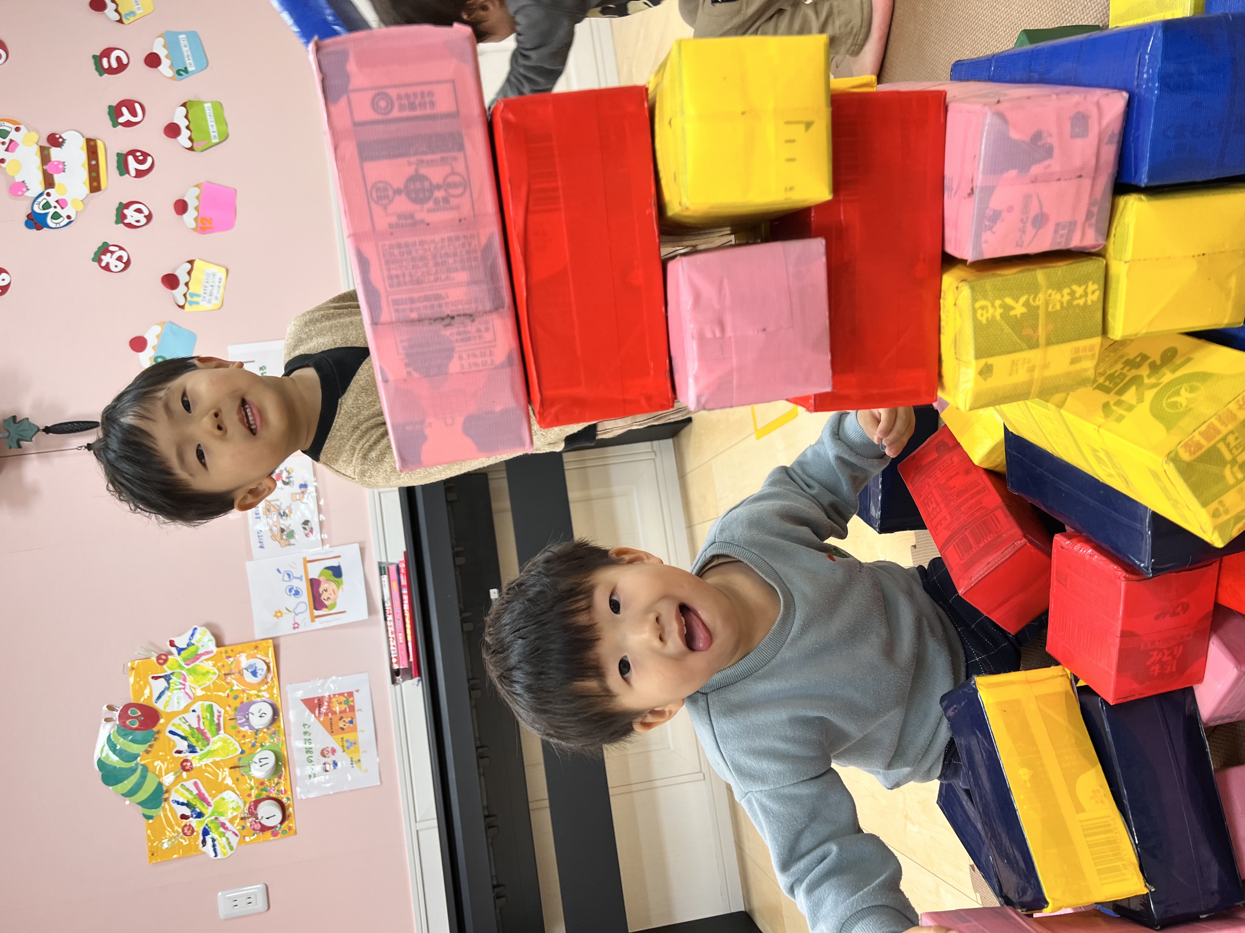 みんなで高く積み上げて…ドーンと倒すと笑いの渦でした😁