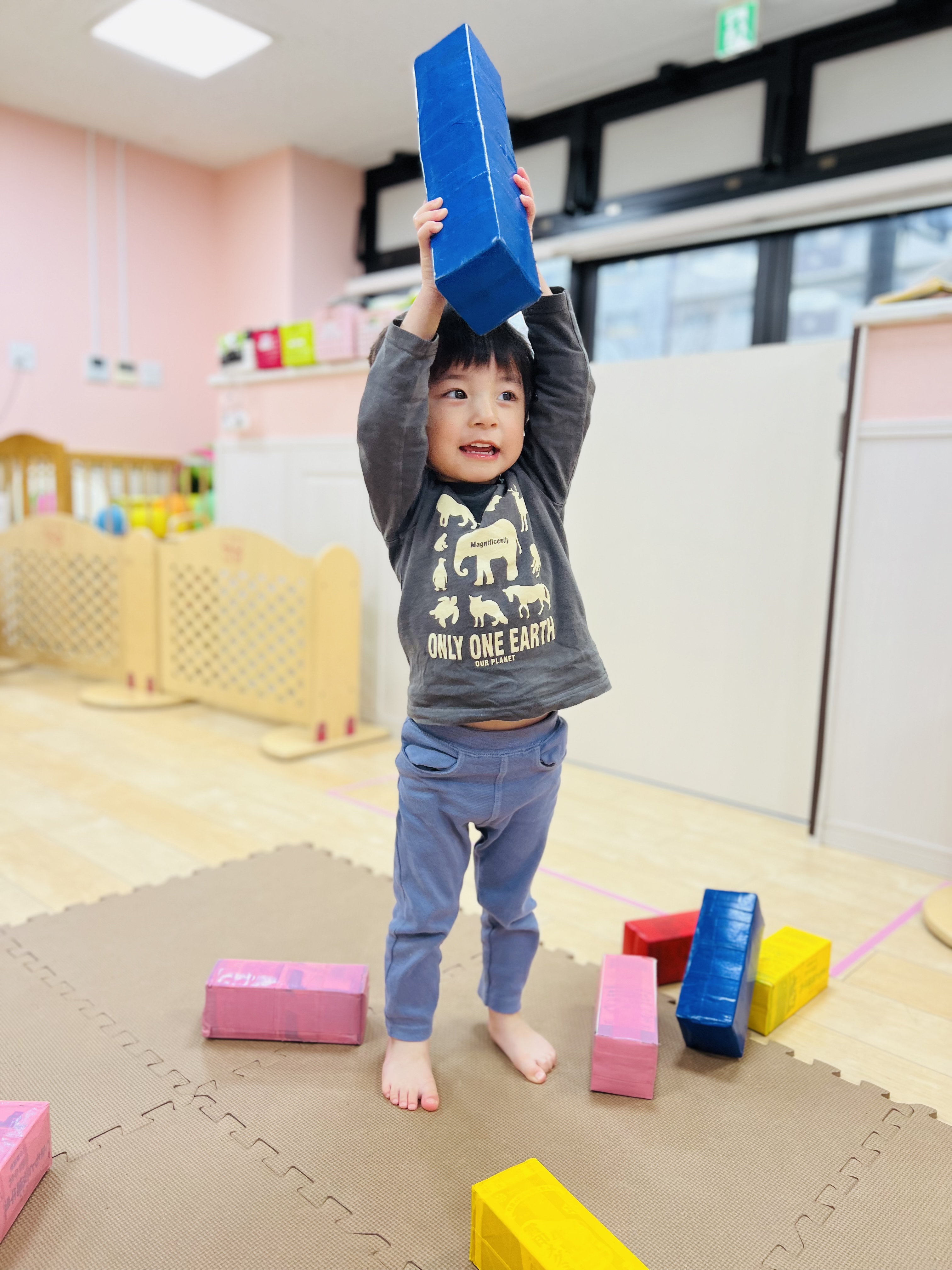 大きなベットを作ってみたり、小さな積み木を積んでみたり♫