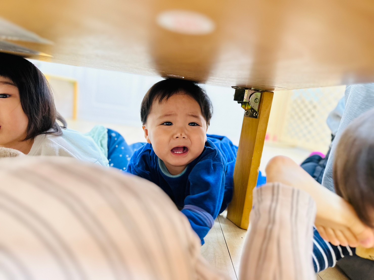 怖くて泣いてるお友達もいますが、みんなと一緒に自分を守る体勢に✨