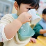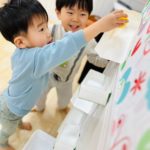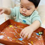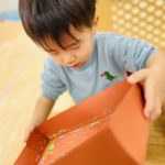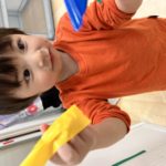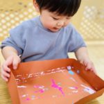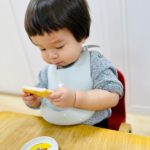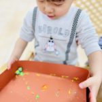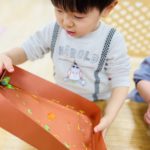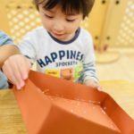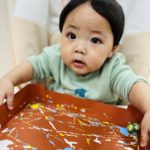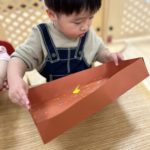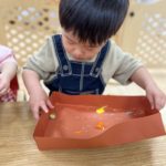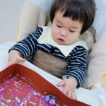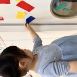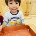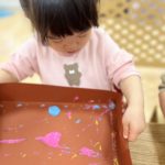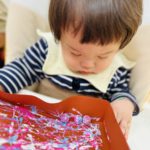 丸シールを剥がしたり貼ったり、上手になってきた0歳児さん✨