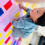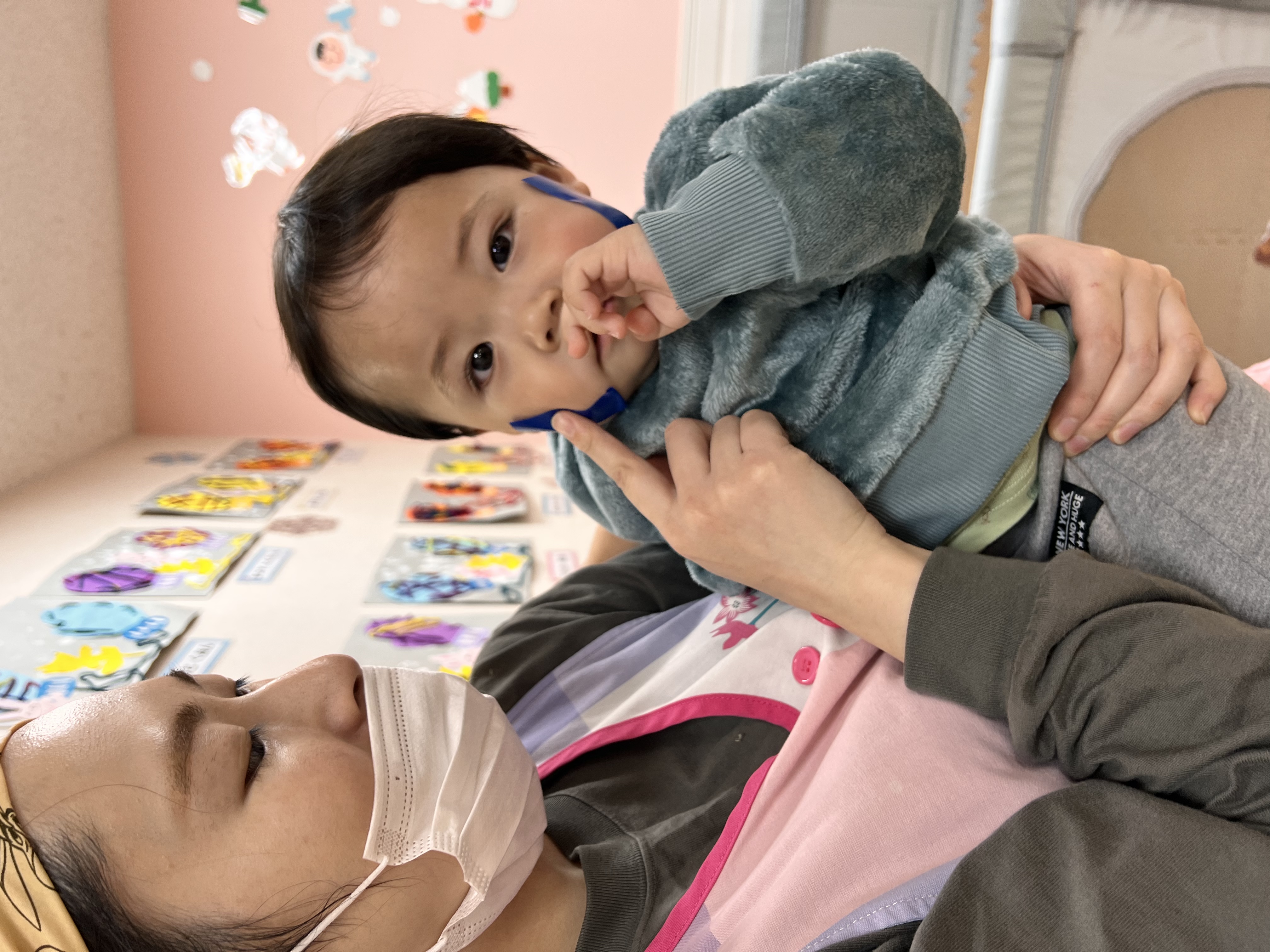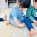 丸シールを剥がしたり貼ったり、上手になってきた0歳児さん✨