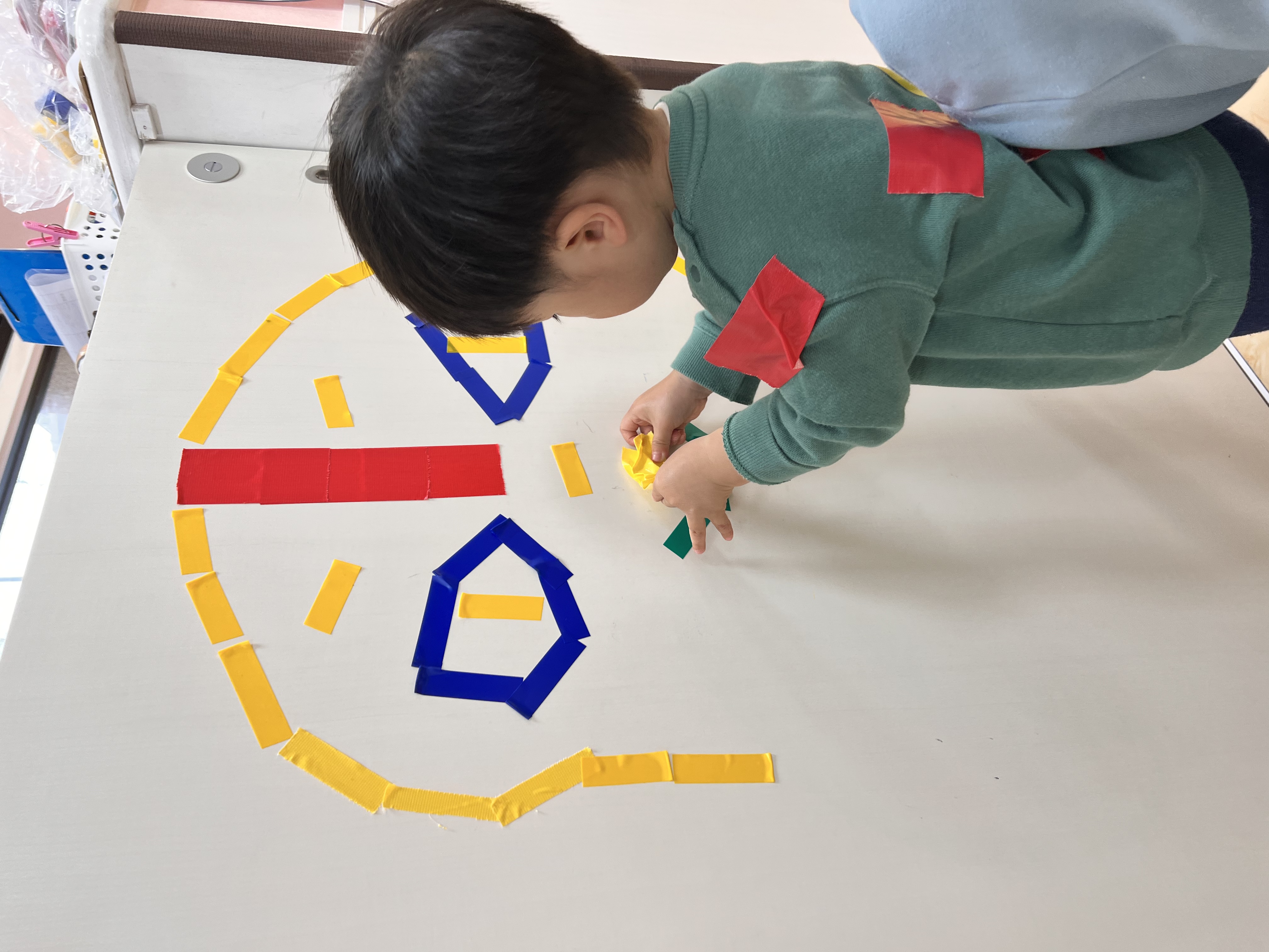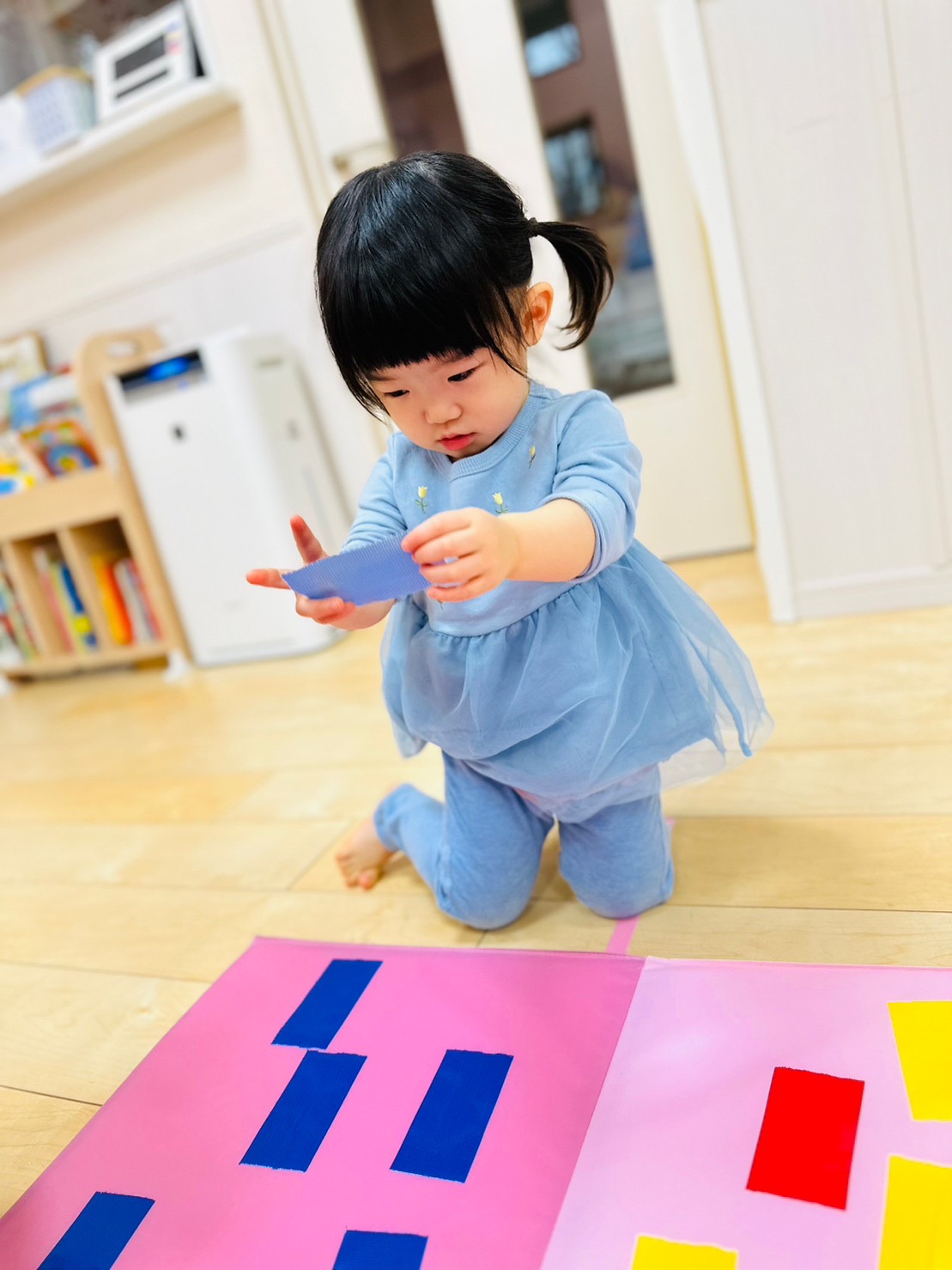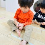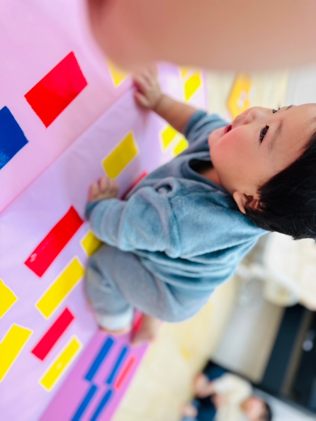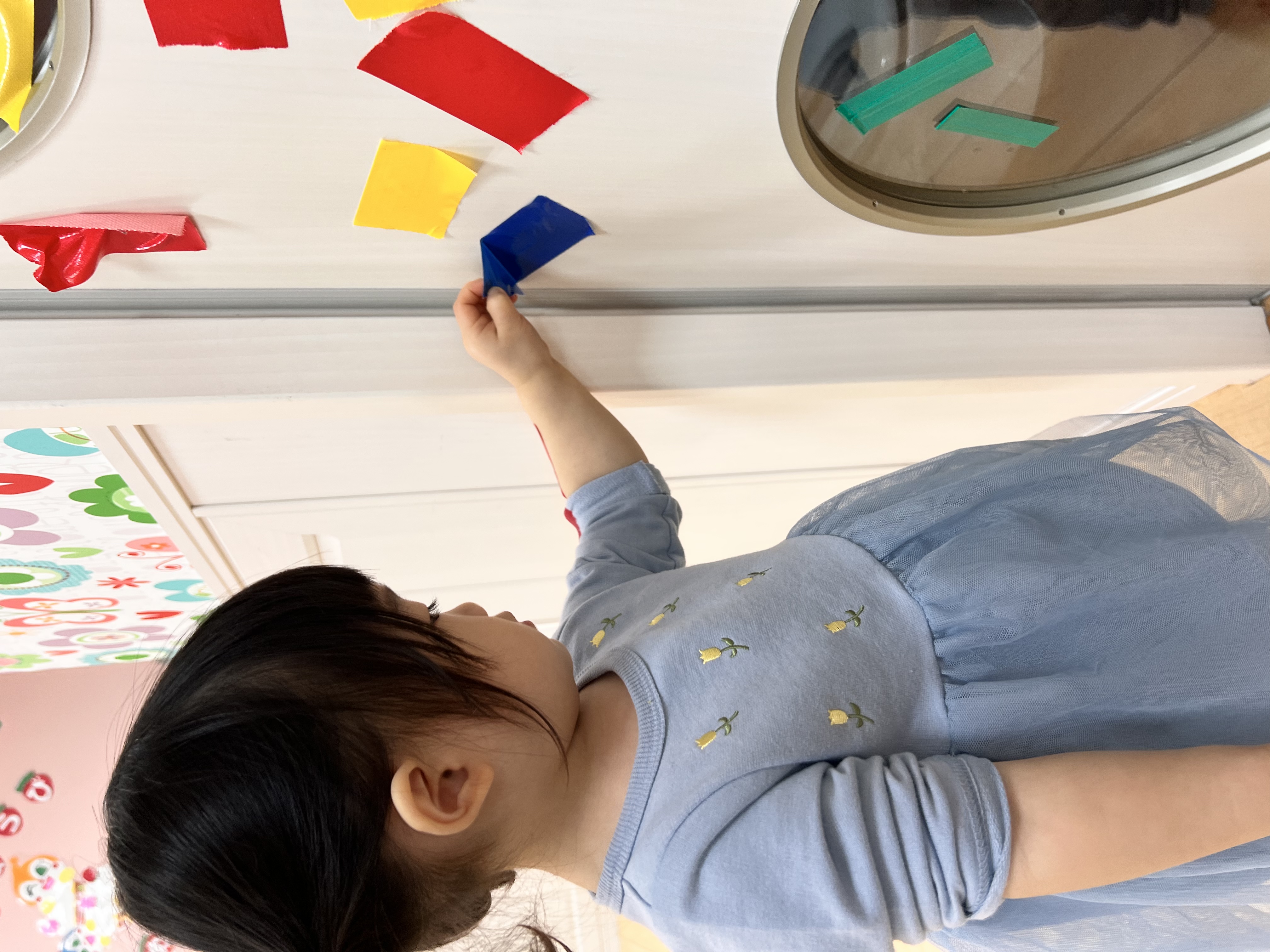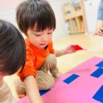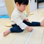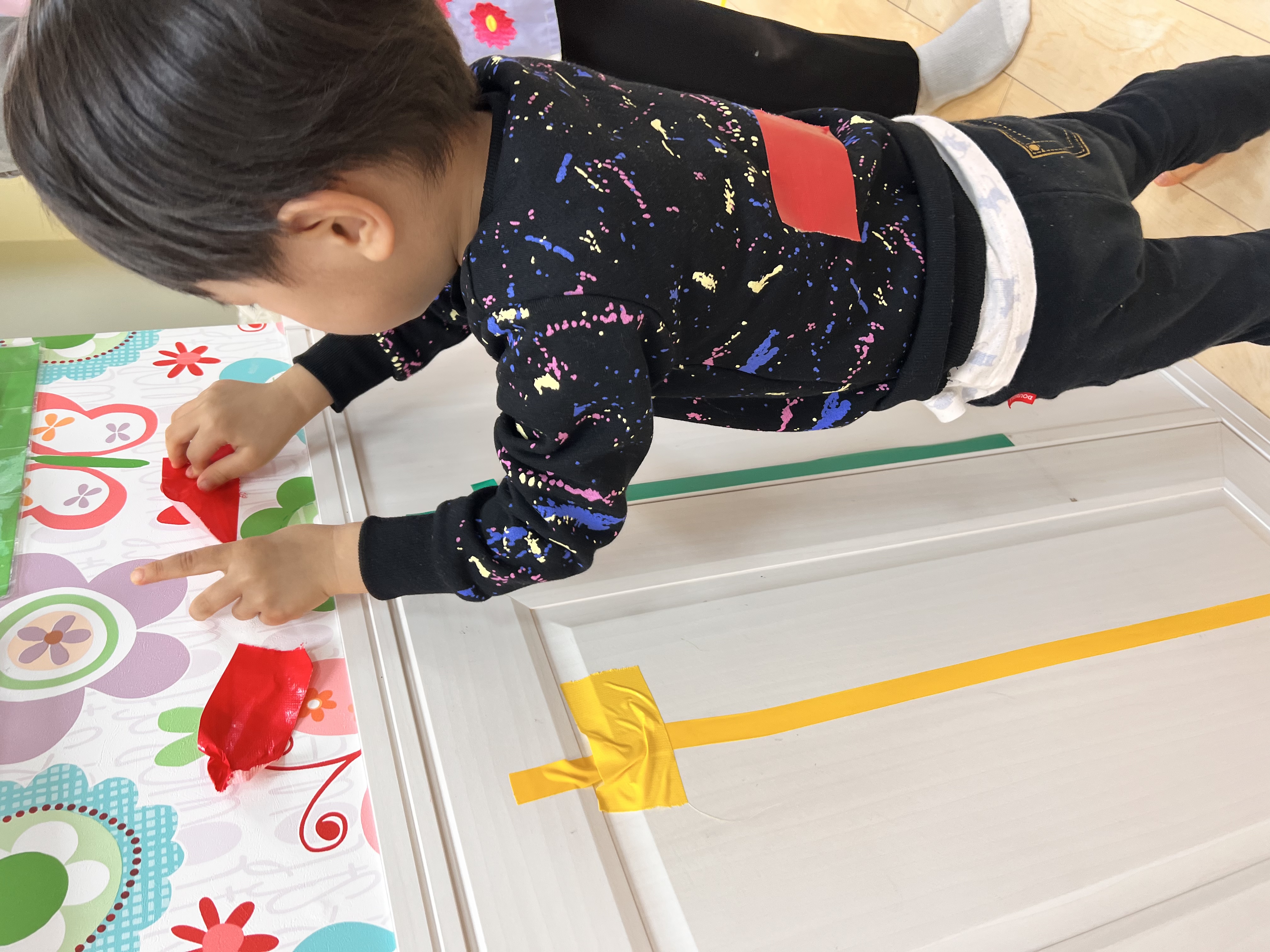 マットにもたくさんの色テープがついていて、大喜びなお友達でした😊