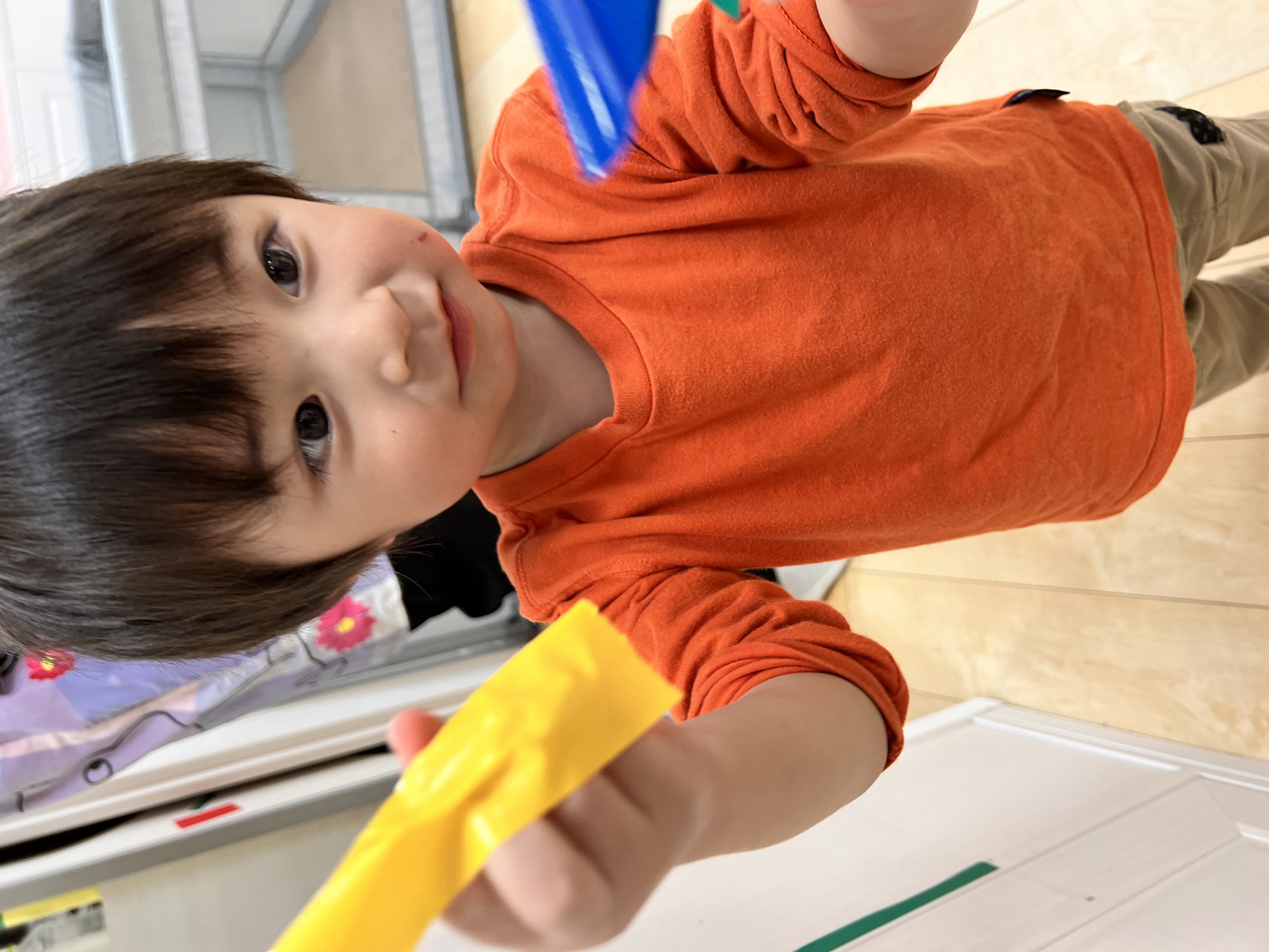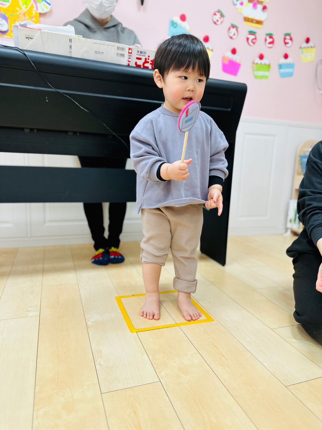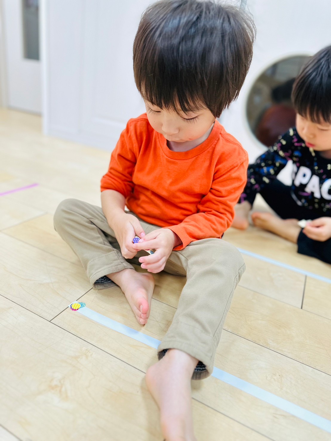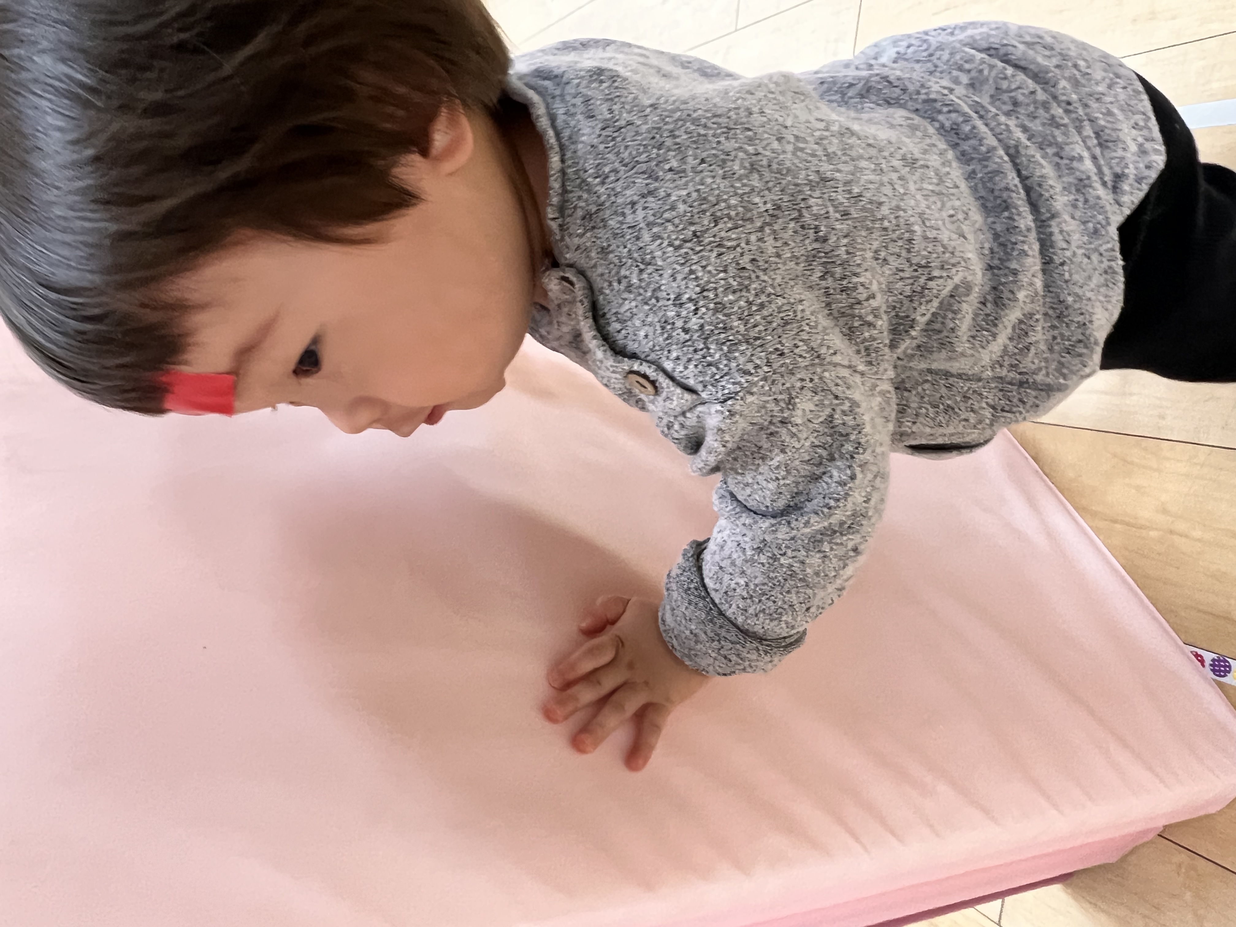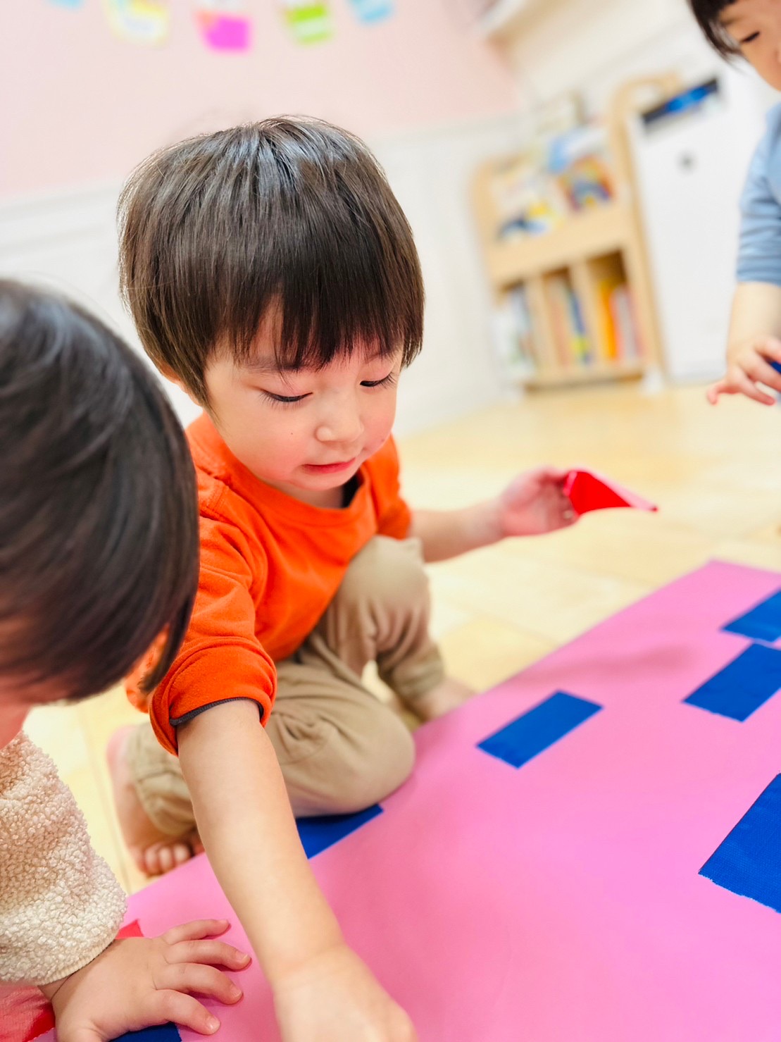 マットにもたくさんの色テープがついていて、大喜びなお友達でした😊