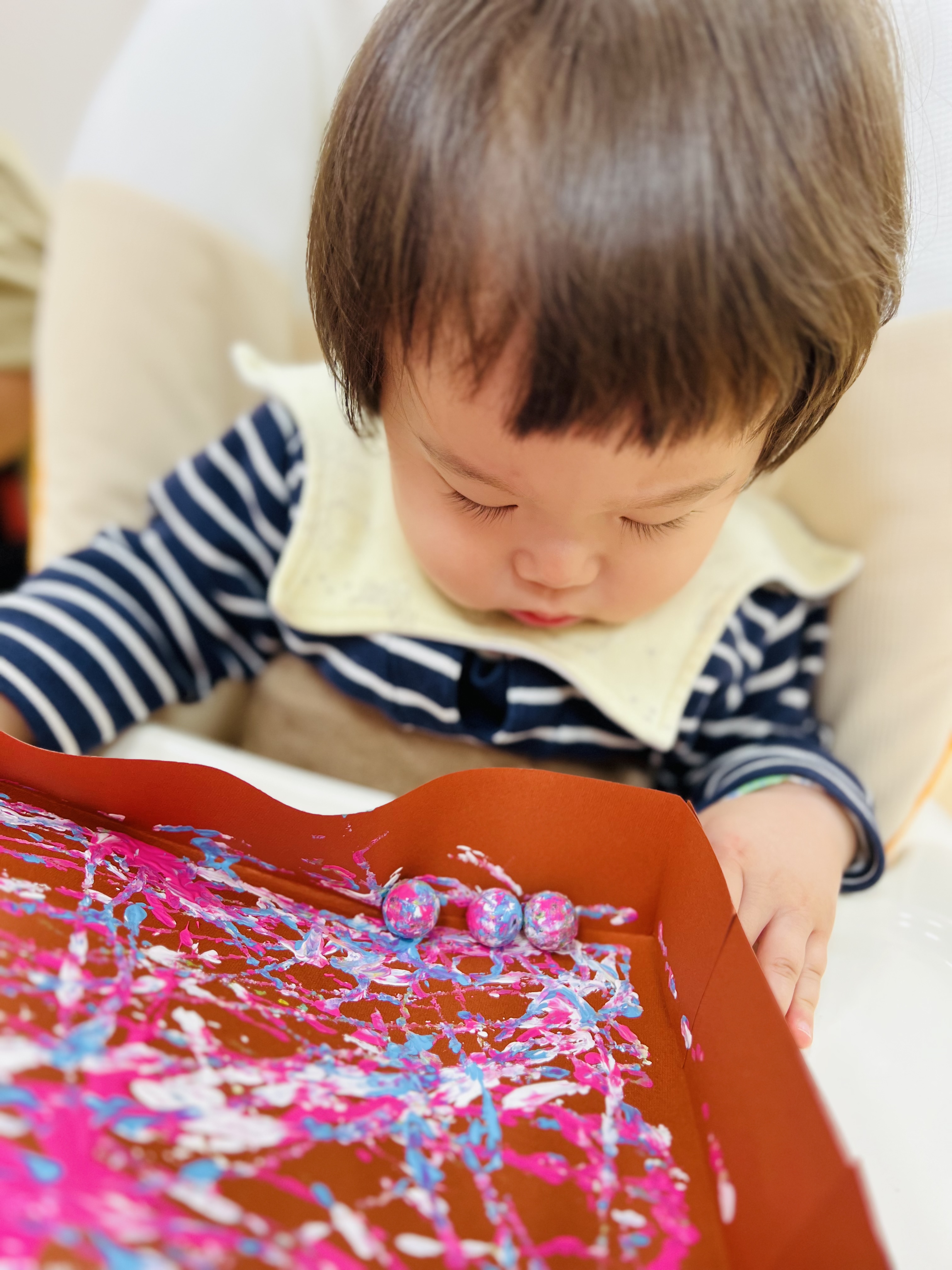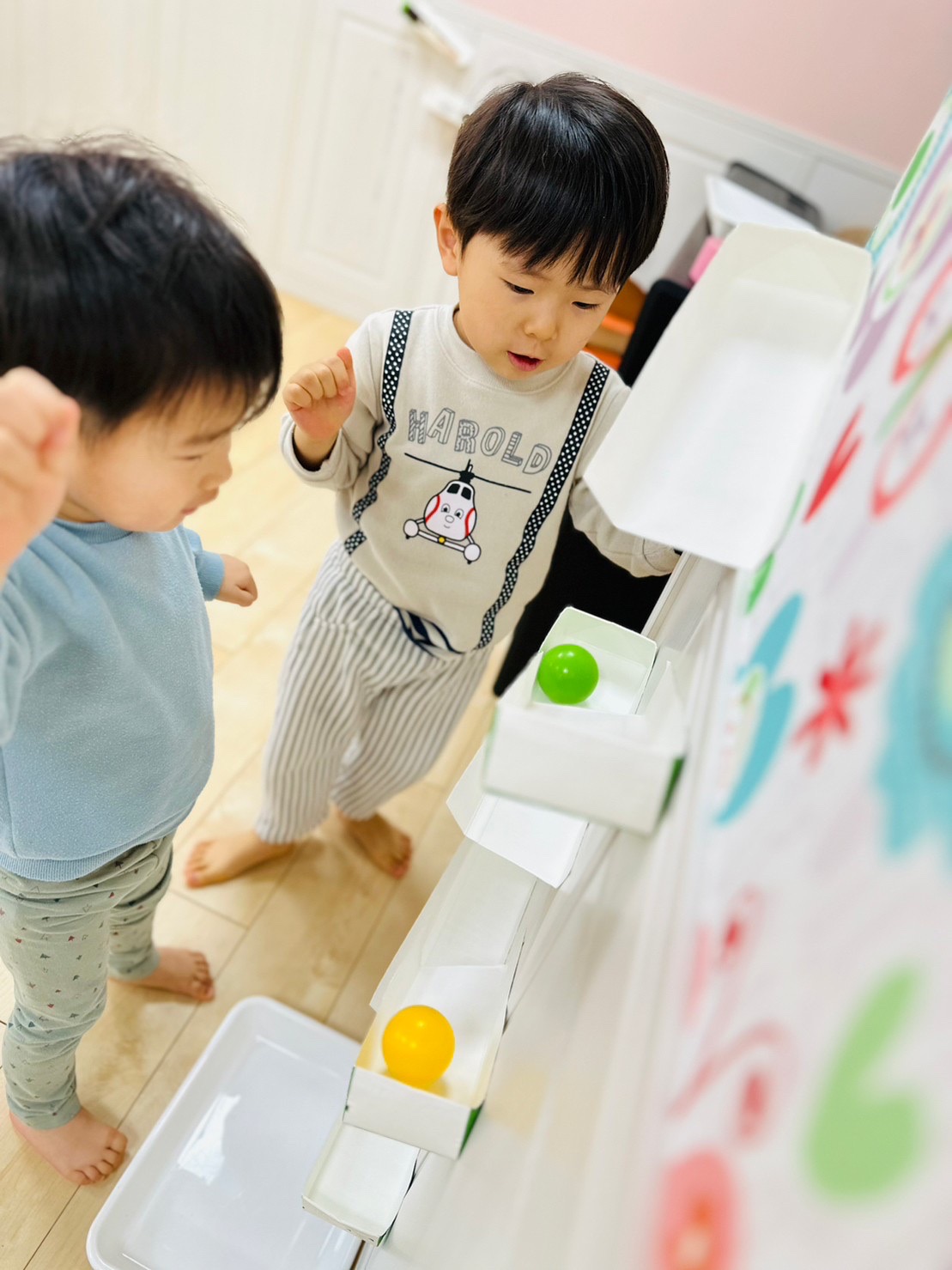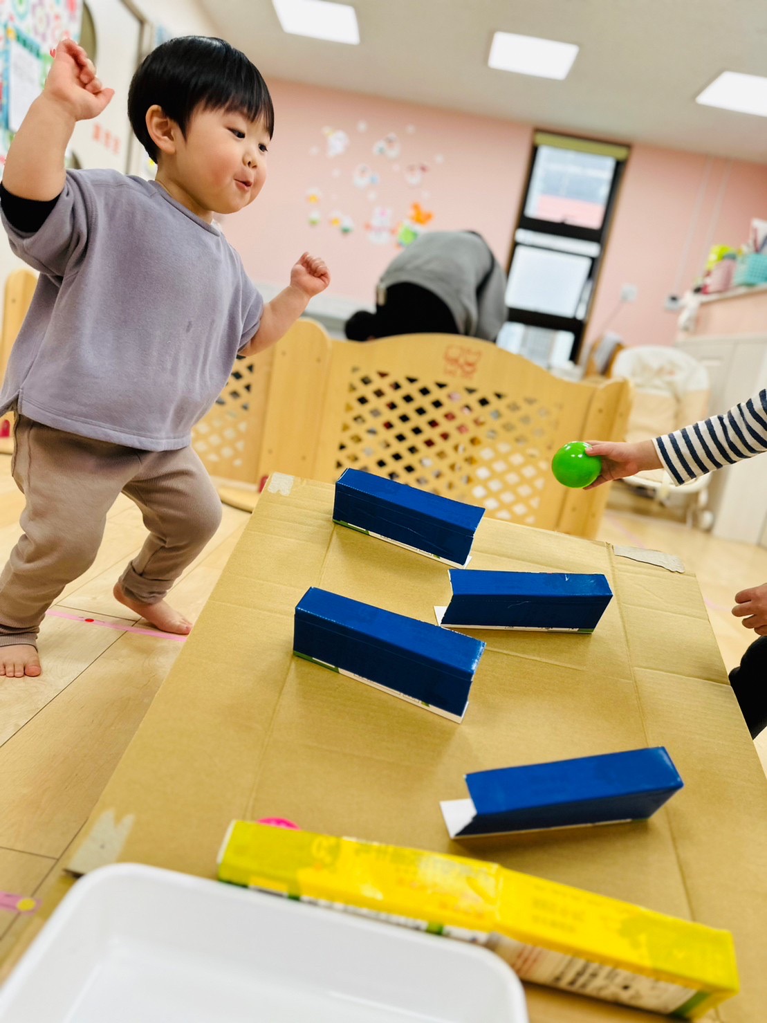 0歳児のお友達はビー玉を転がしては捕まえようと頑張ってて可愛いかったです❤️
