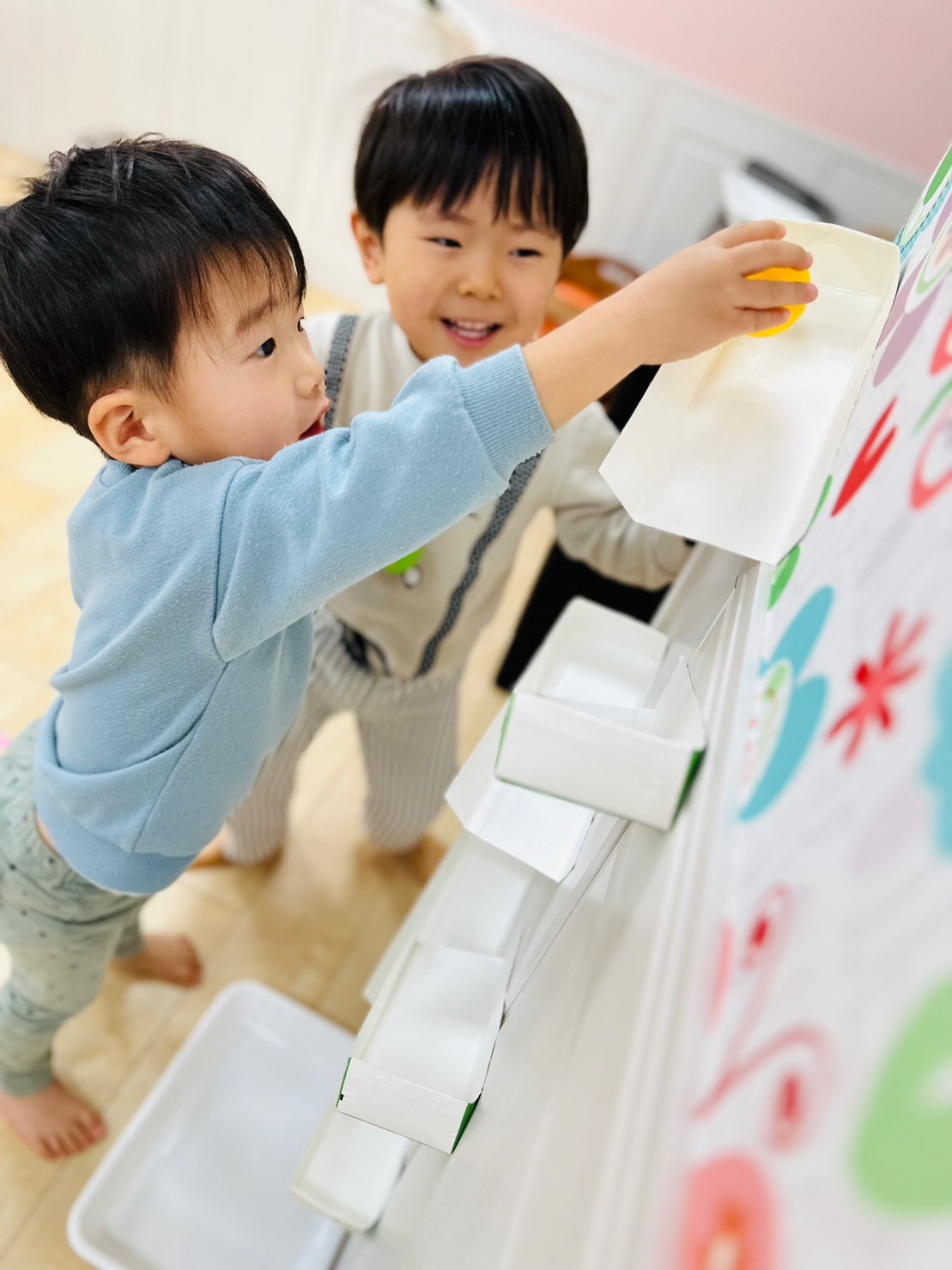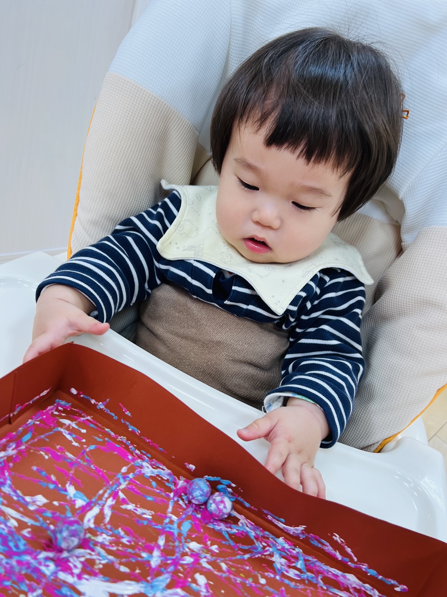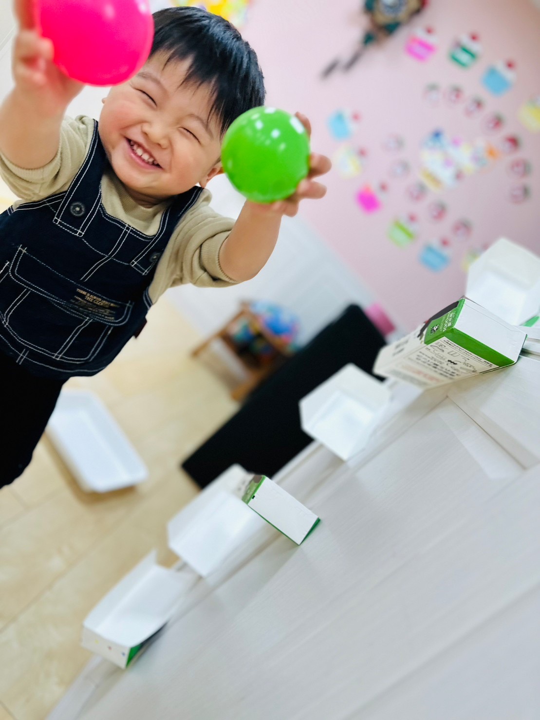 0歳児のお友達はビー玉を転がしては捕まえようと頑張ってて可愛いかったです❤️