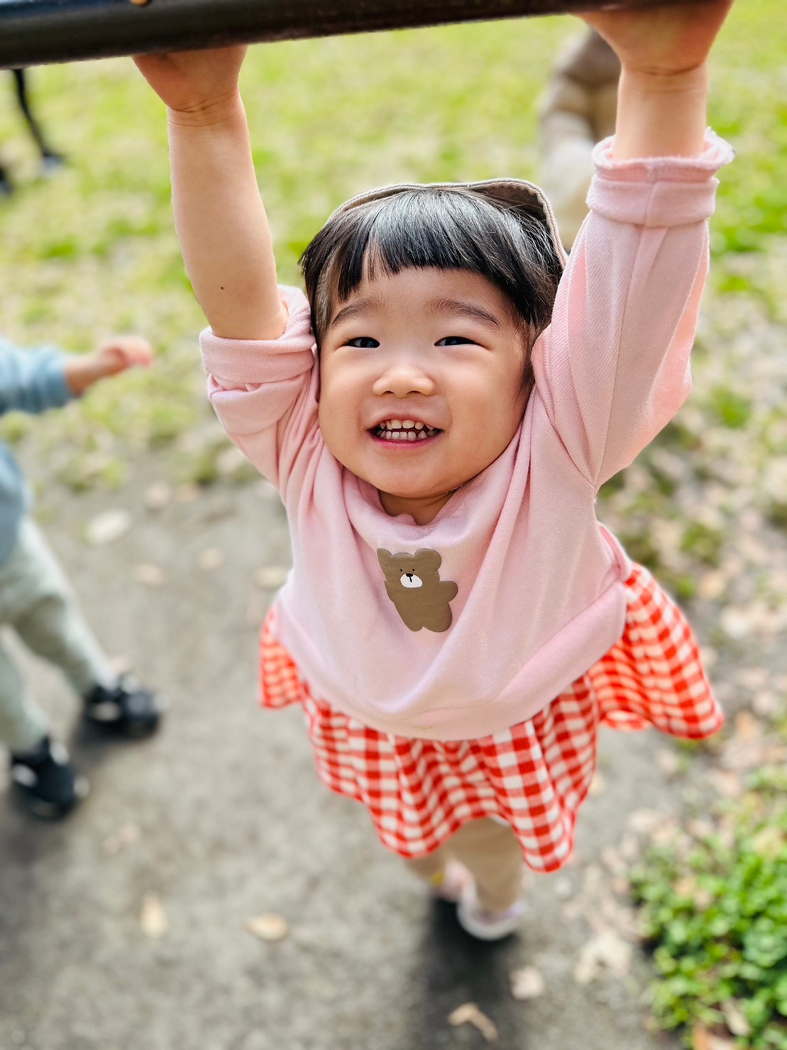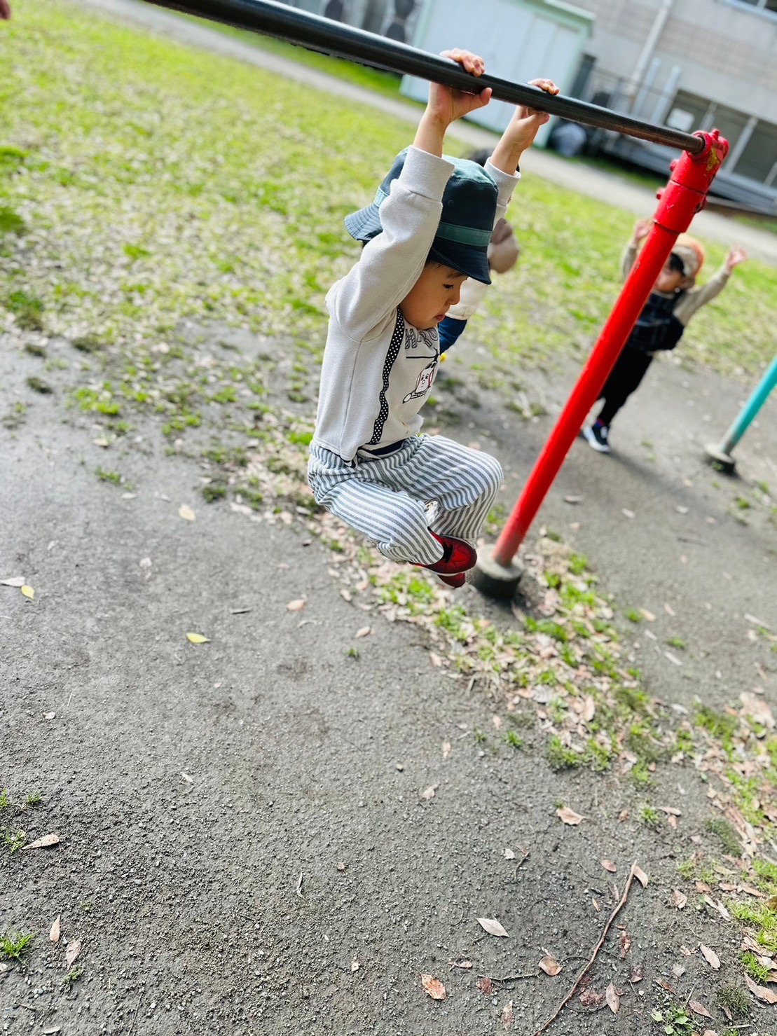 鉄棒でブラーン✨みてみてー❗️と嬉しそう😊手の力がついてきましたよ✨