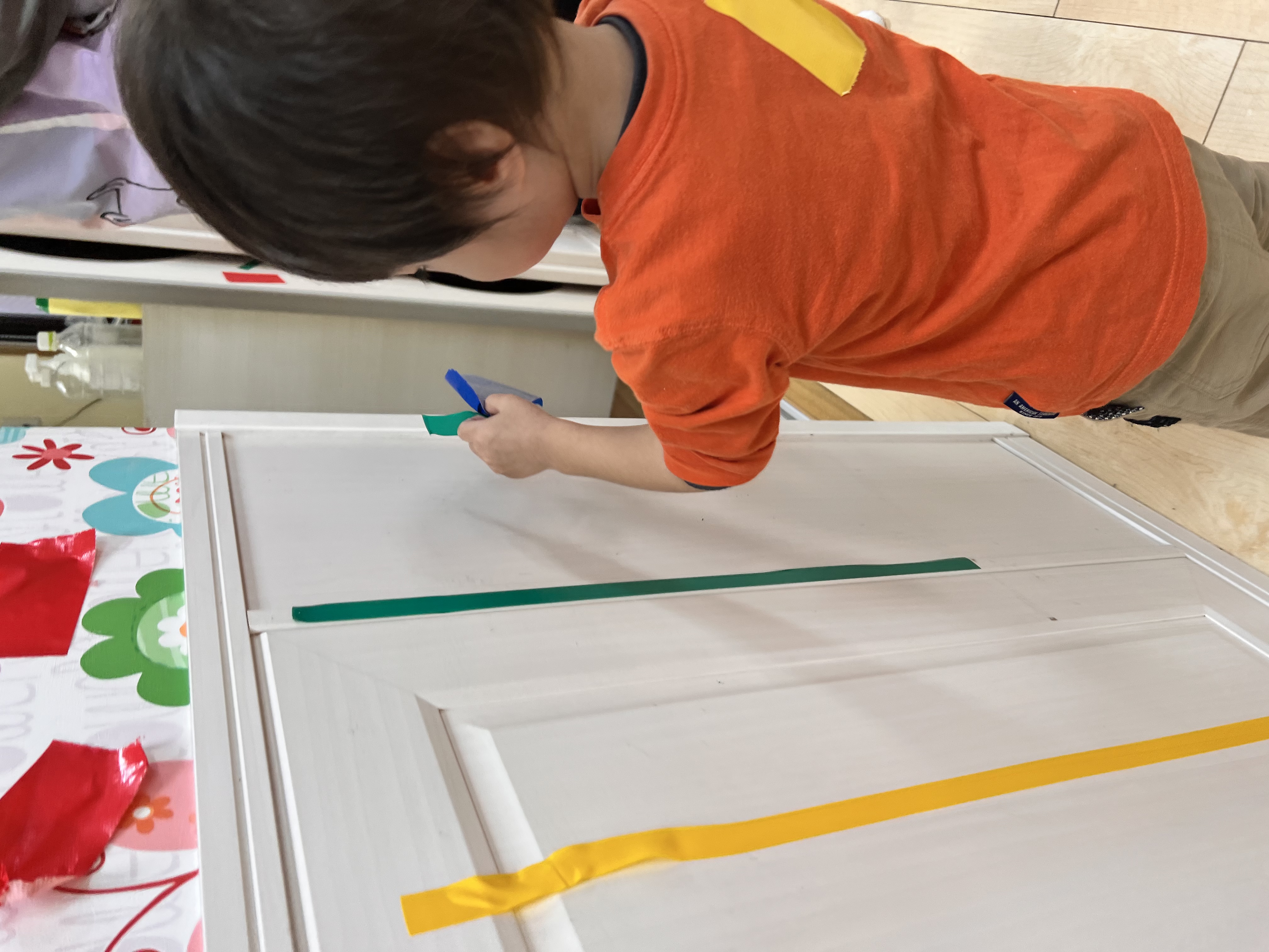 続いてカラフルなテープをたくさん部屋に貼って、部屋を可愛く飾り付けしました😁