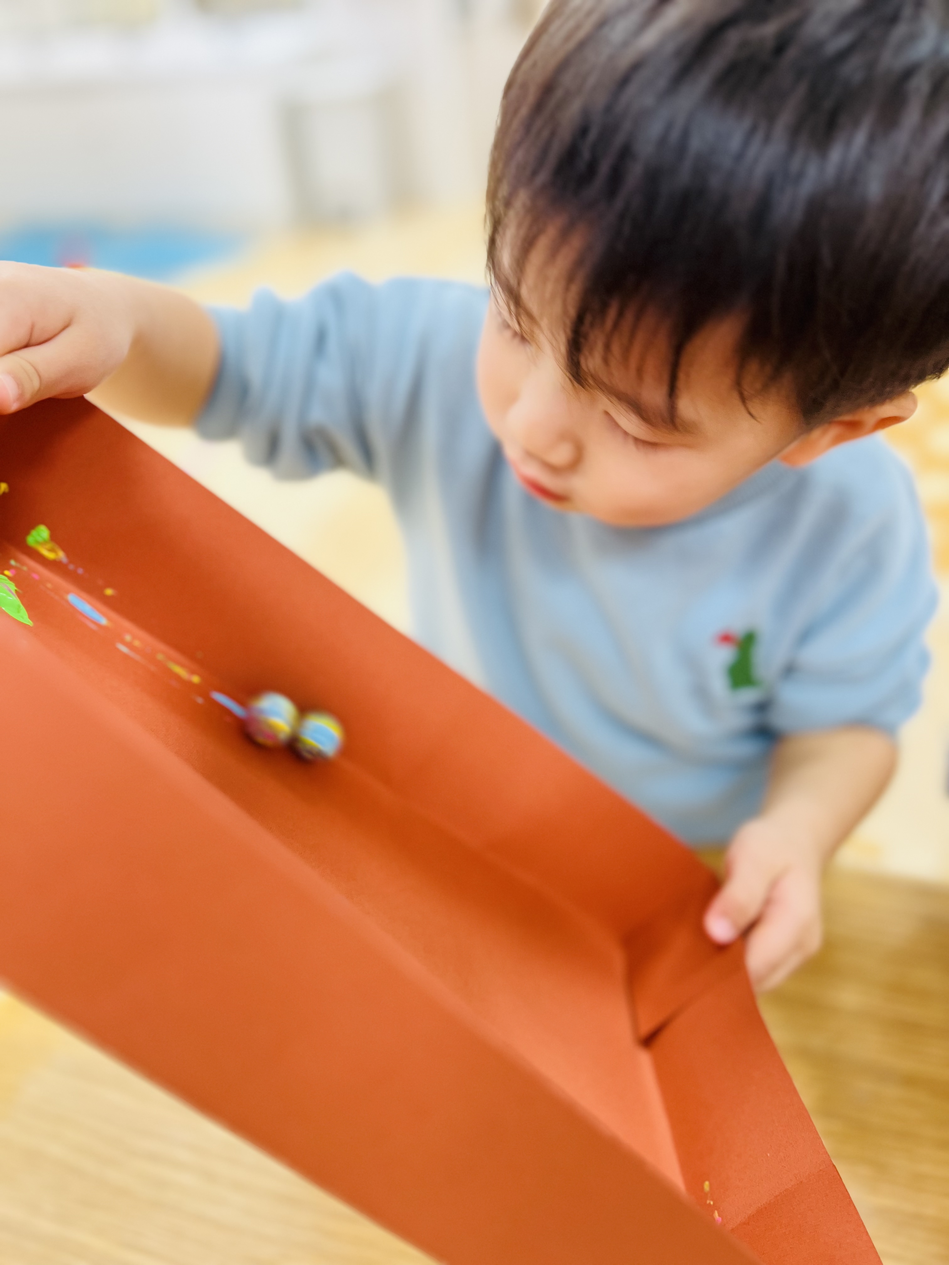 ビー玉が転がる様子に夢中です♫