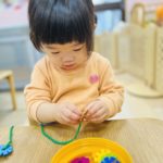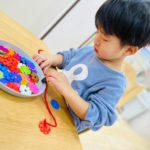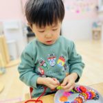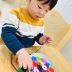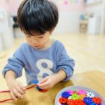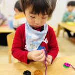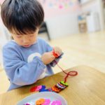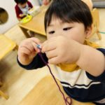 色を確認したり、好きな色だけを紐に通したり、同じ作業でも個性が出ますね😊