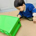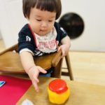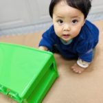 箱に隠したボールを出し入れするのに夢中な0歳児さんです😊