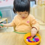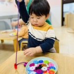 小さなポンポンを落とさないように丁寧にスプーンで運ぶ事が上手になりました😊