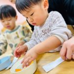 お兄さんに憧れて、お箸に挑戦しました✨難しいからこその集中力です✨