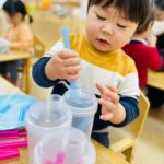 紐通しやお箸の練習、ストローのポットン落としが用意されました♫