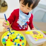 小さなポンポンを落とさないように丁寧にスプーンで運ぶ事が上手になりました😊